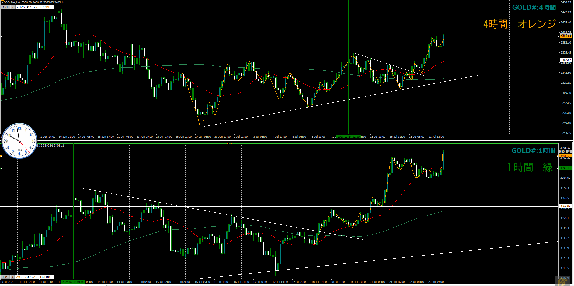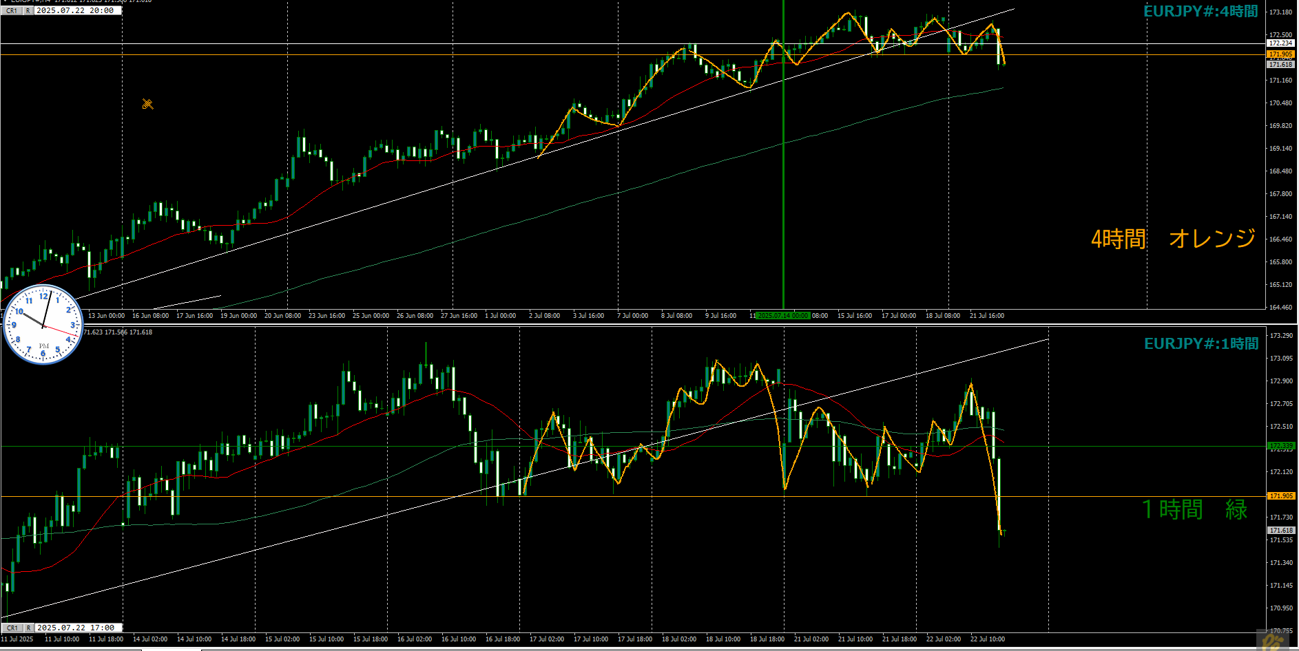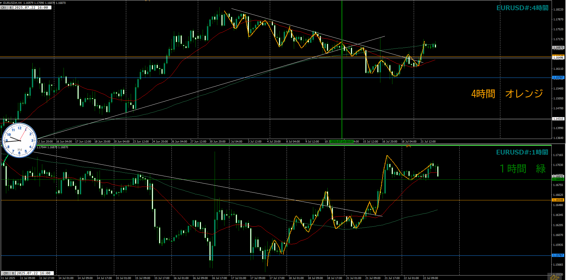 ・4時間 方向 上??(水平線 オレンジ)