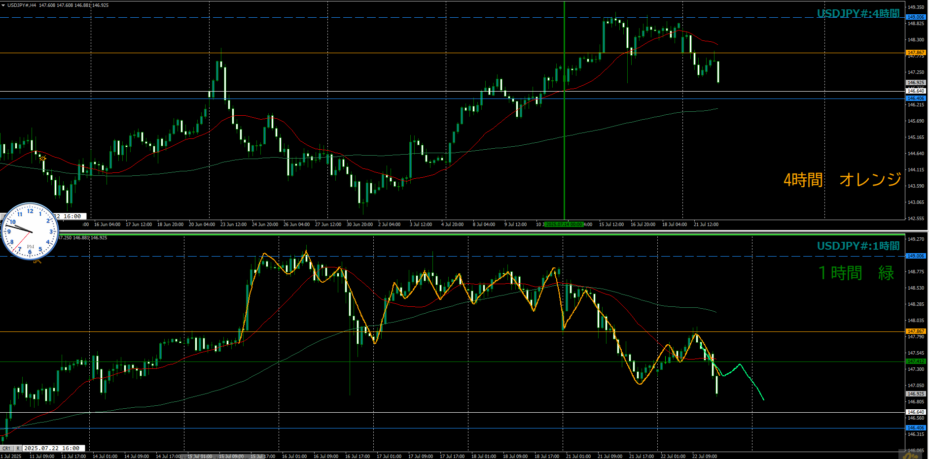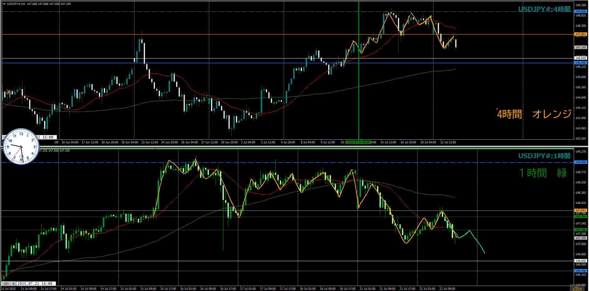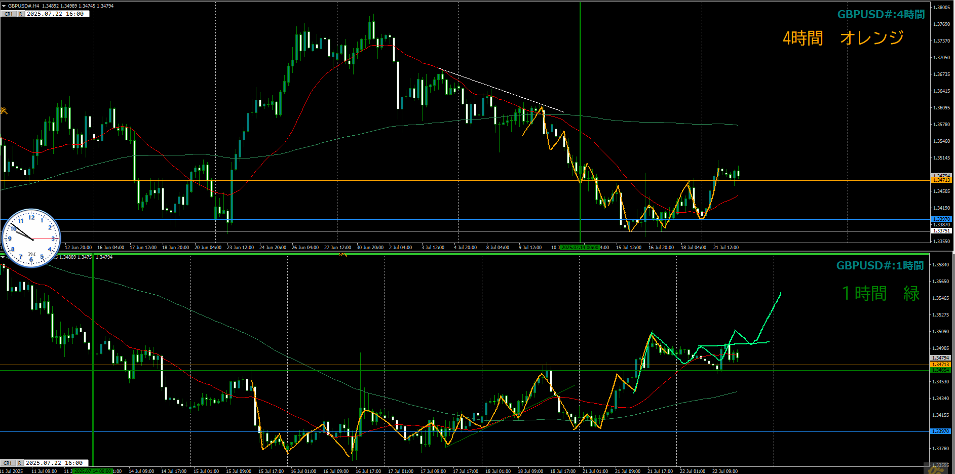 ・4時間 方向 上??(水平線 オレンジ)