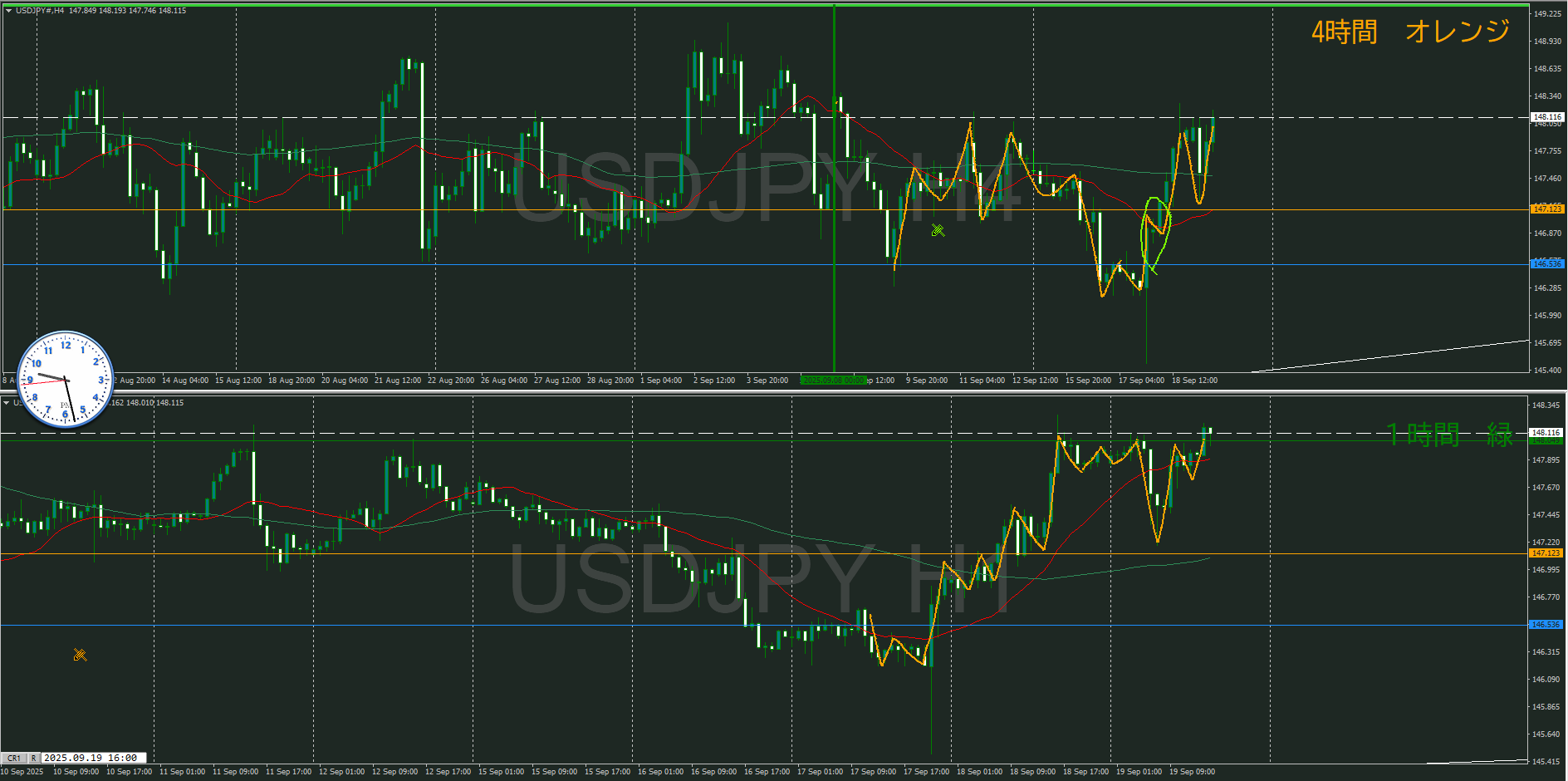 1時間で日足のサポートライン付近で止まれれているので、抜けるのか止められるのかが焦点