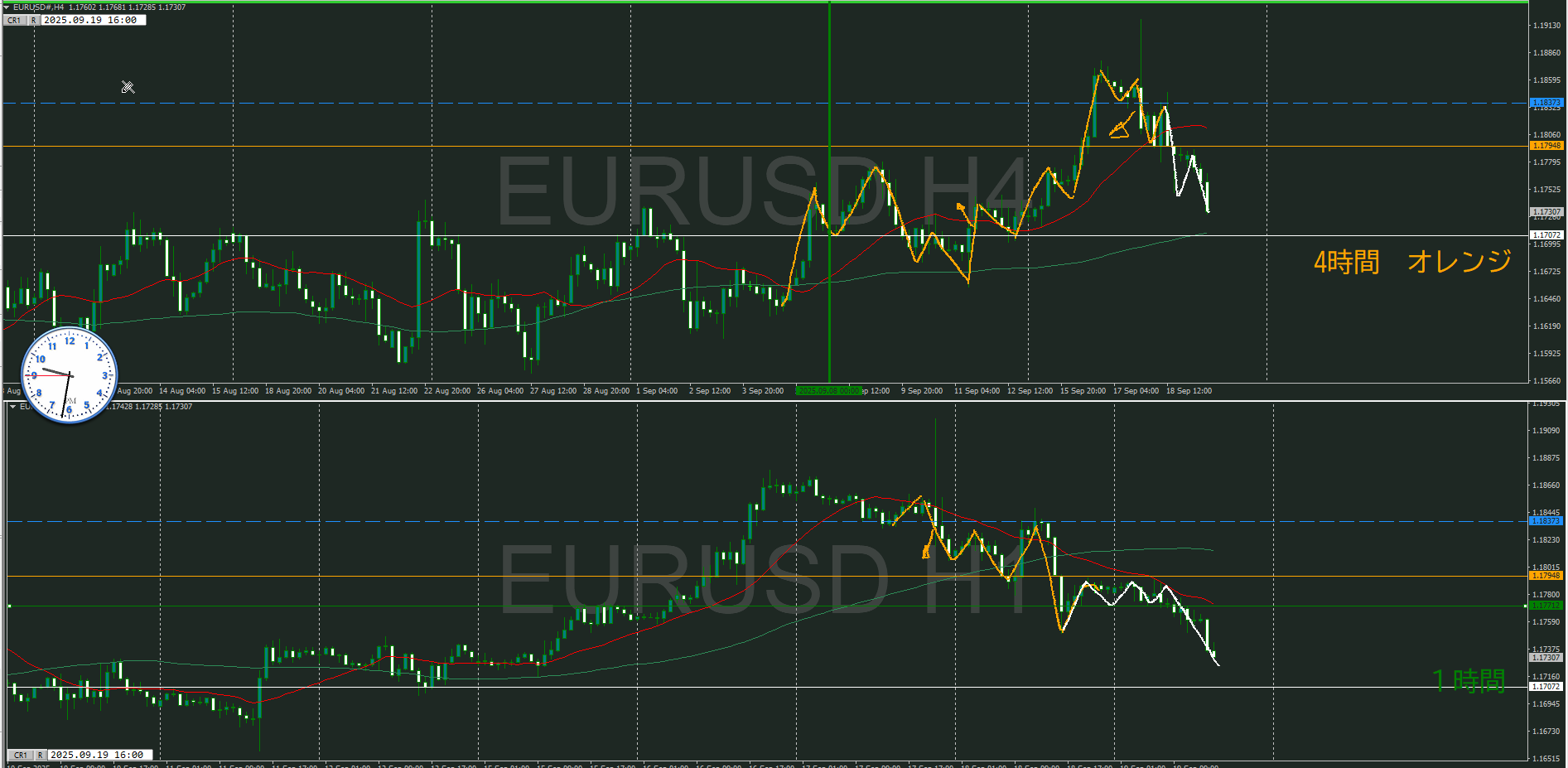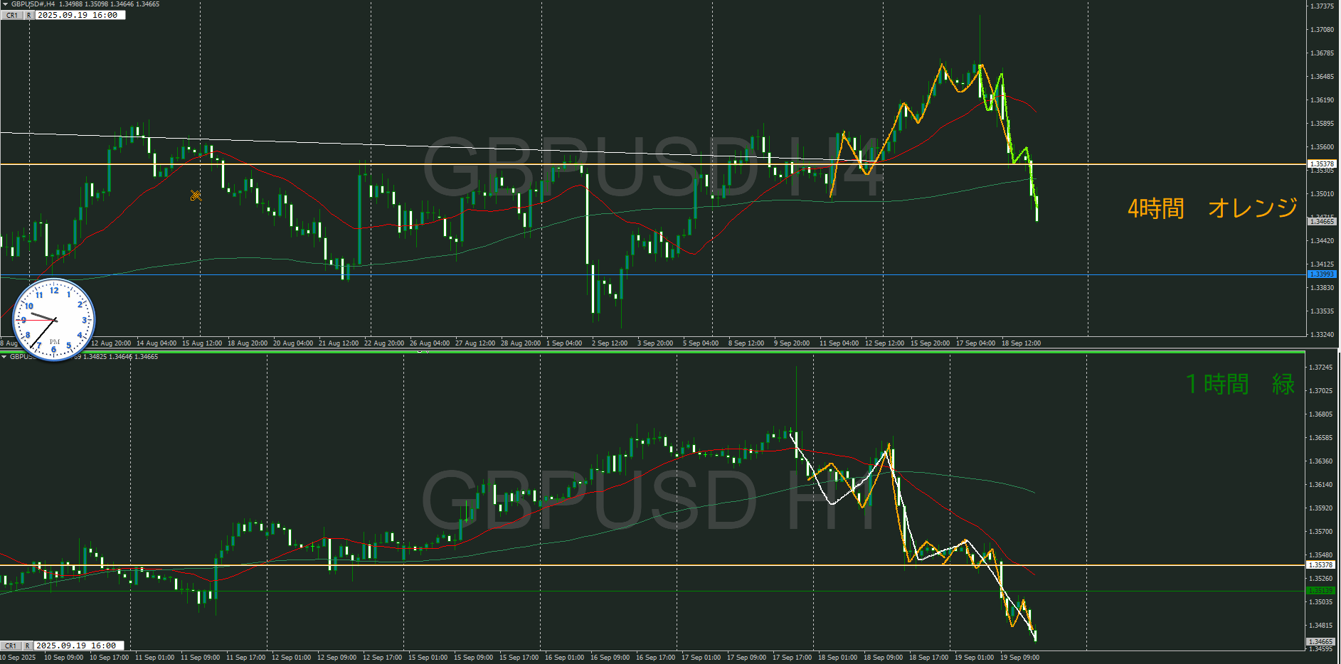 1時間に4時間のカウントを白で入れてみたが、やはり4時間の緑のカウントが良い