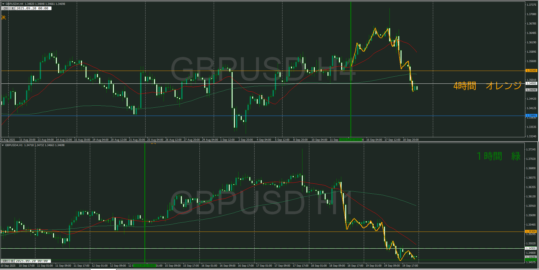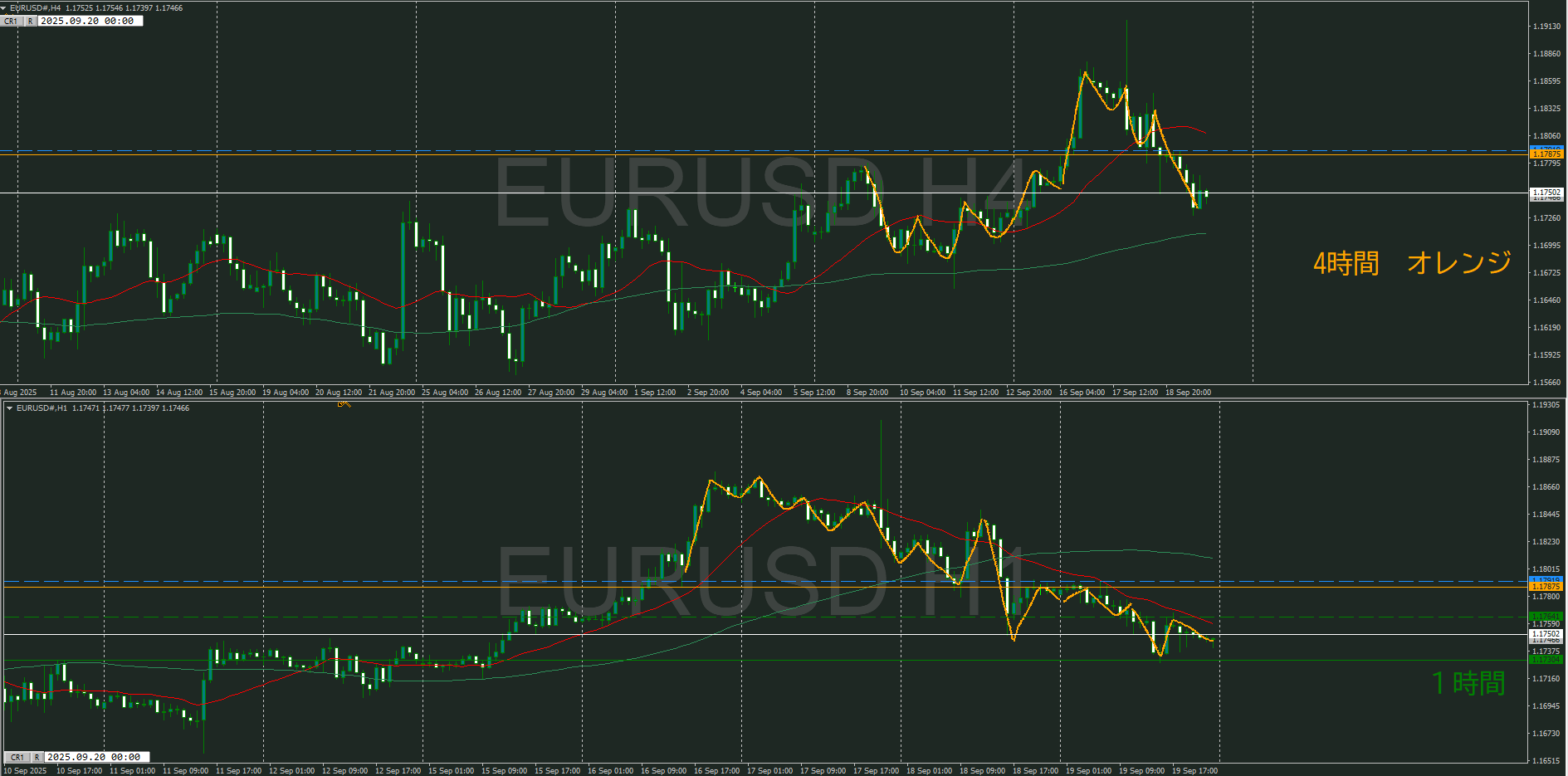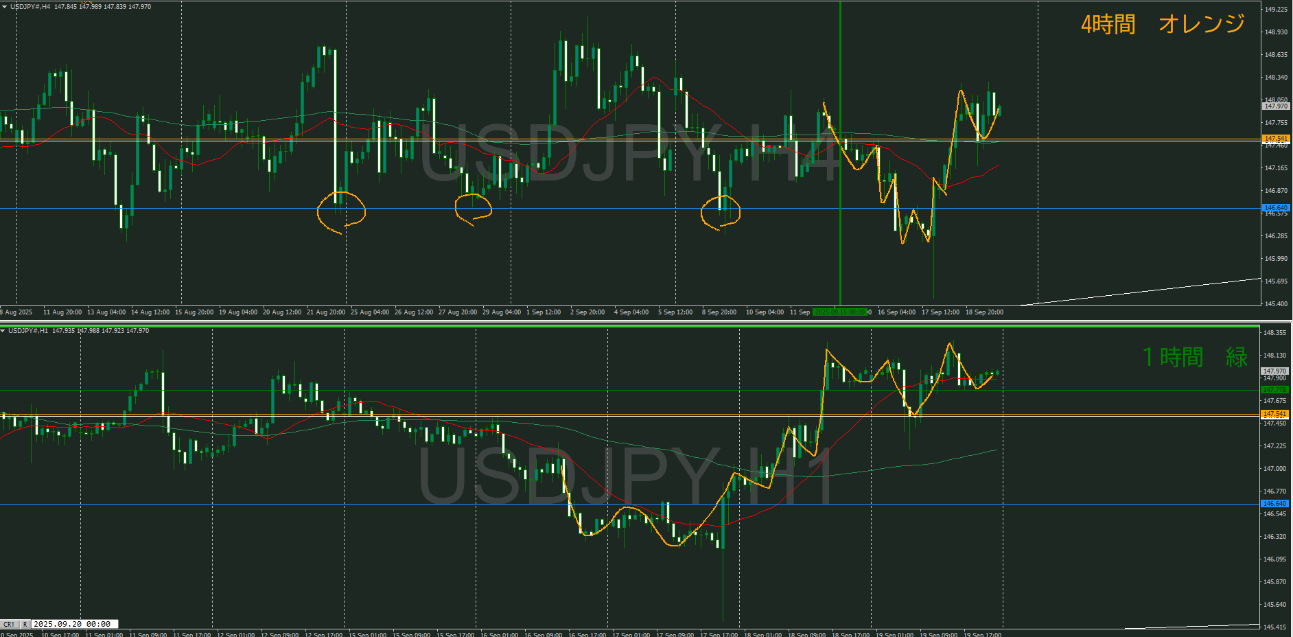 そこを4時間で視ると、買いのエリアなんですがトレンドとして綺麗ではないので手を出せない