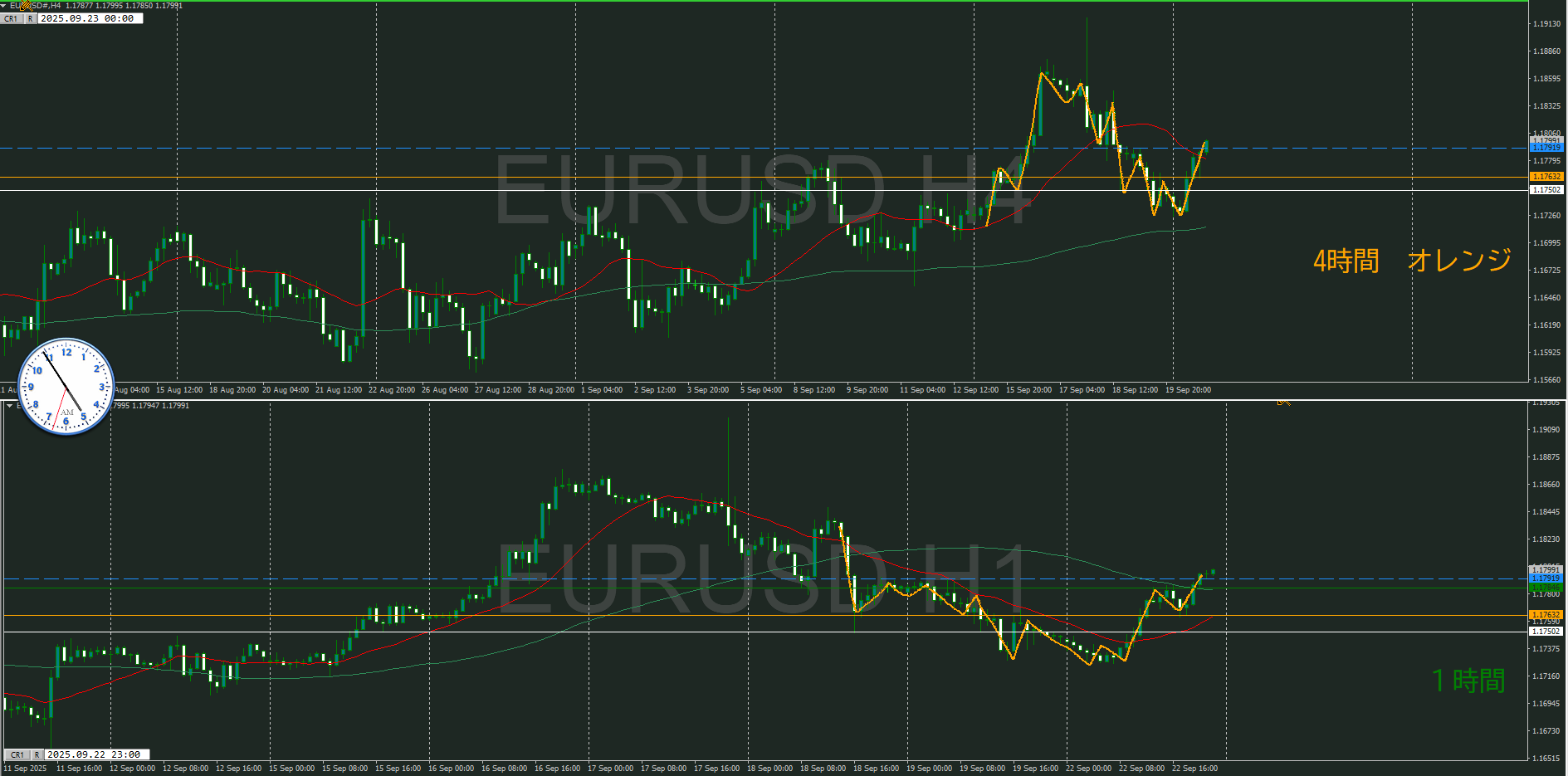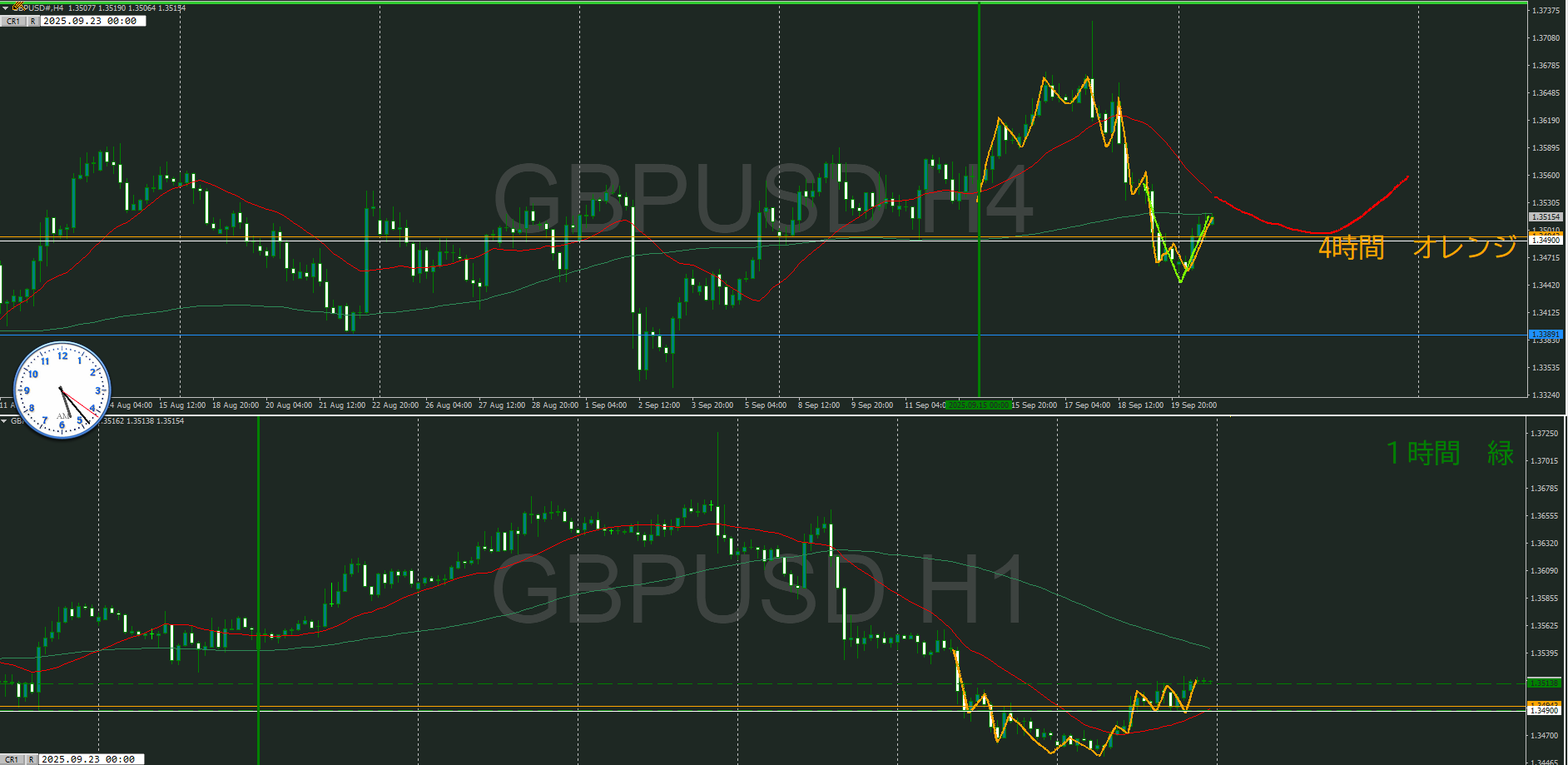 4時間で視ていくとMAが降りて来てから反転しはじめるところを捉えたい