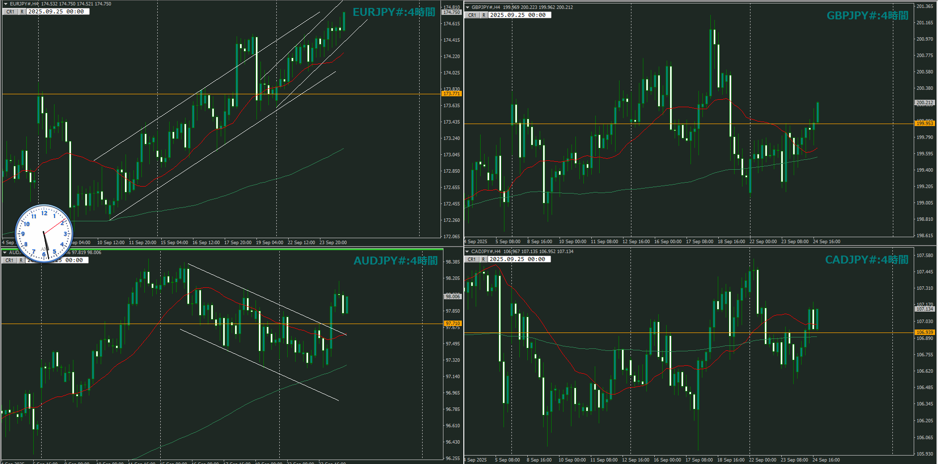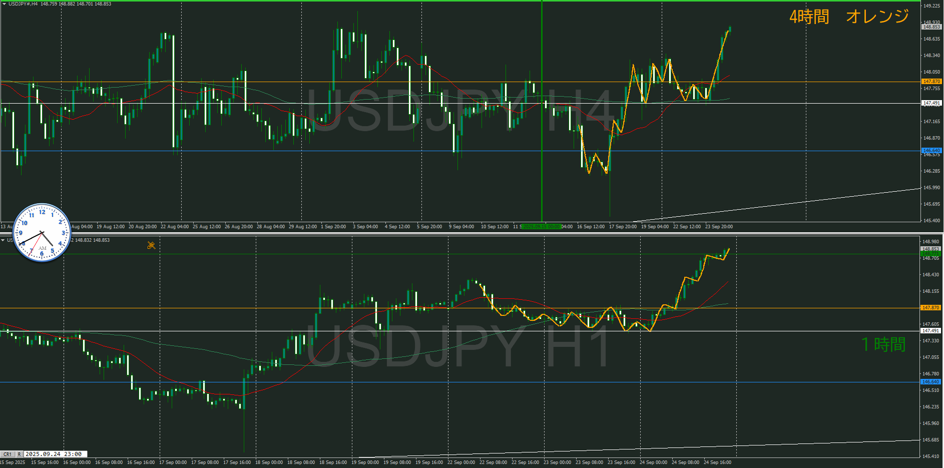 日足も上を向いているので、4時間のMAとぐラインビルするぐらいの時間経過を待ちたい