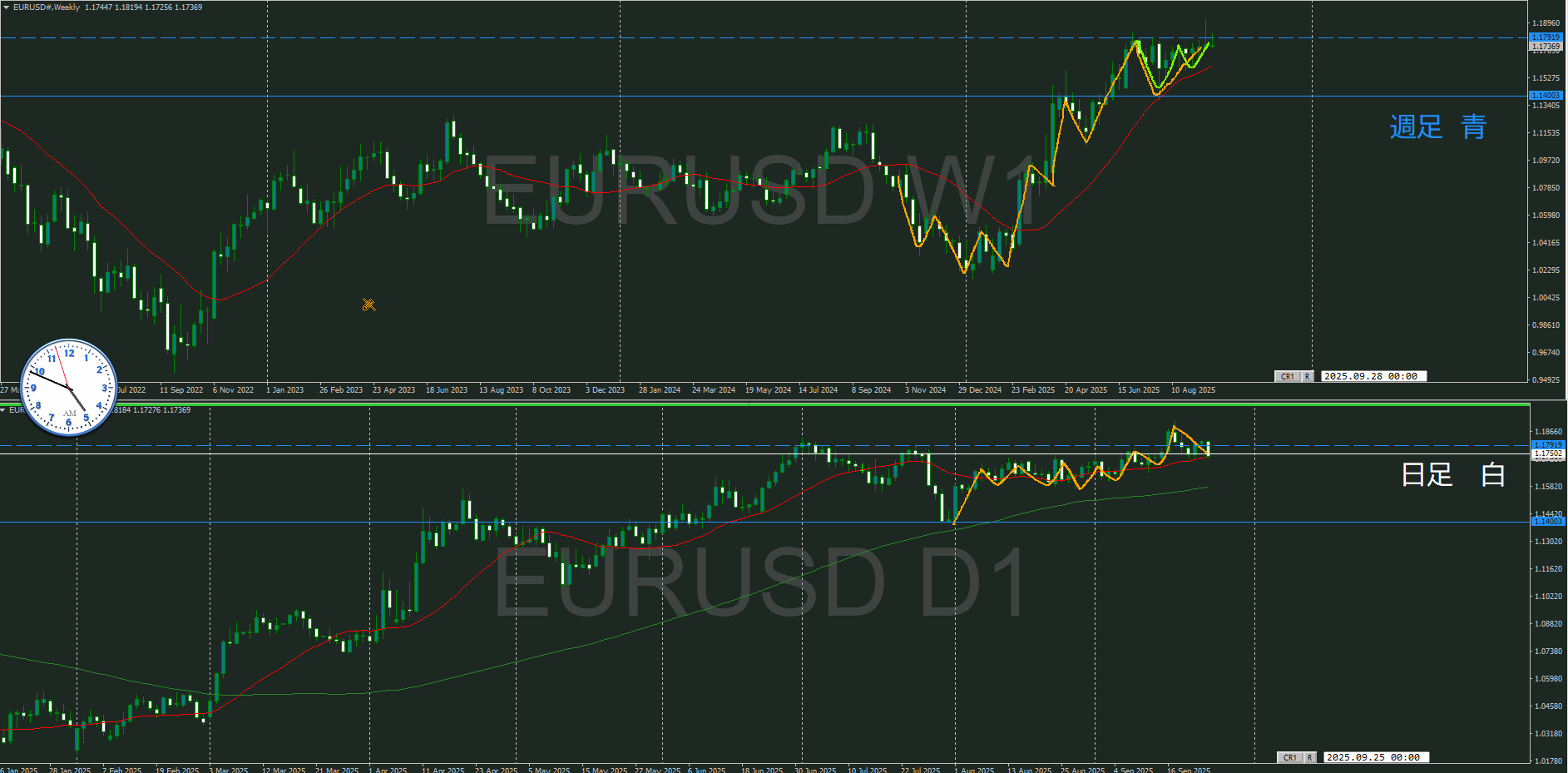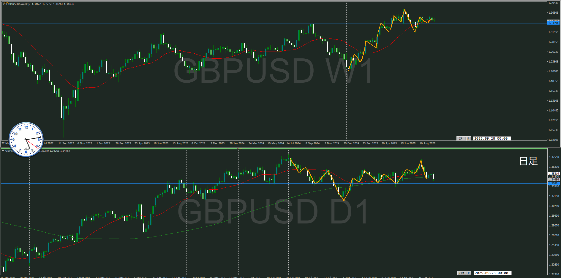 若干、間延びし始めた様子が伺え、水平線とMAで買支えられている