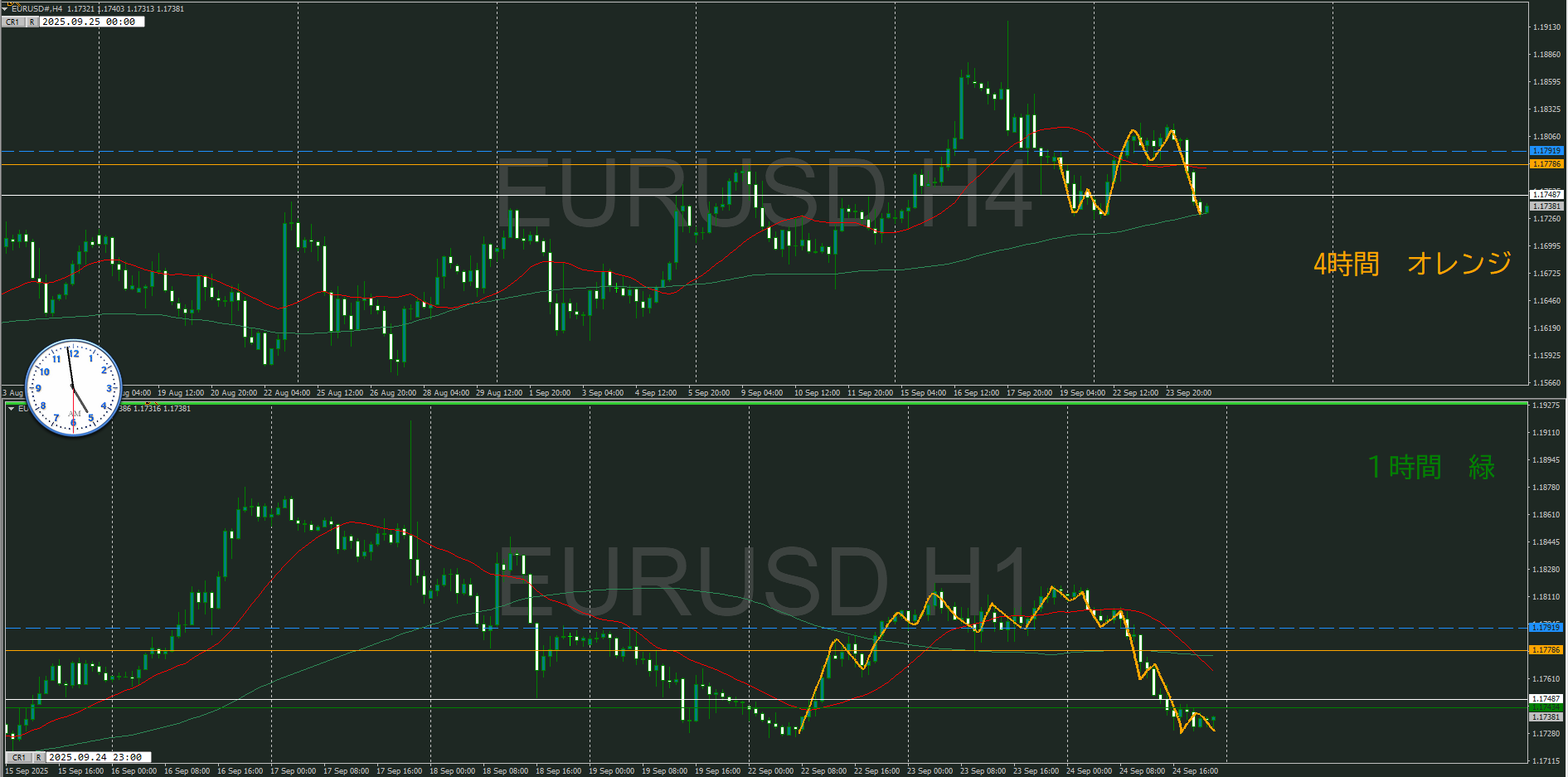 戻してきてもオレンジのラインまで戻すとMAと交差するので、売りたいにはならない