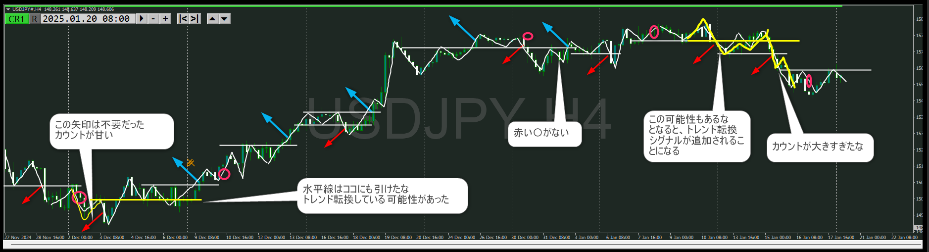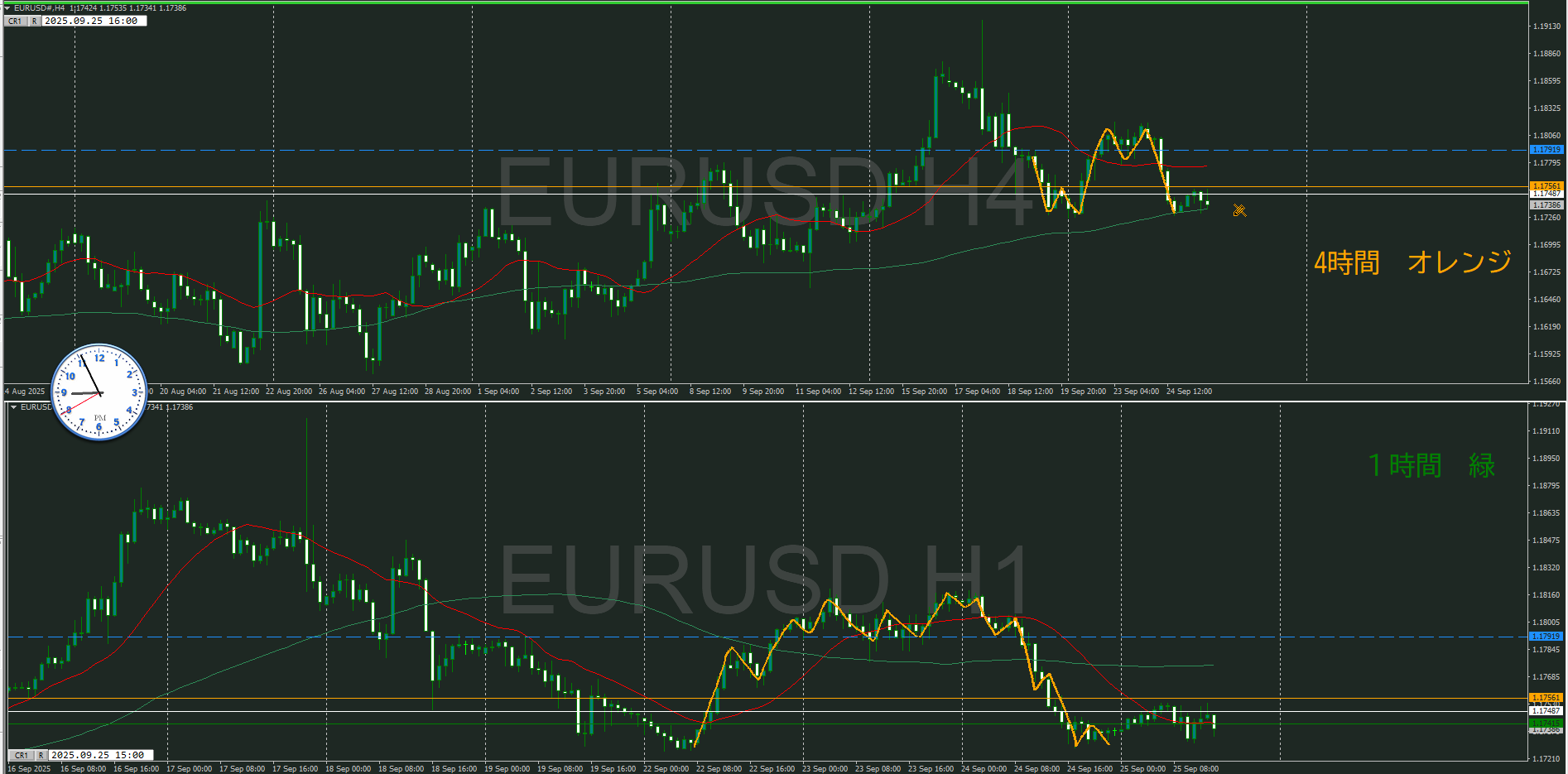 オレンジの水平線を超えるとトレンド転換シグナルが出る候補と視て良いのではないか