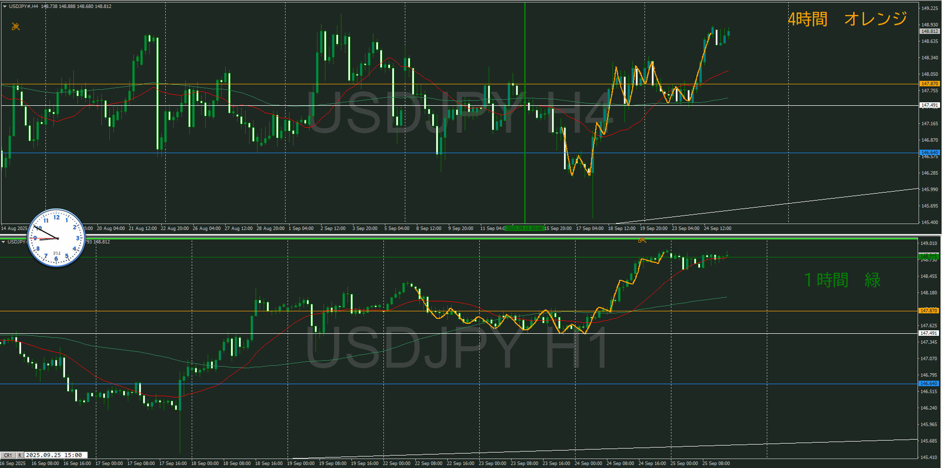 日足も上を向いているので、4時間のMAとぐラインビルするぐらいの時間経過を待ちたい