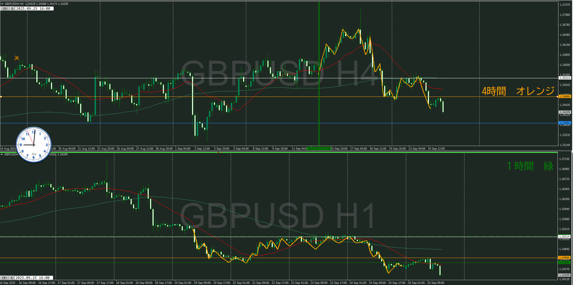戻してきてもオレンジのラインまで戻すとMAと交差するので、売りたいにはならない