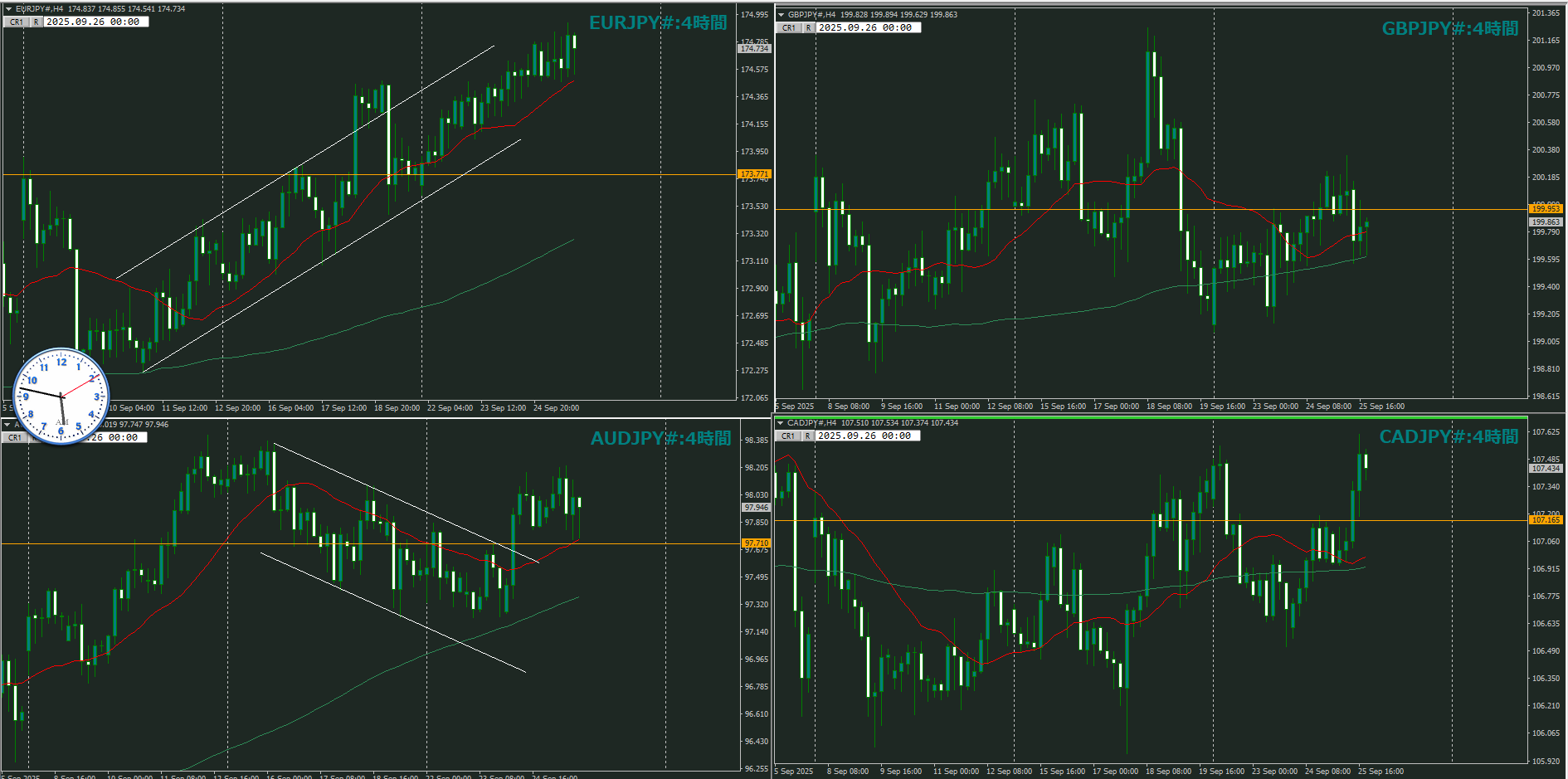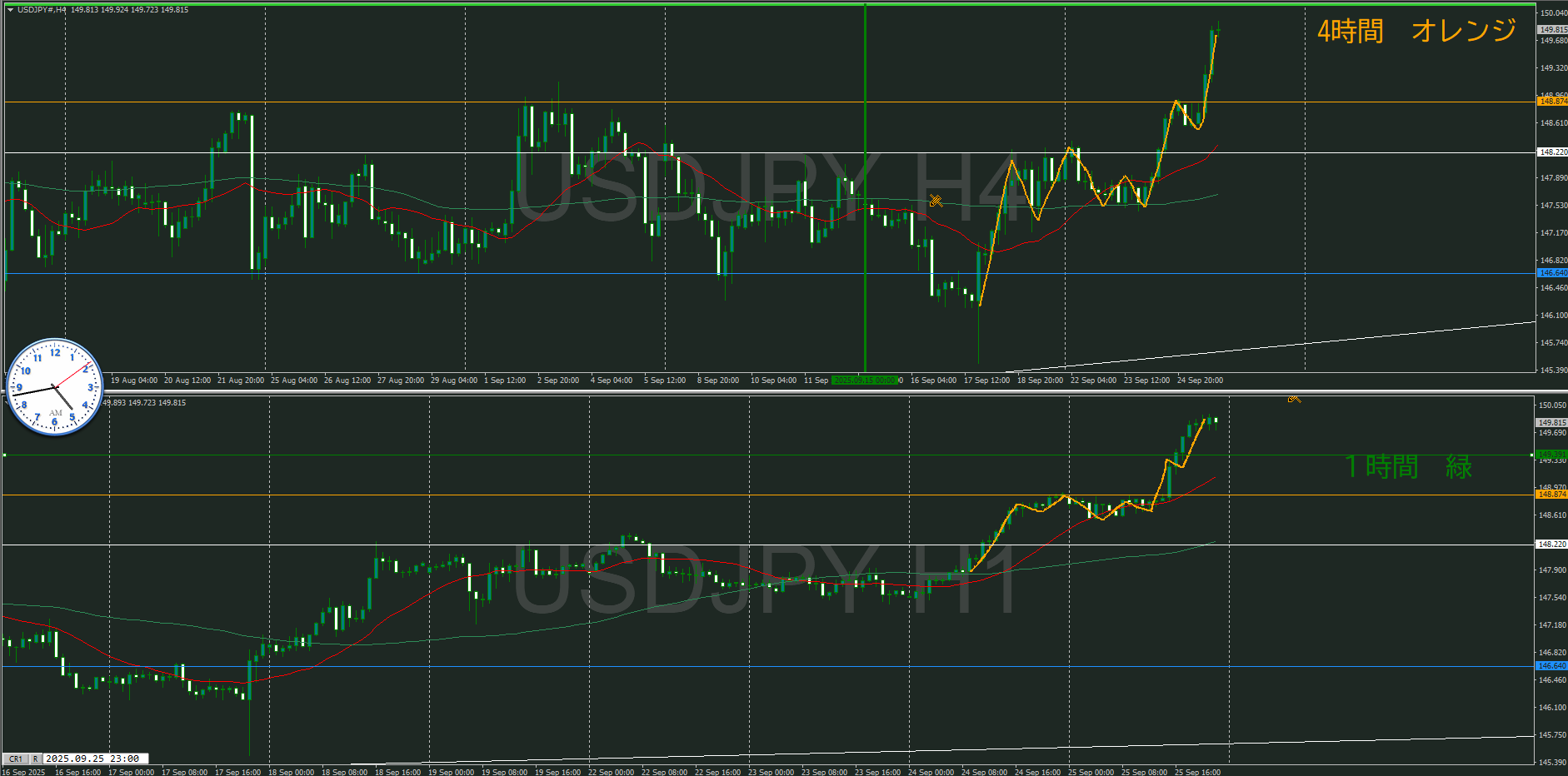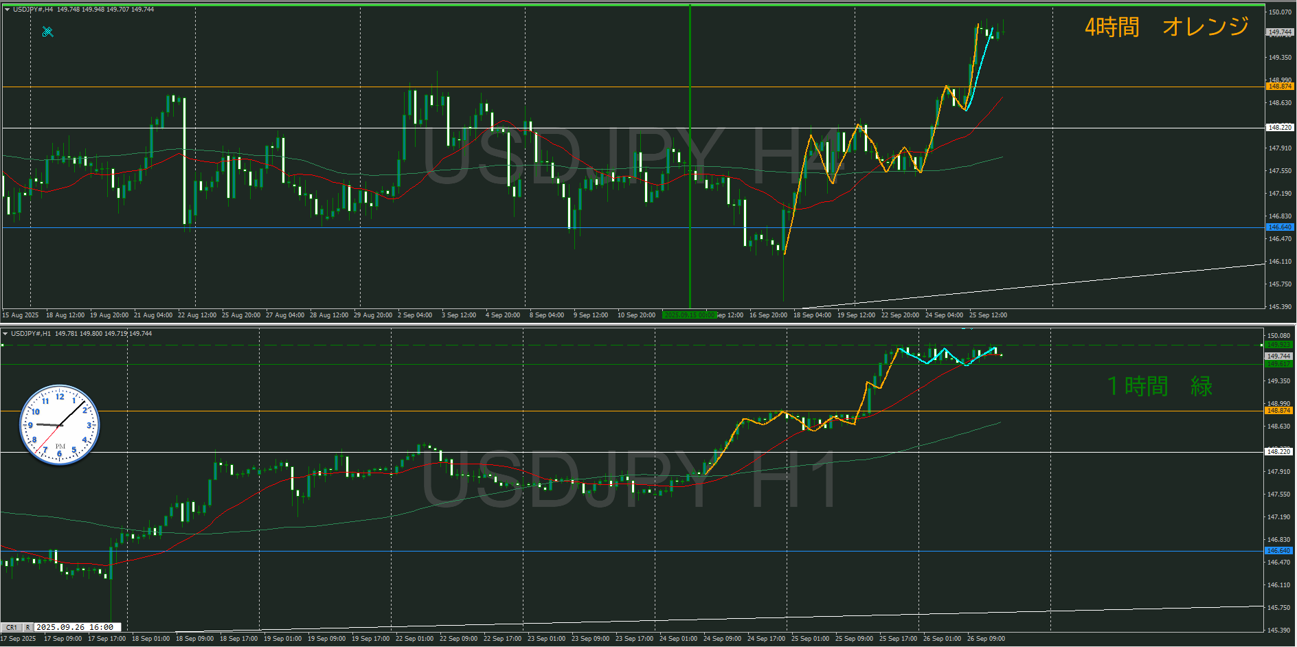 ・4時間 方向 上 (水平線 オレンジ)