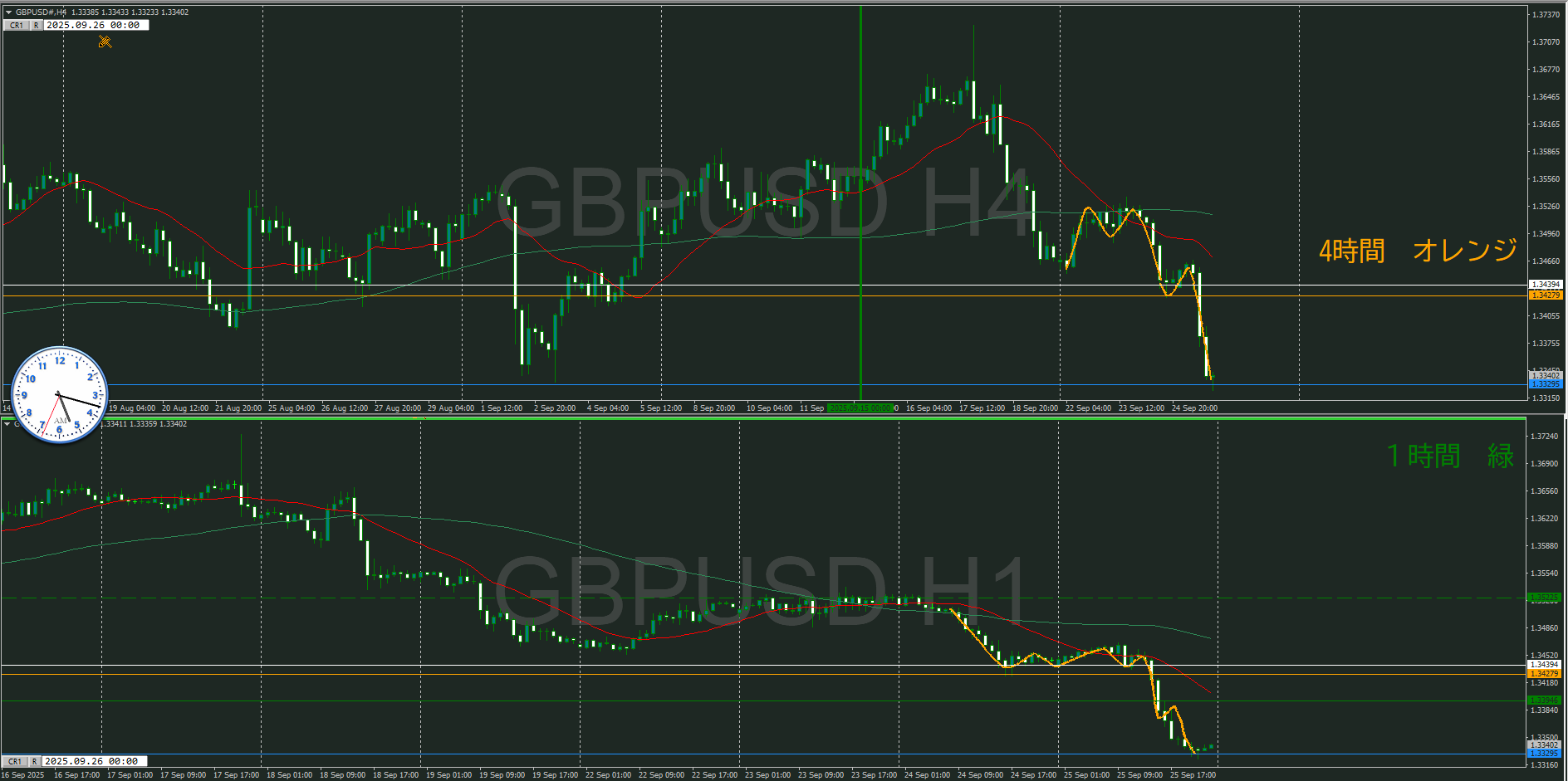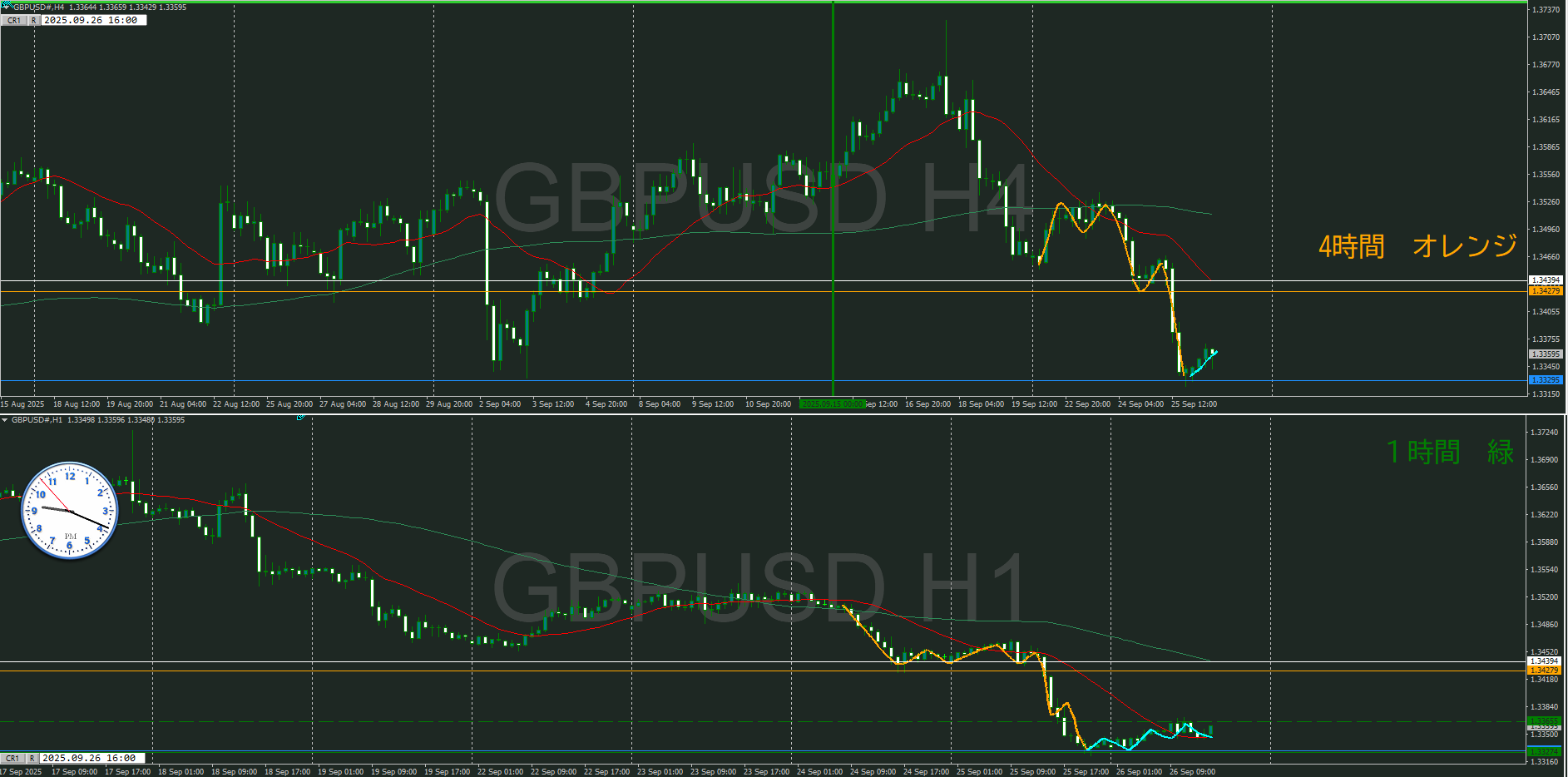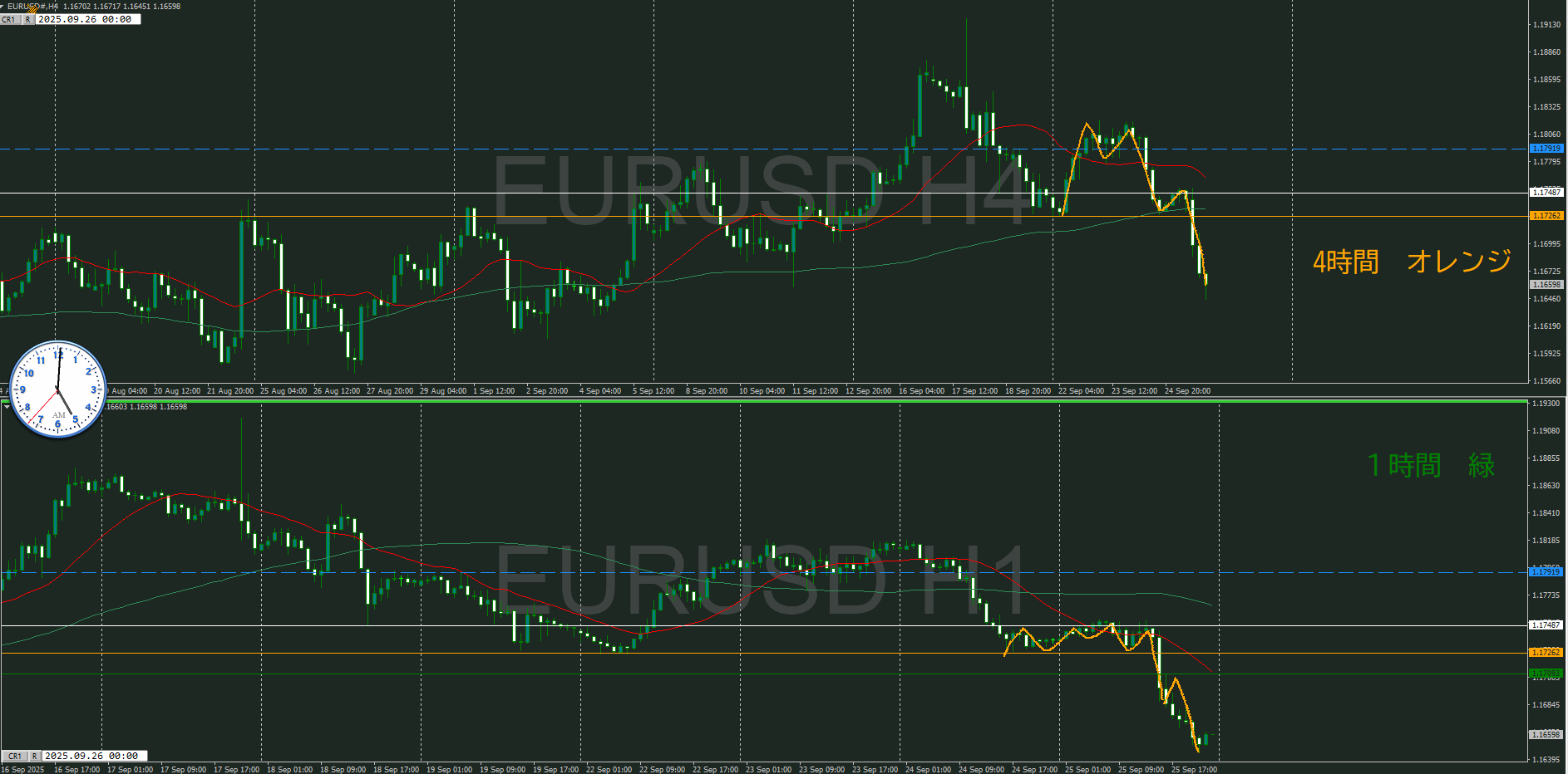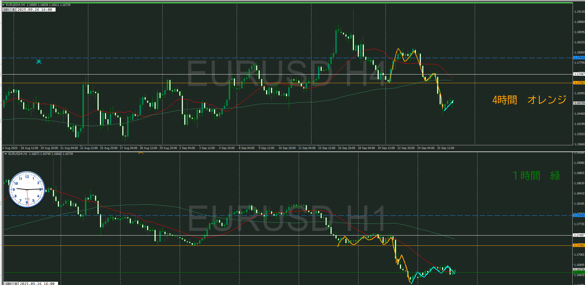 ・4時間 方向 下 (水平線 オレンジ)