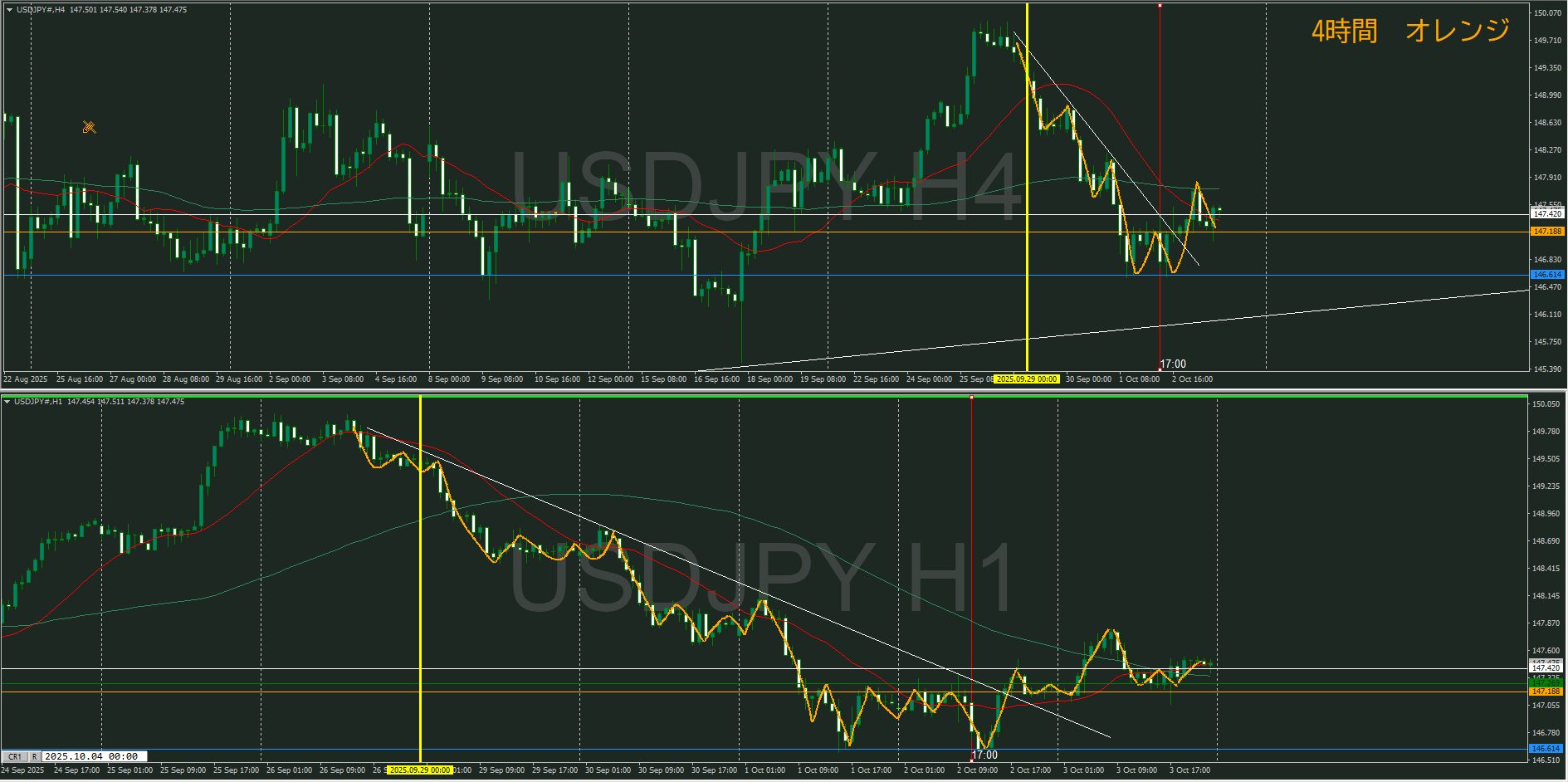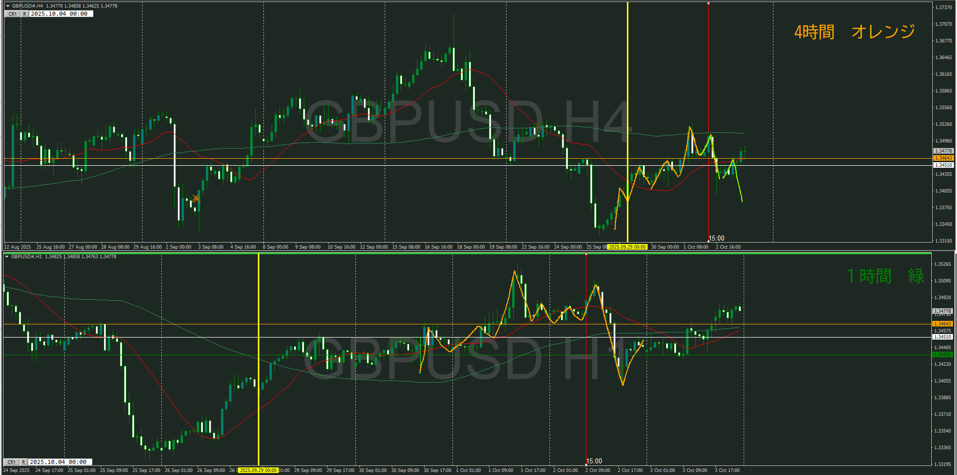 もし狙うなら1時間の獲物として15分の安値割れからのエントリが適切だと思う
