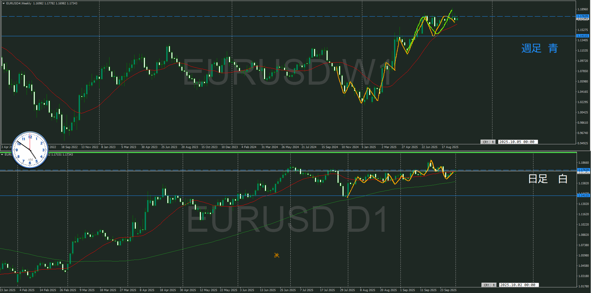 週足のサポート付近まで下落し、週足MAにも支えられている