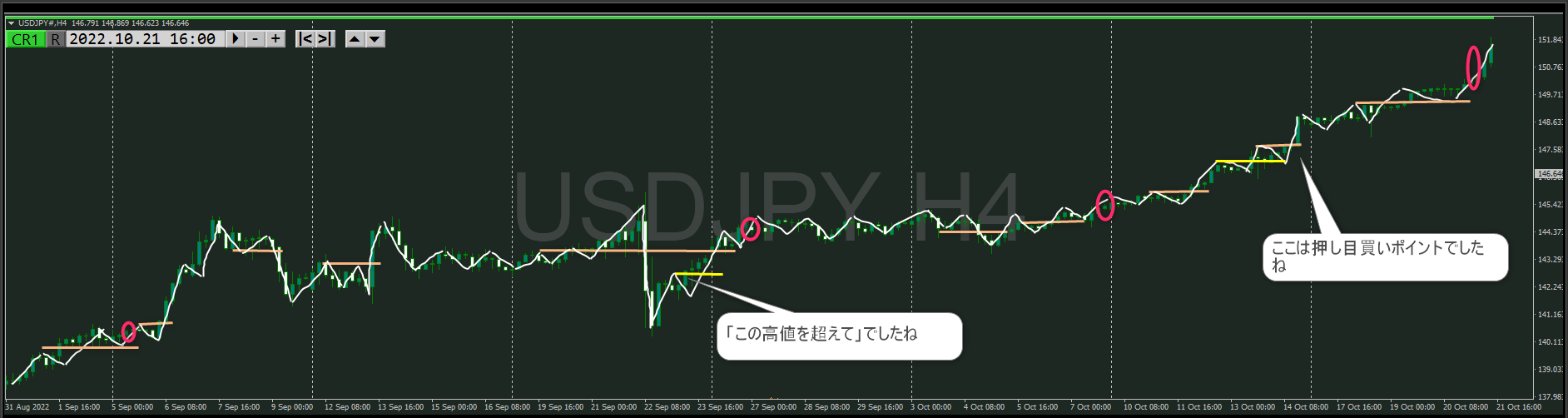 破線 前回高値のヒゲ先を参照 売り抑得られ易いレジスタンスライン