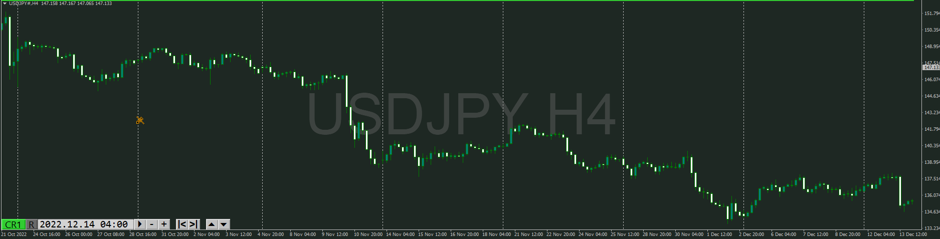 過去の高値のヒゲを折ると直近の安値を支えているラインが視えてところを参照