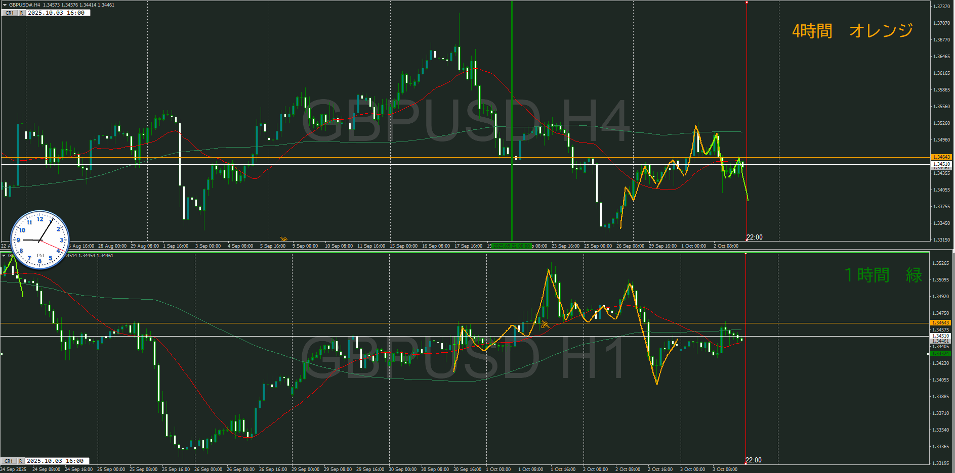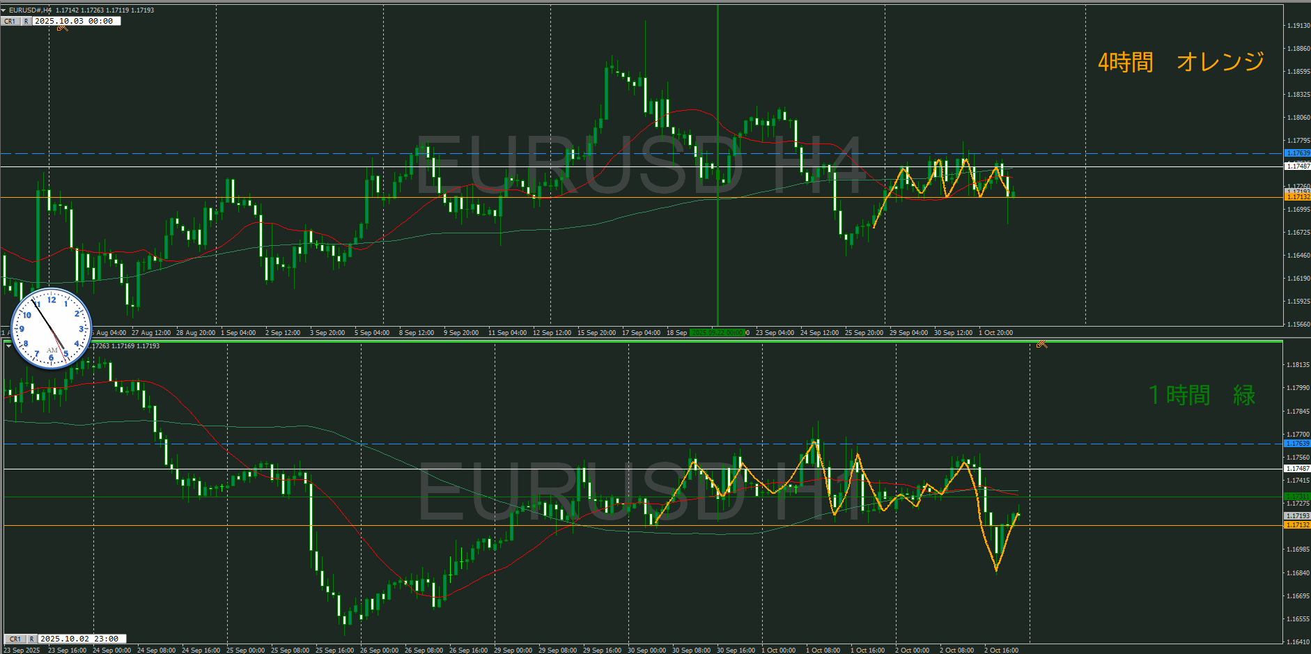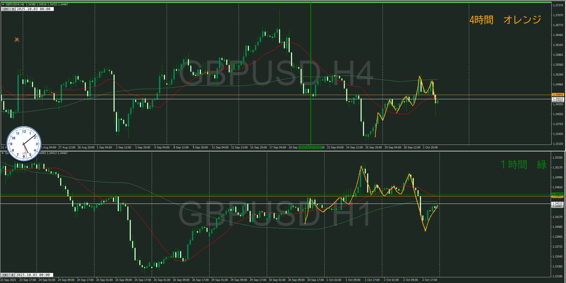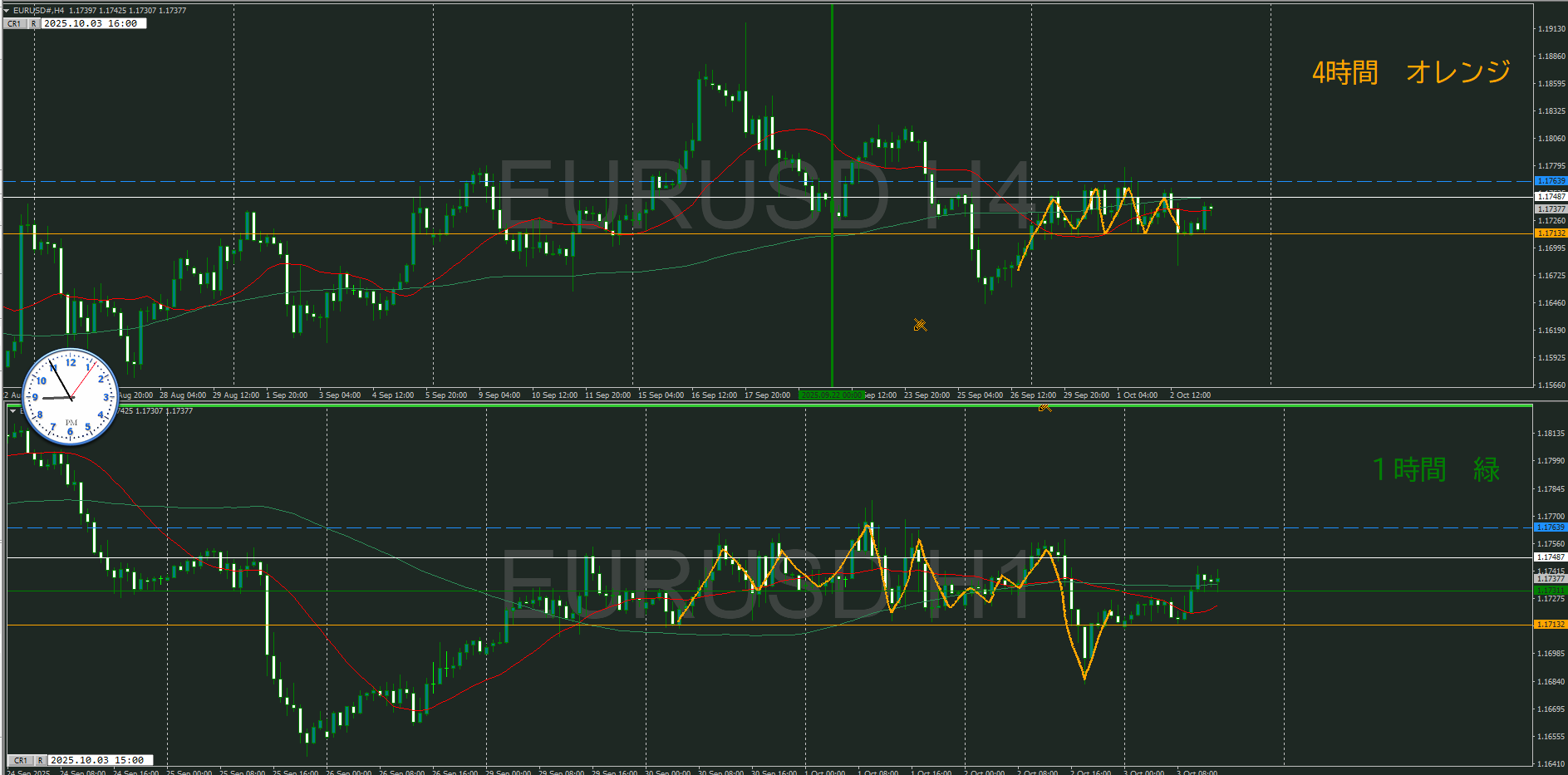 ・4時間 方向 上 or 下 (水平線 オレンジ)