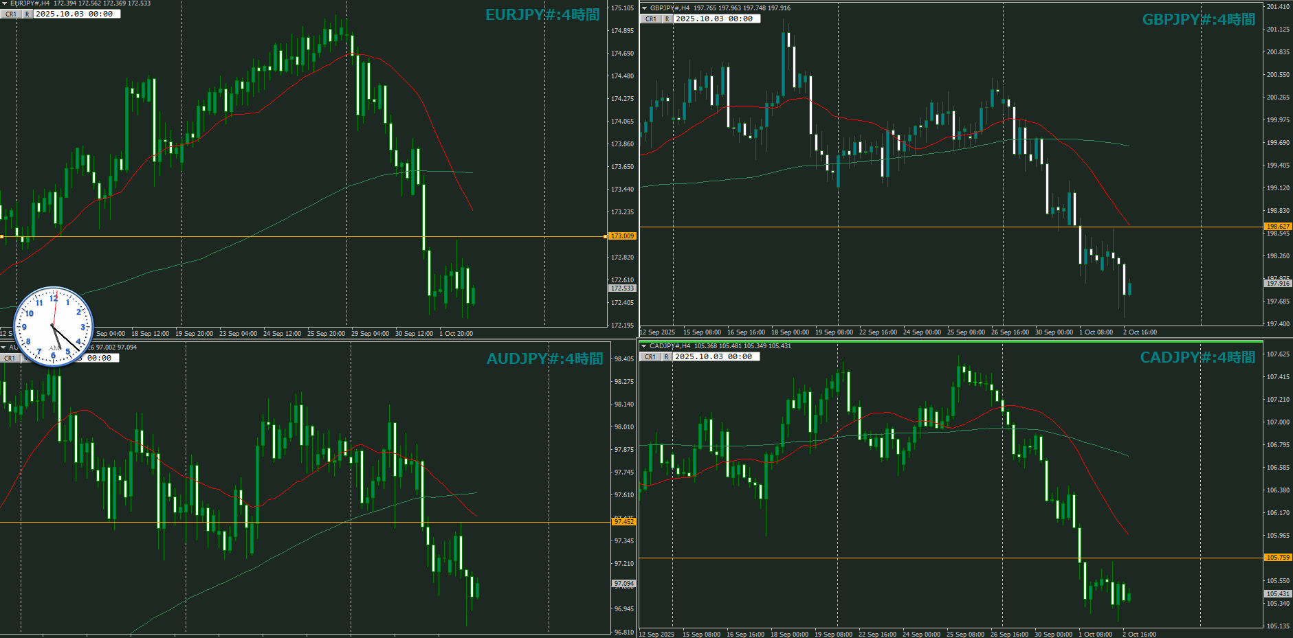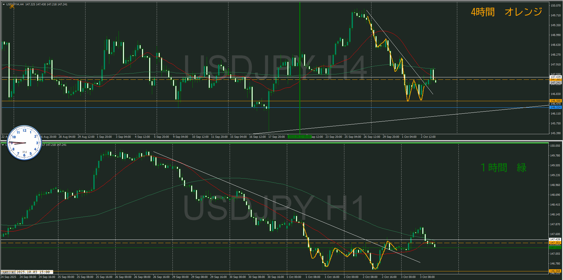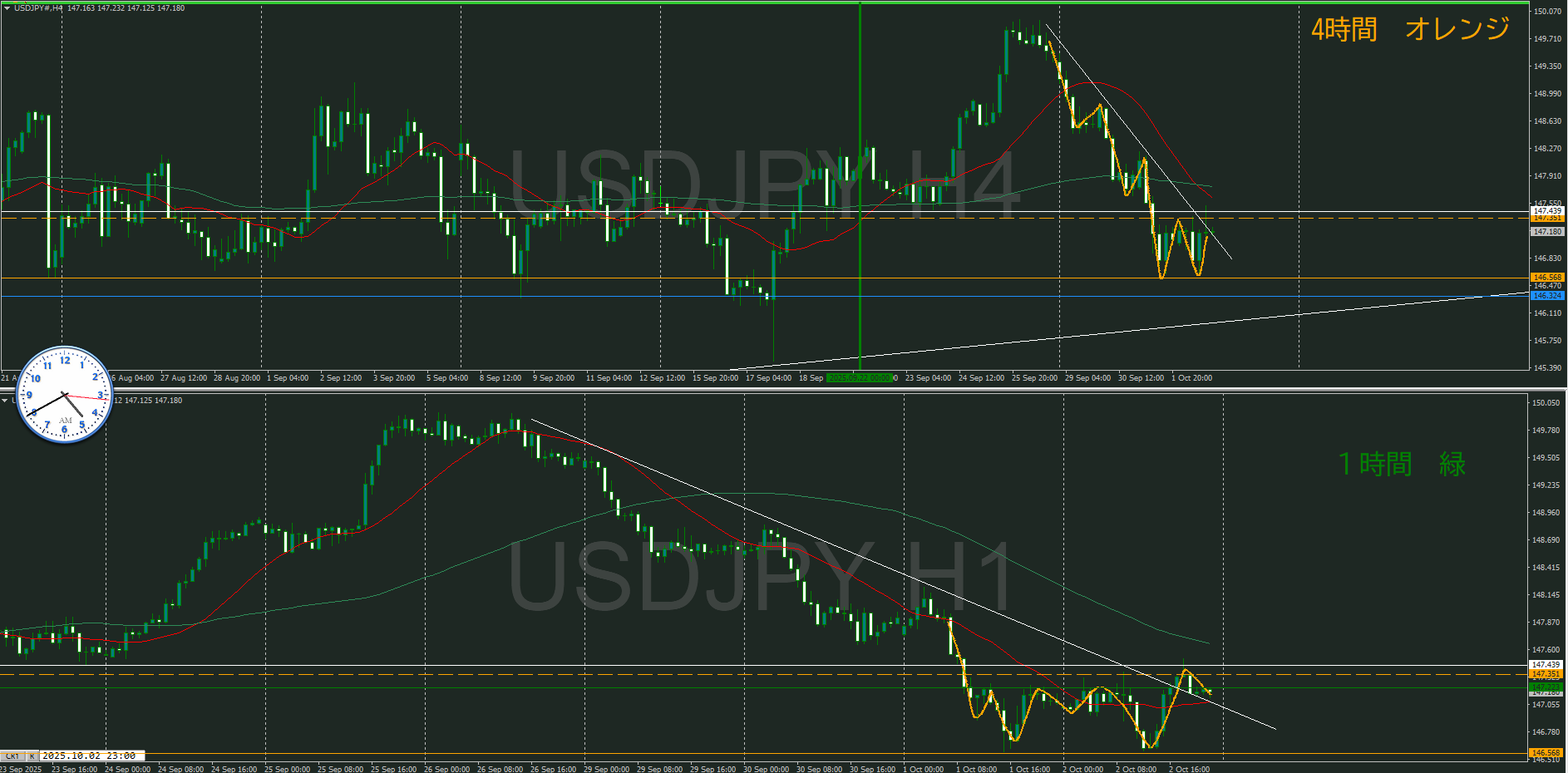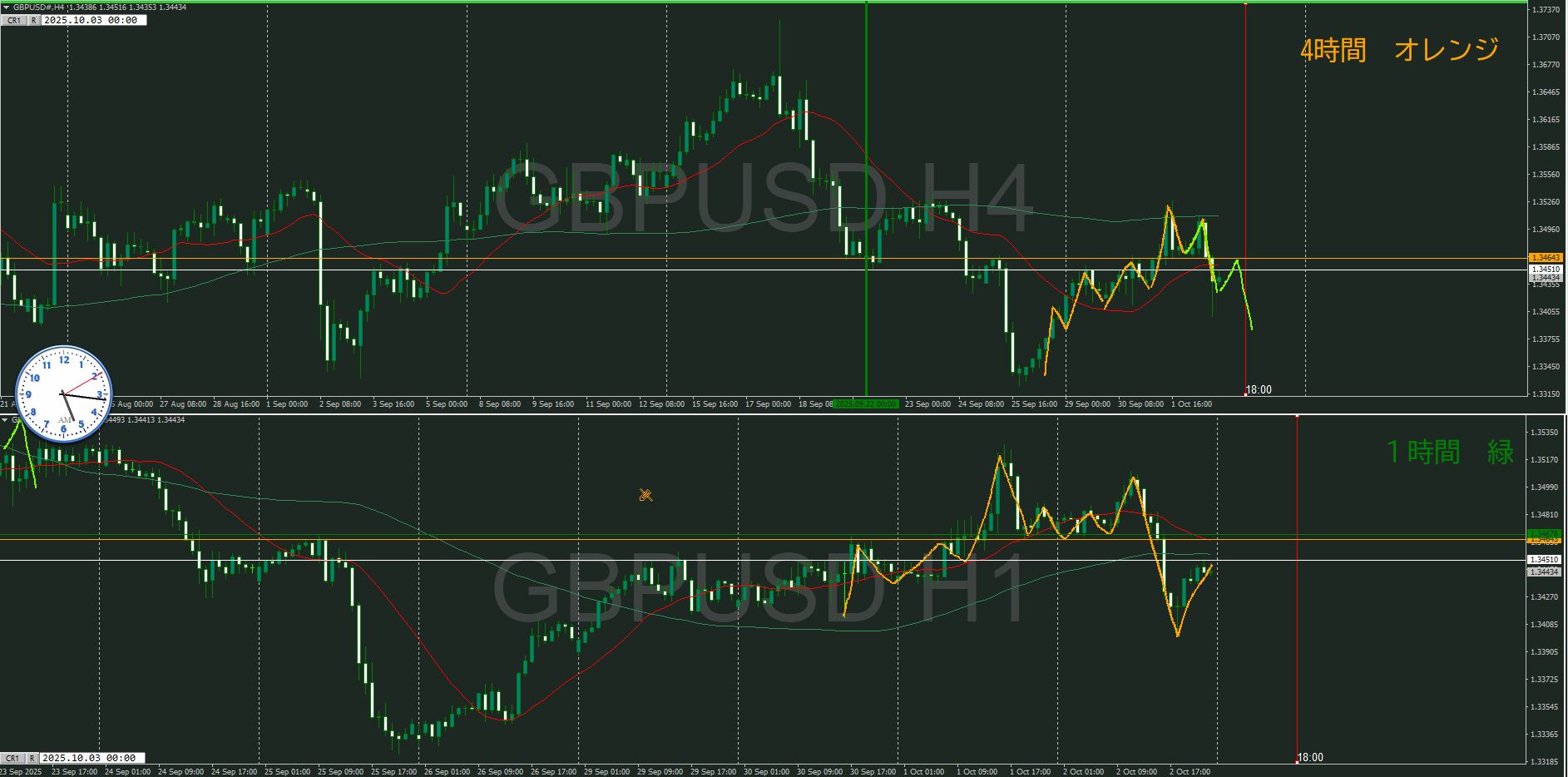 ・4時間 方向 上 or 下 (水平線 オレンジ)