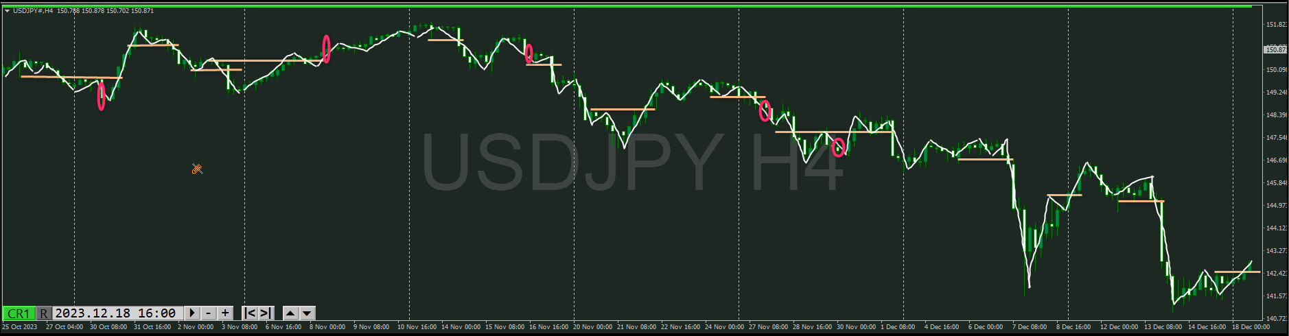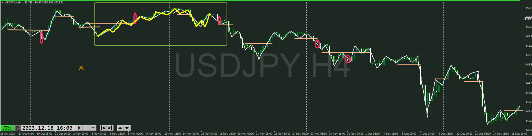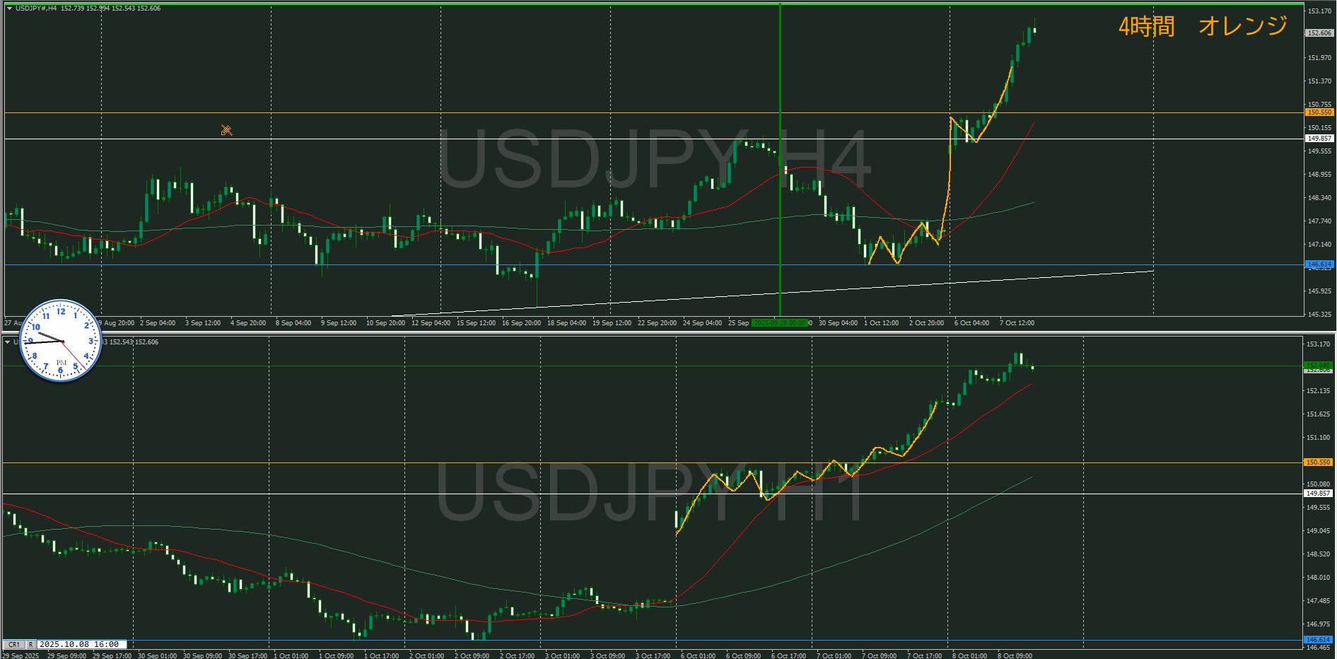 4時間は何処でカウントすれば良いのか、補正にしようがないが300pipsぐらいは伸びている