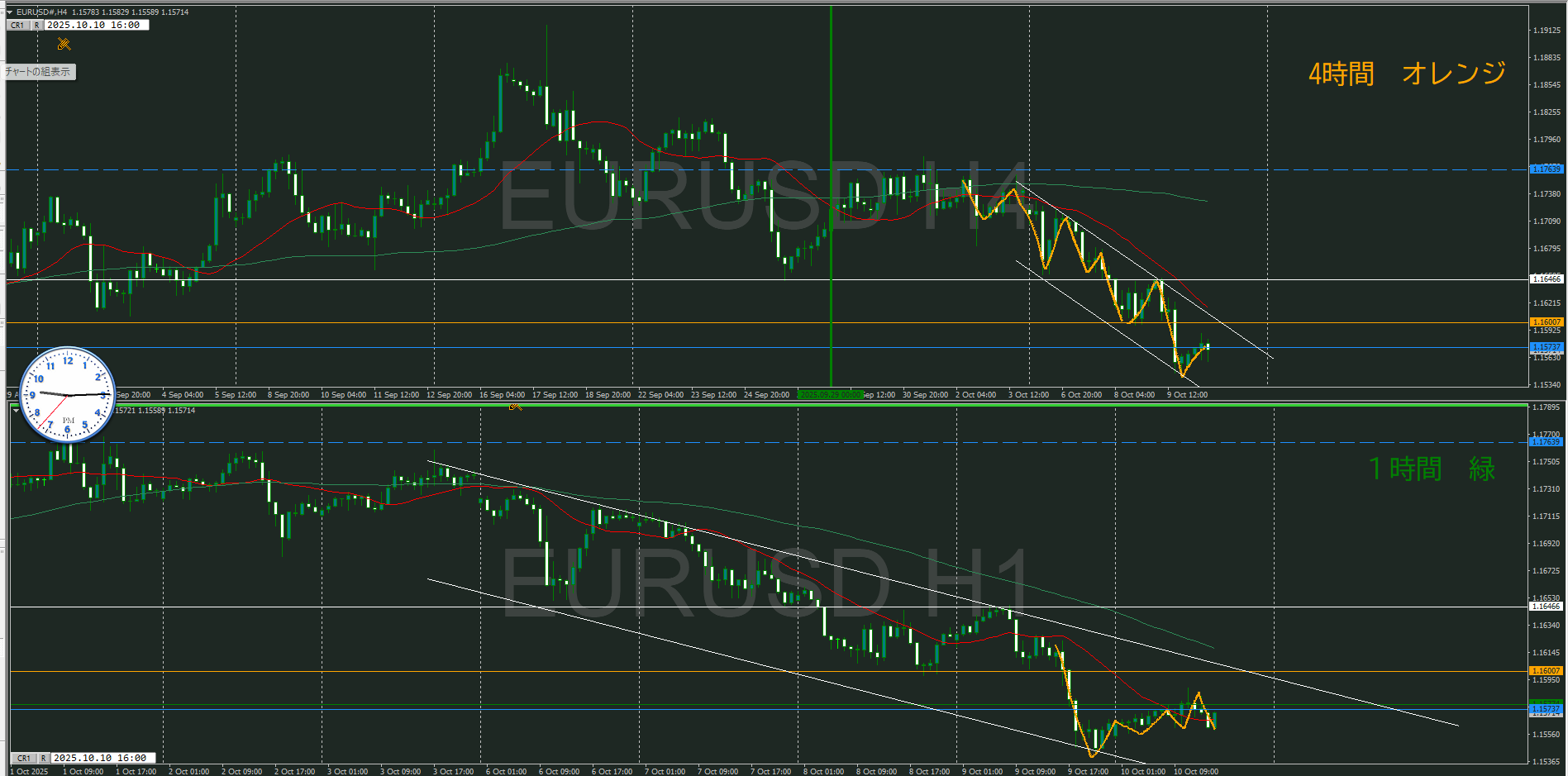 単純に「4・1時間同時割れだから」のようなシナリオにはならなかったが、週足が絡んでいるので、そうだろうな~と納得