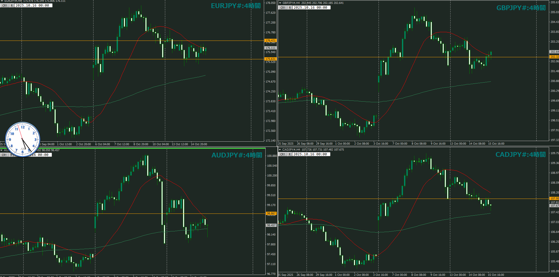 各通貨ペアがバラバラに動いているが、全般的には日足のMAが支えに来ている