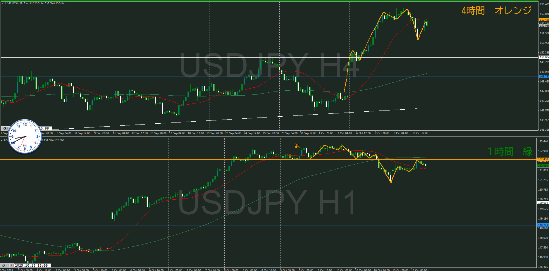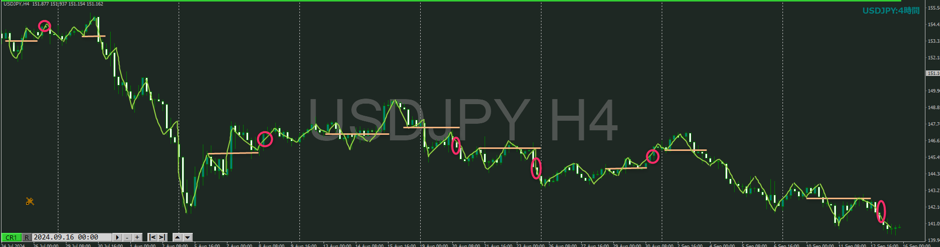 ・4時間 方向 上 (水平線 オレンジ)