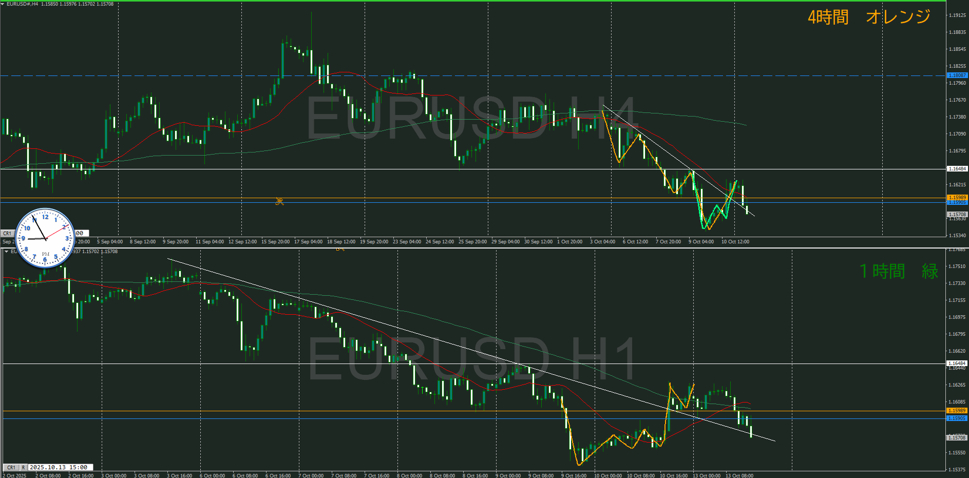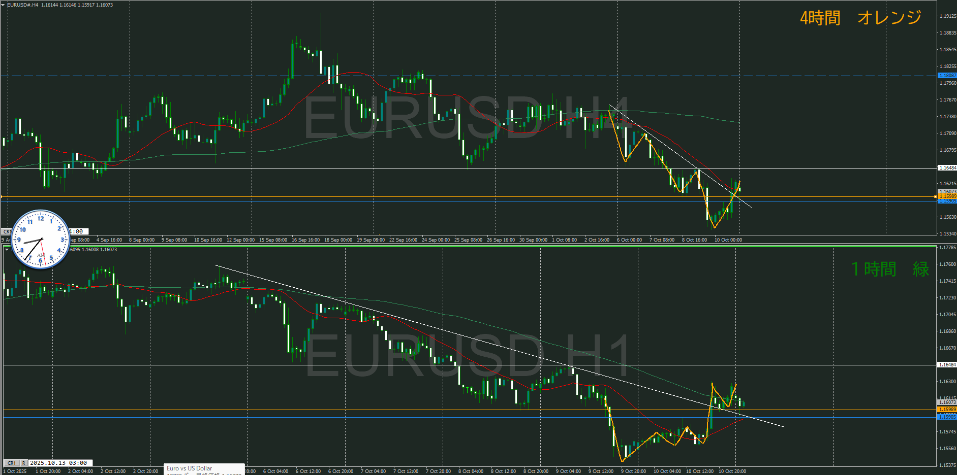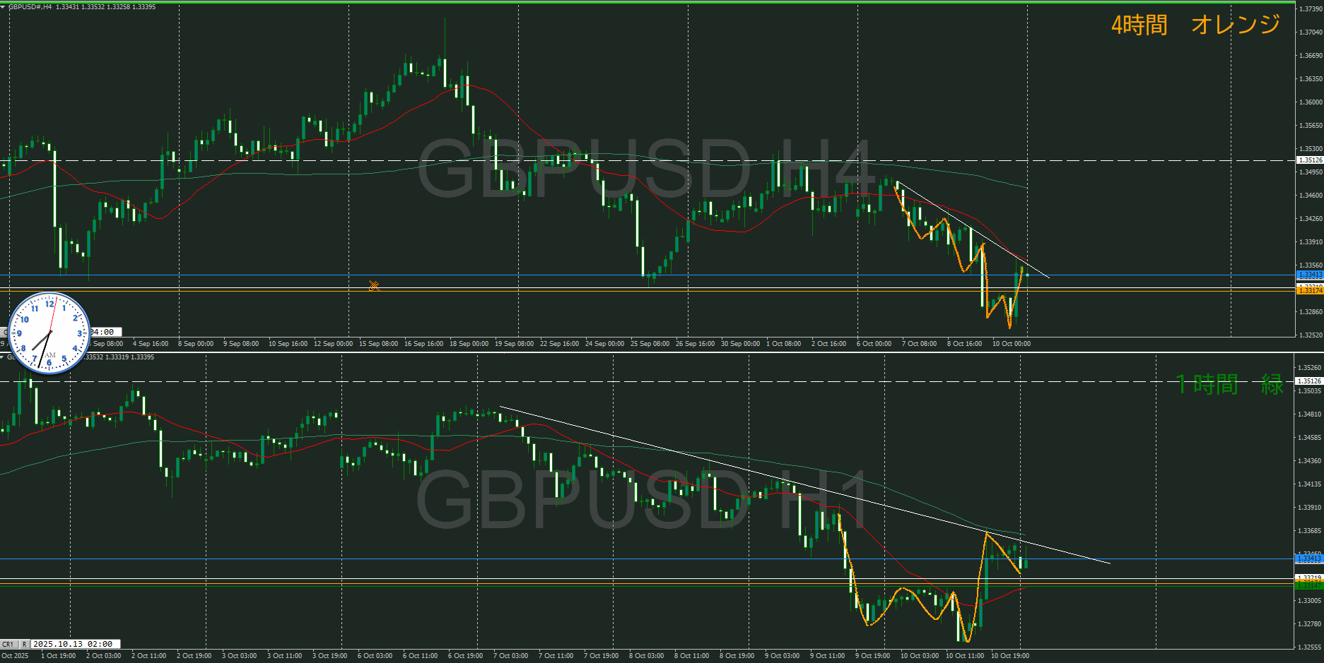 ・4時間 方向 下 (水平線 オレンジ)