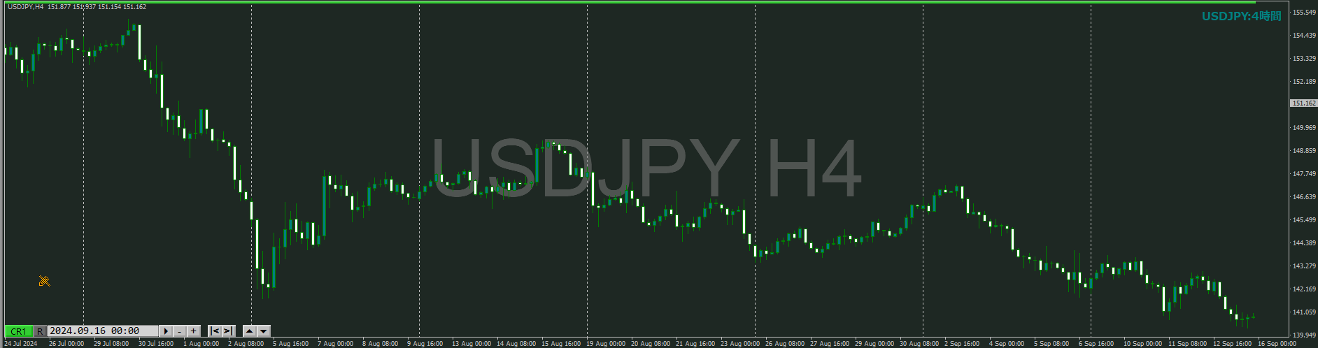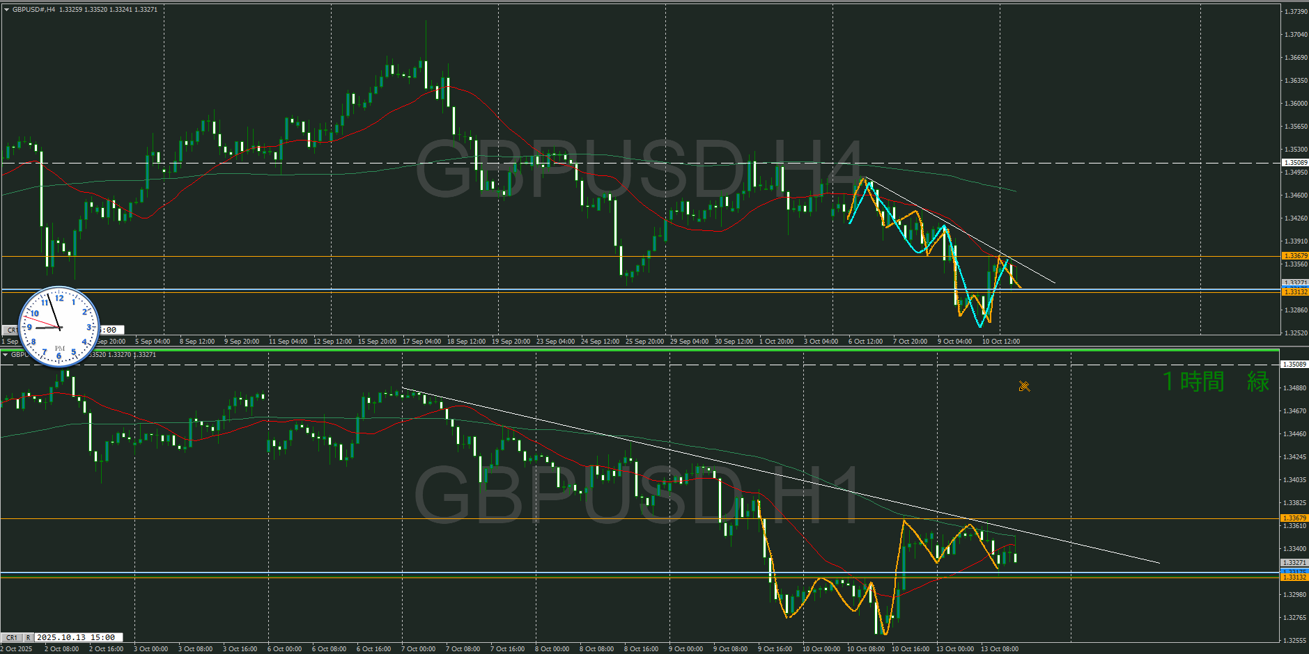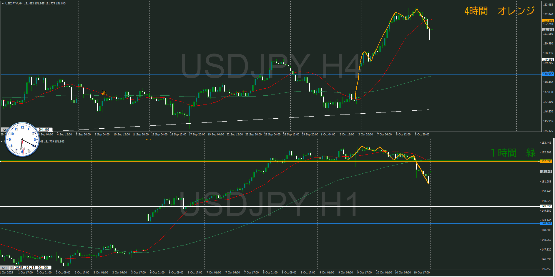 ・4時間 方向 下 (水平線 オレンジ)