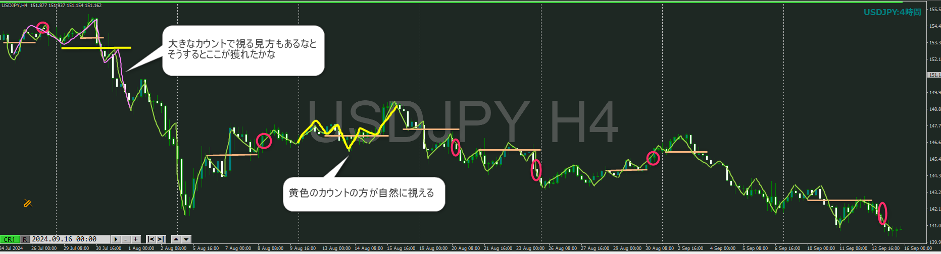 カウントによって攻防ラインになるのか、トレンドラインになるのか変わってしまうので、大切なんですけどね