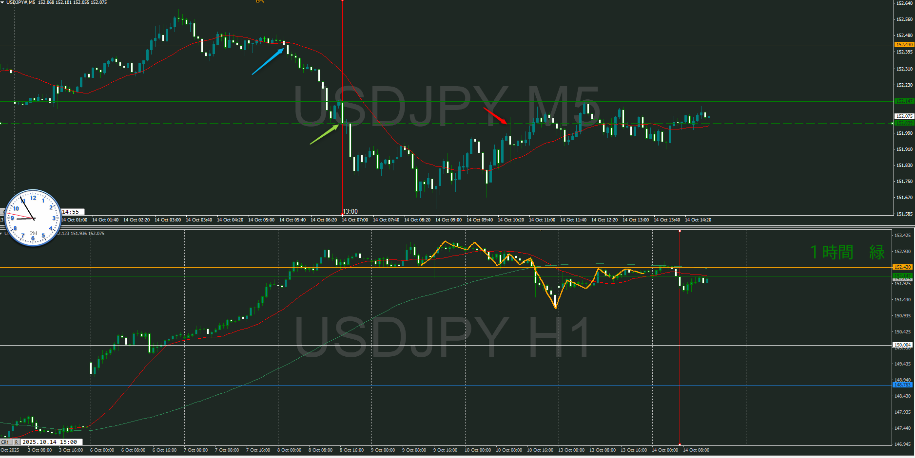 そのまま1時間の安値割れを待っていたが、昼食を食べた後で眠くなりねてしまったが、13時に目覚めるとキレイに戻してきた居た