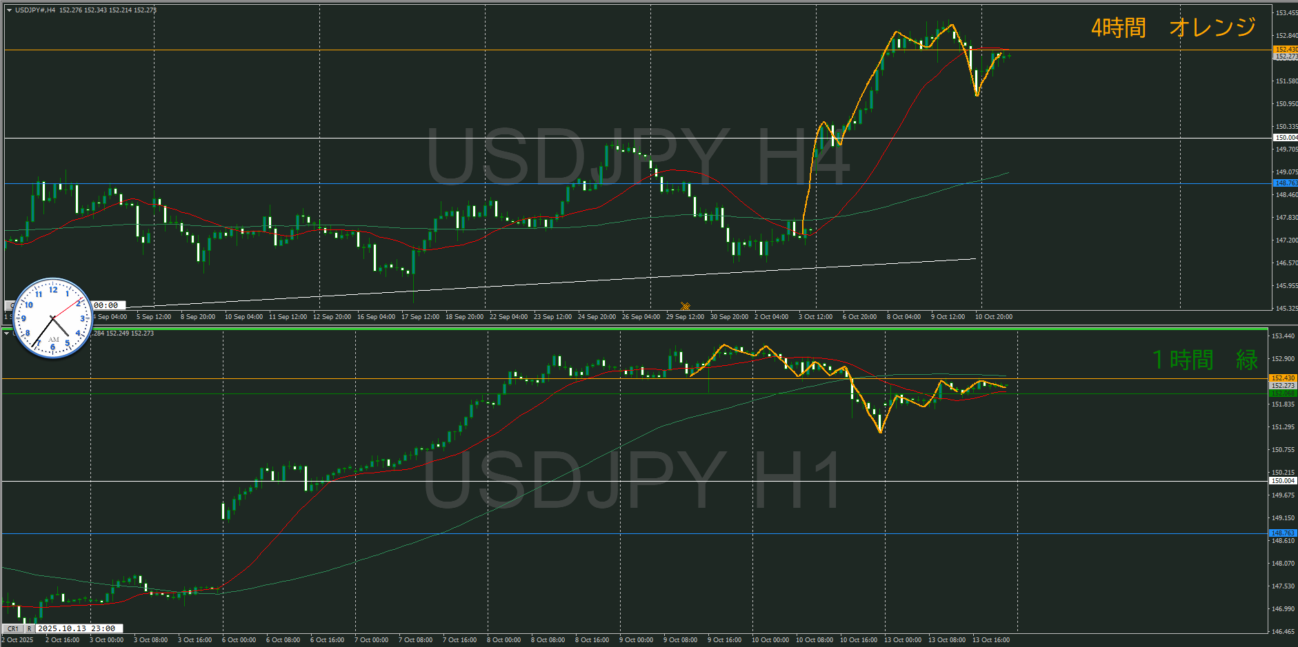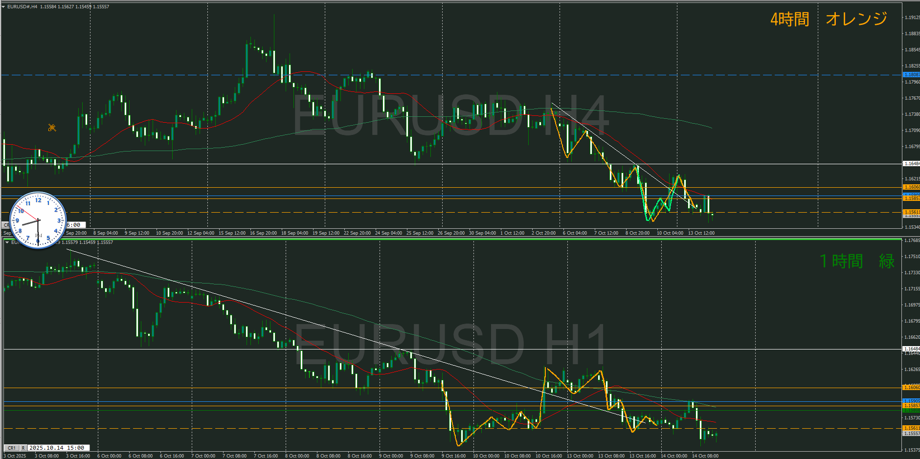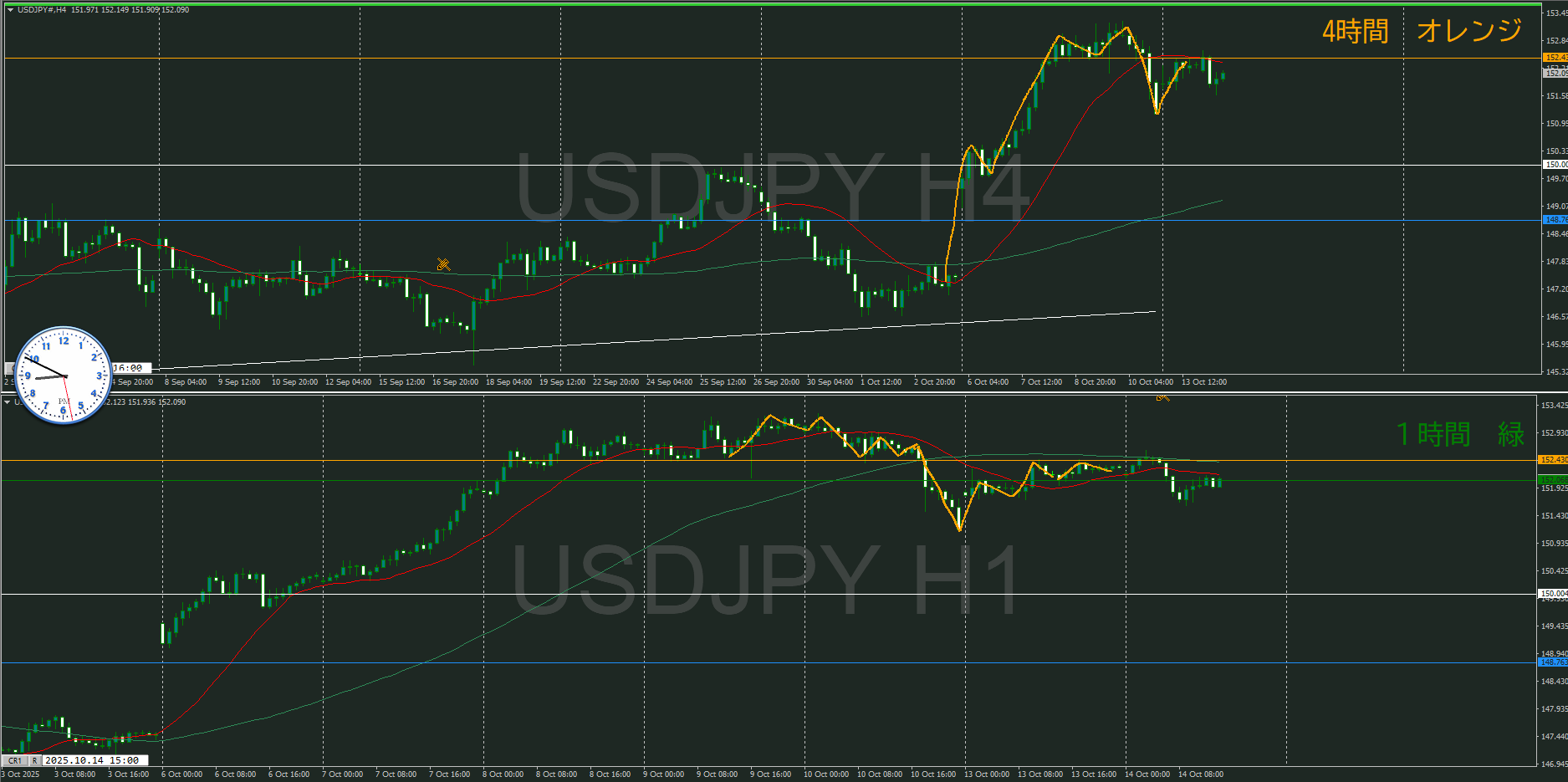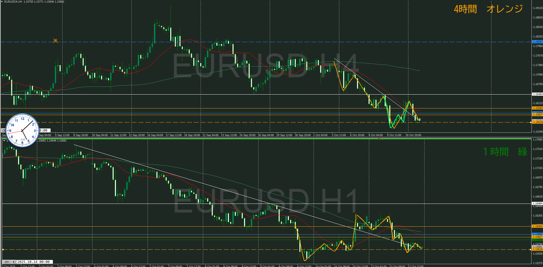 ・4時間 方向 上 or 下 (水平線 オレンジ)