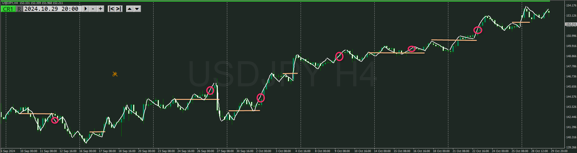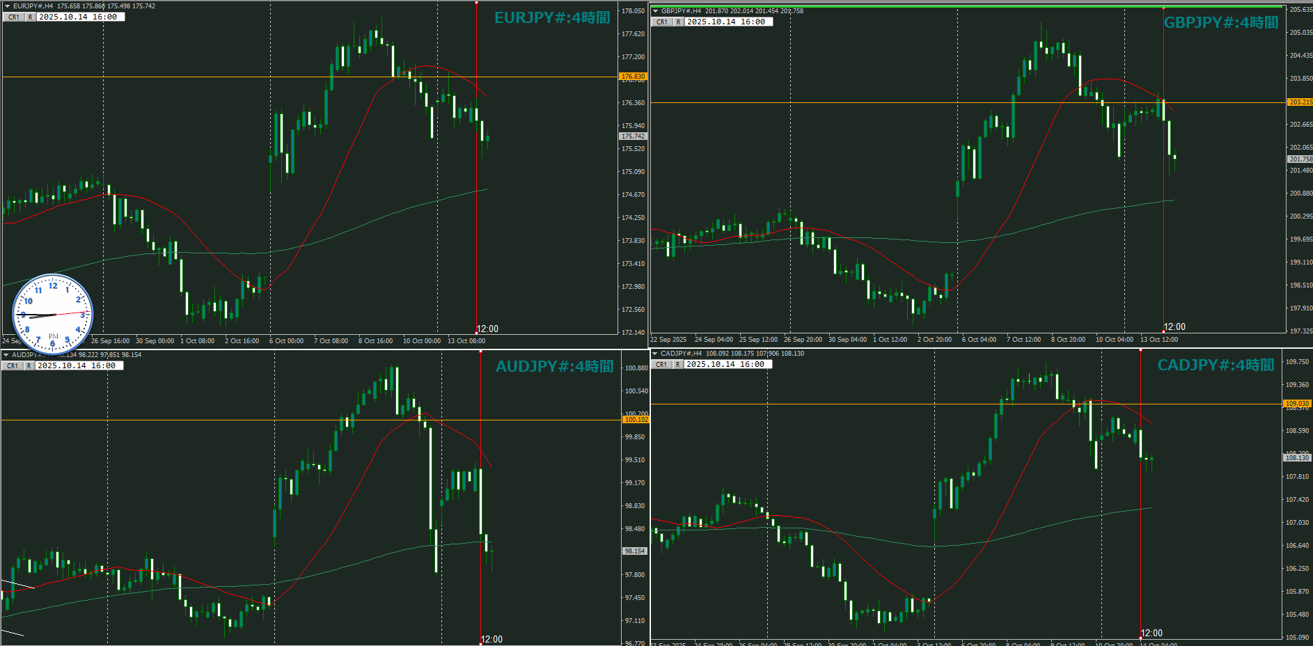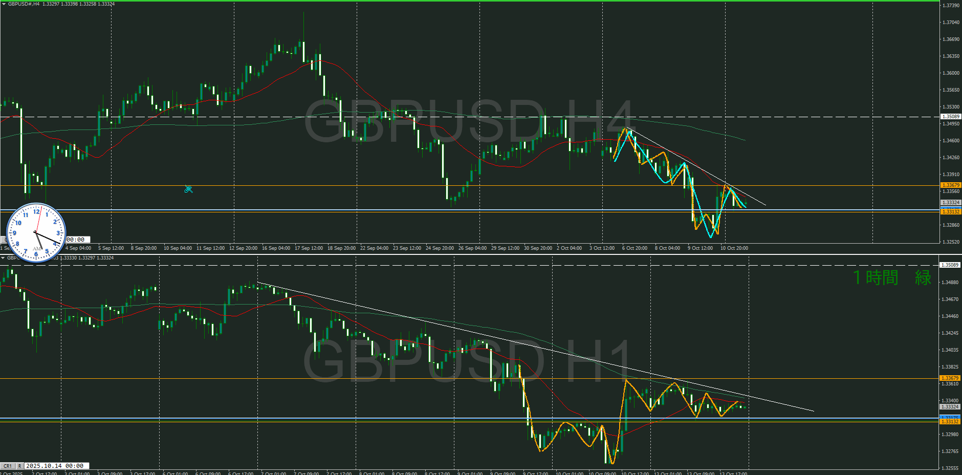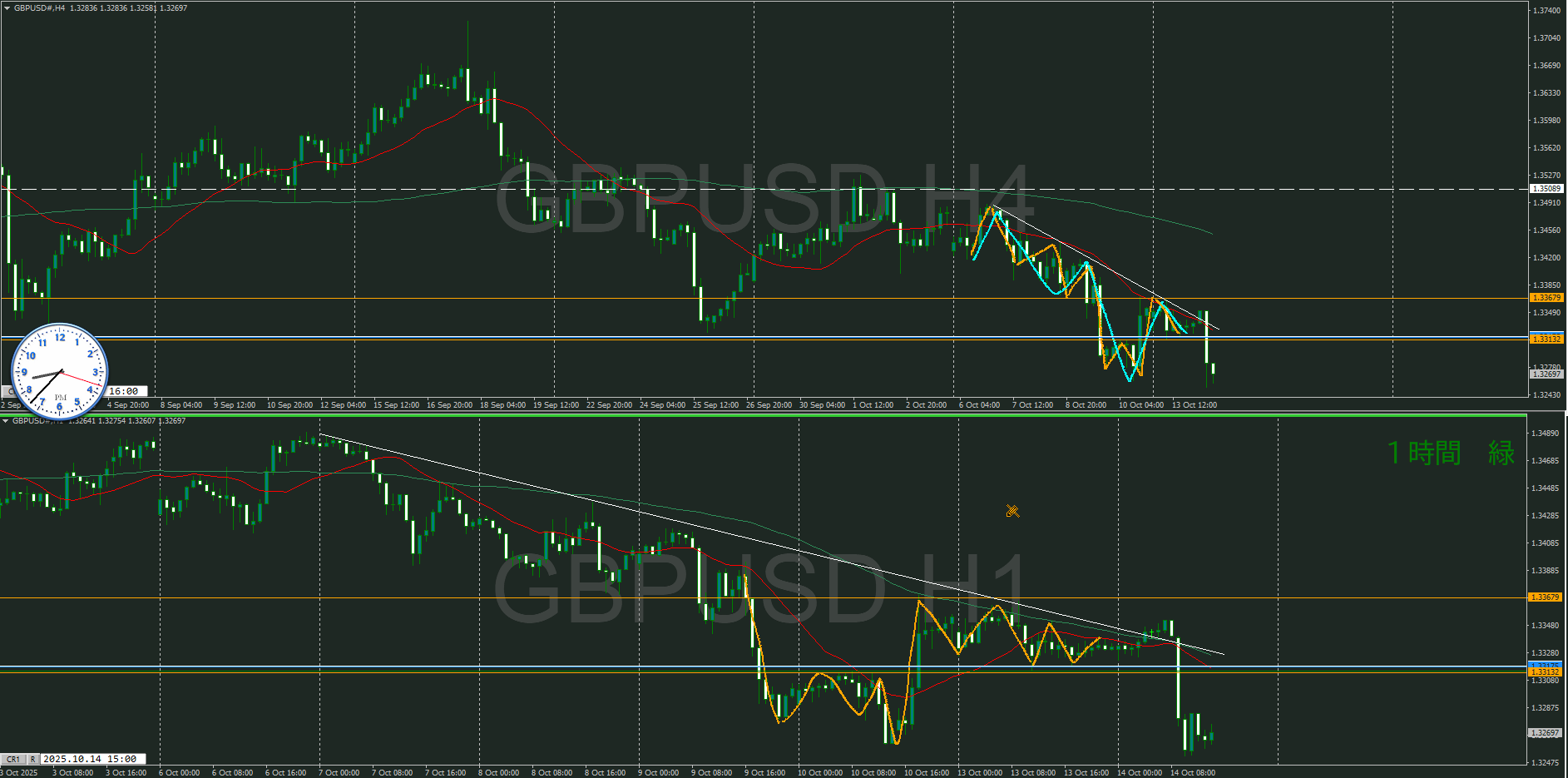 ・4時間 方向 上 or 下 (水平線 オレンジ)
