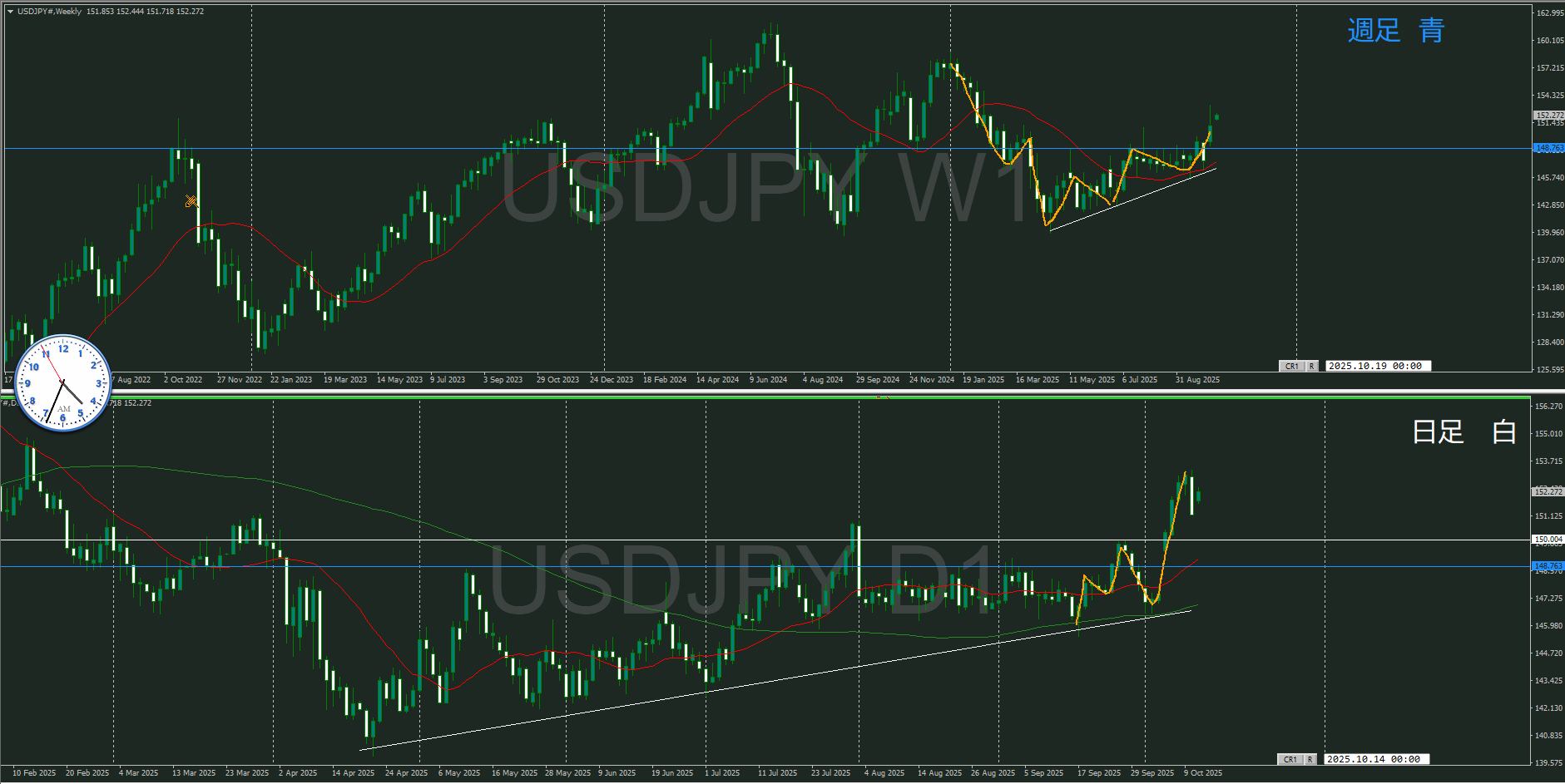 週足が下がりたくないと言っているのか、日足勢力との闘いが起こっていると思う