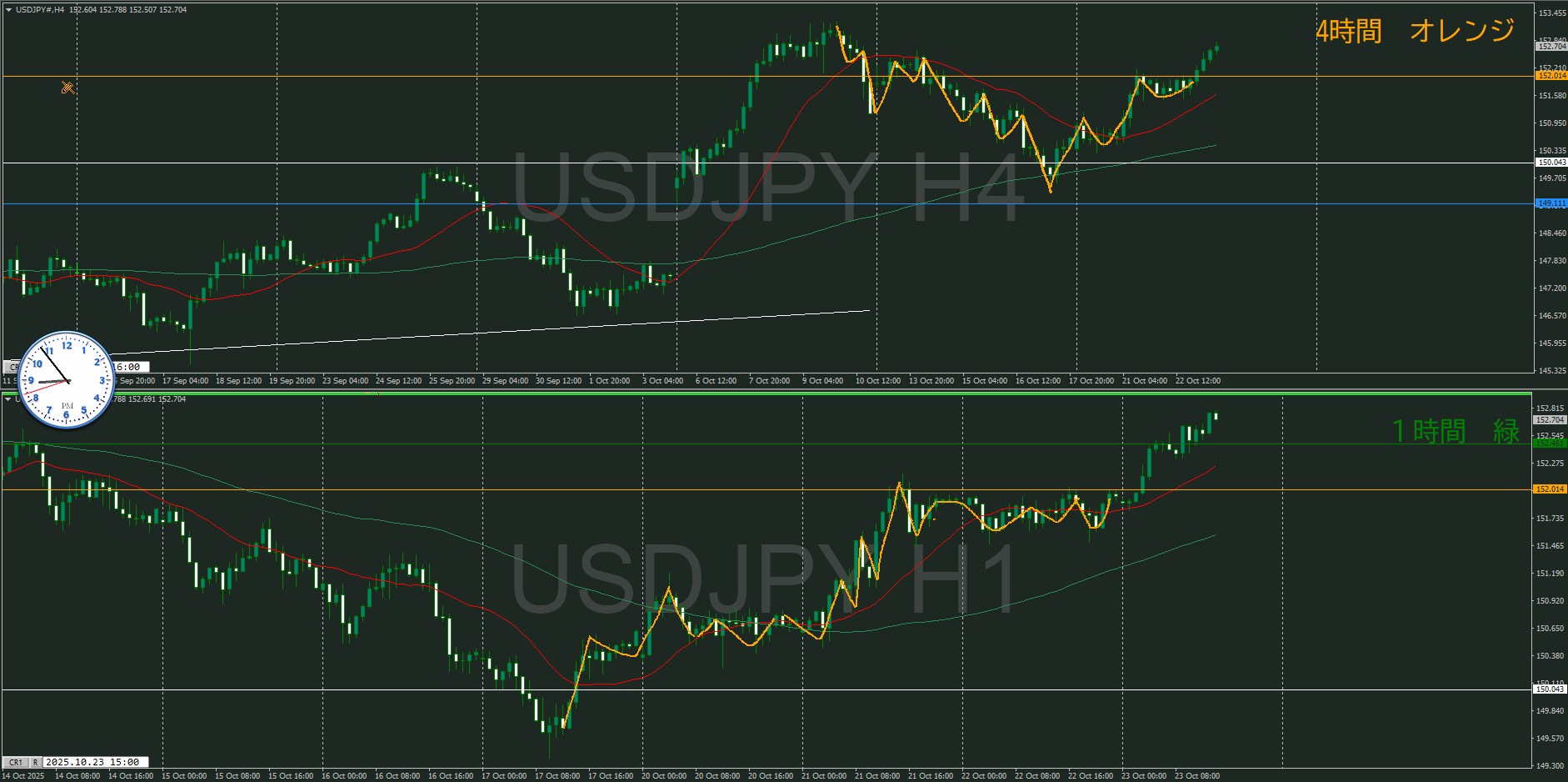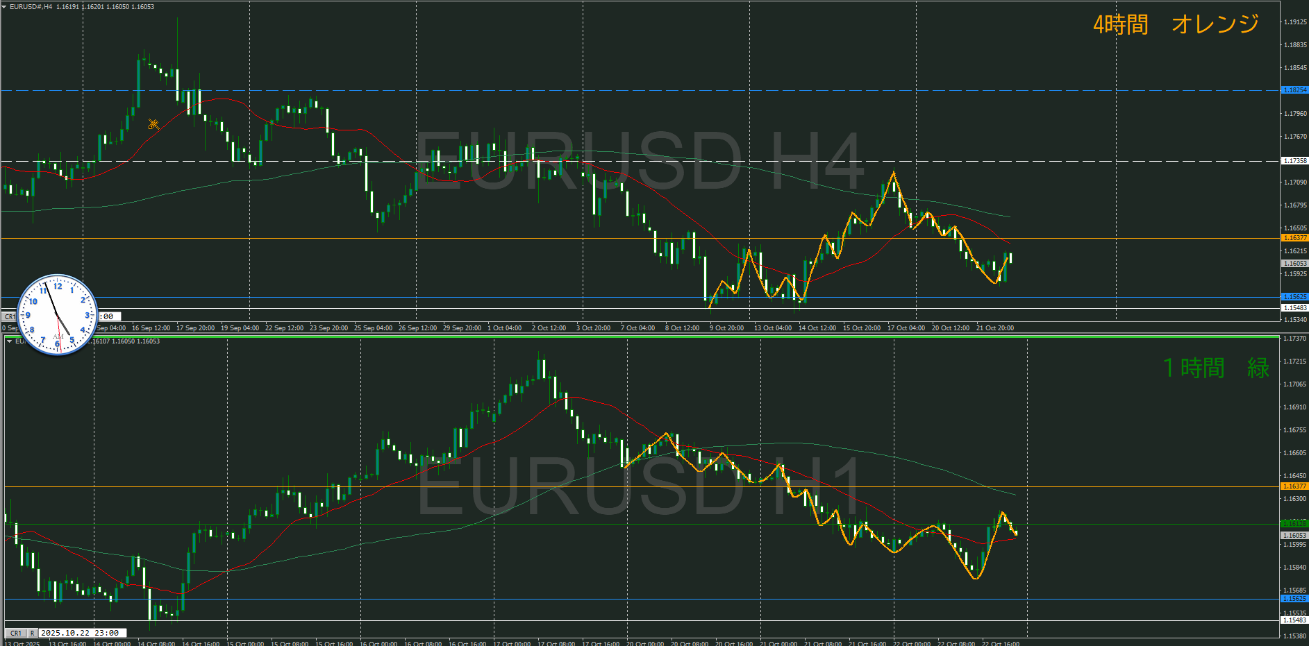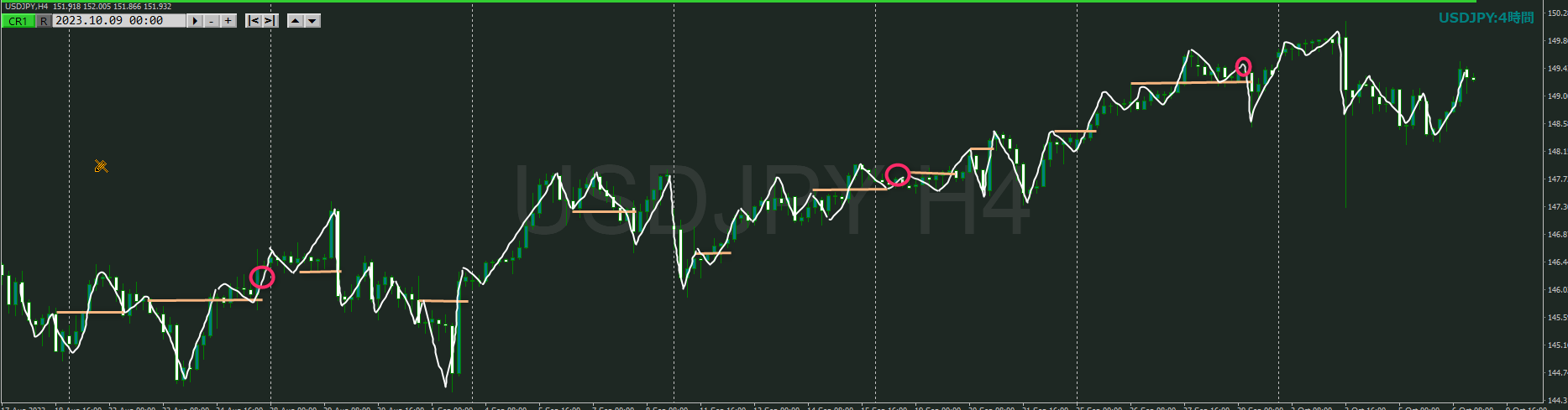 ・4時間 方向 上 (水平線 オレンジ)