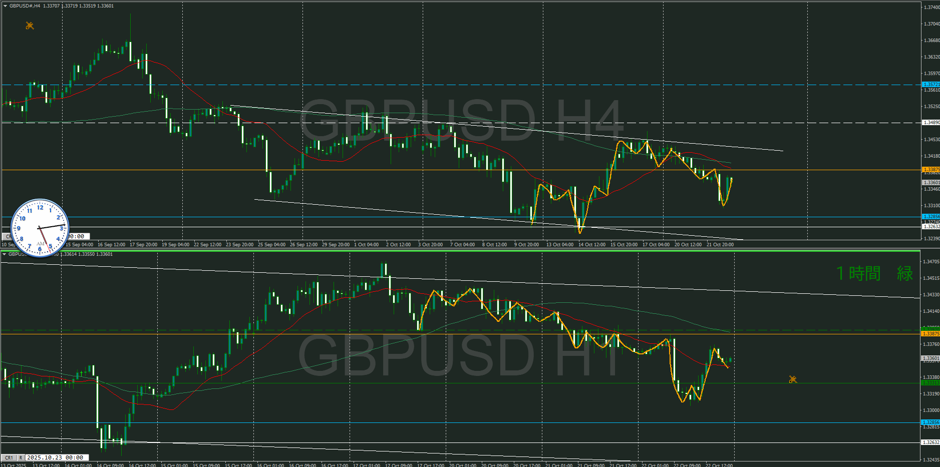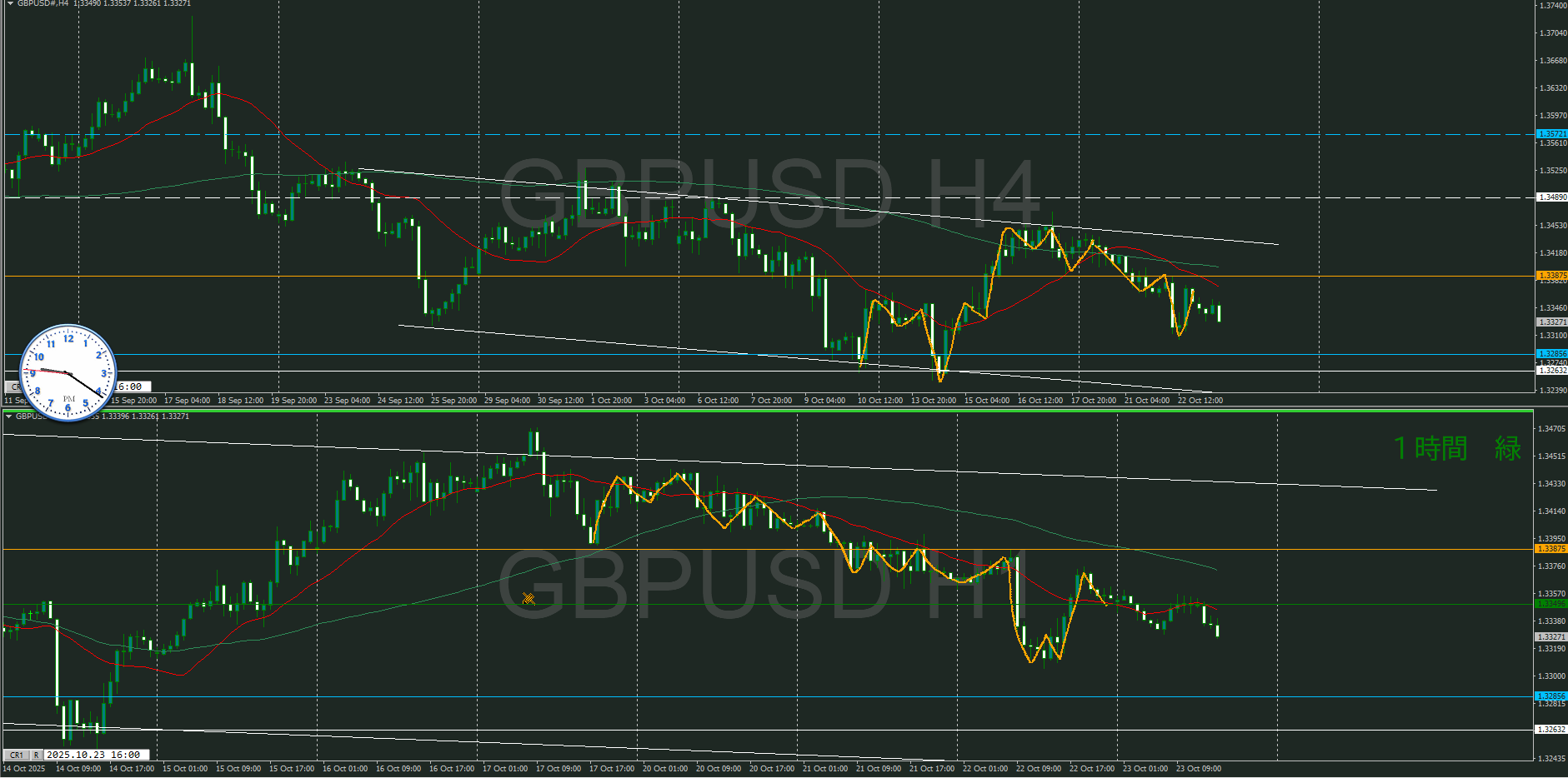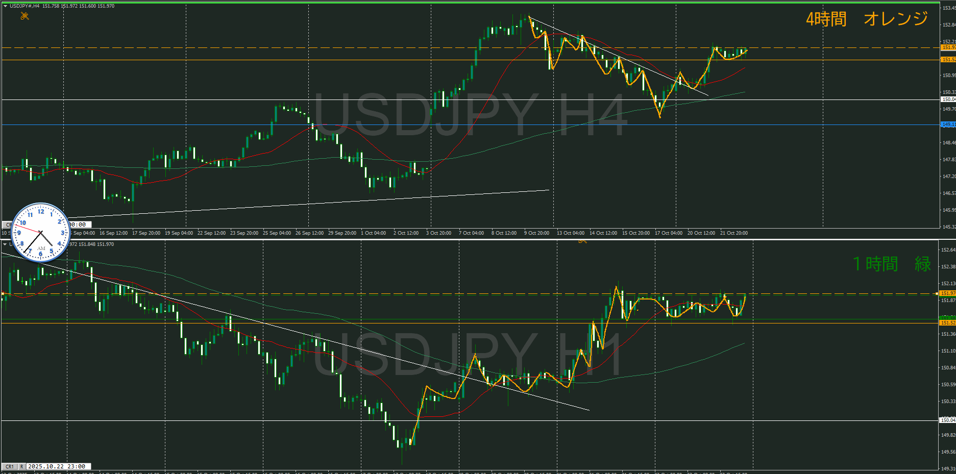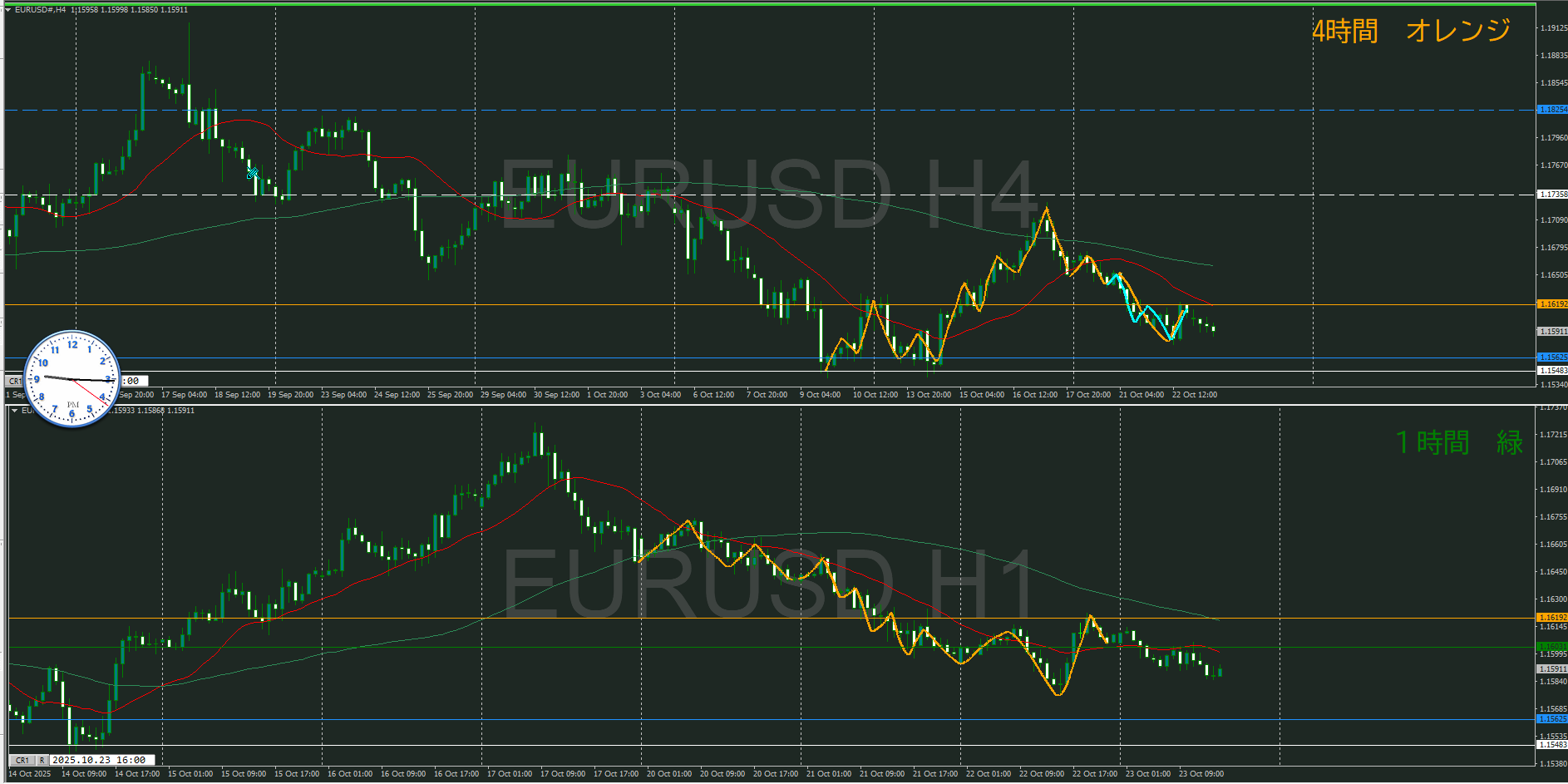 ・4時間 方向 下 (水平線 オレンジ)