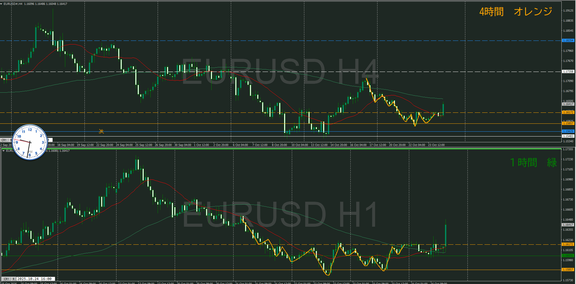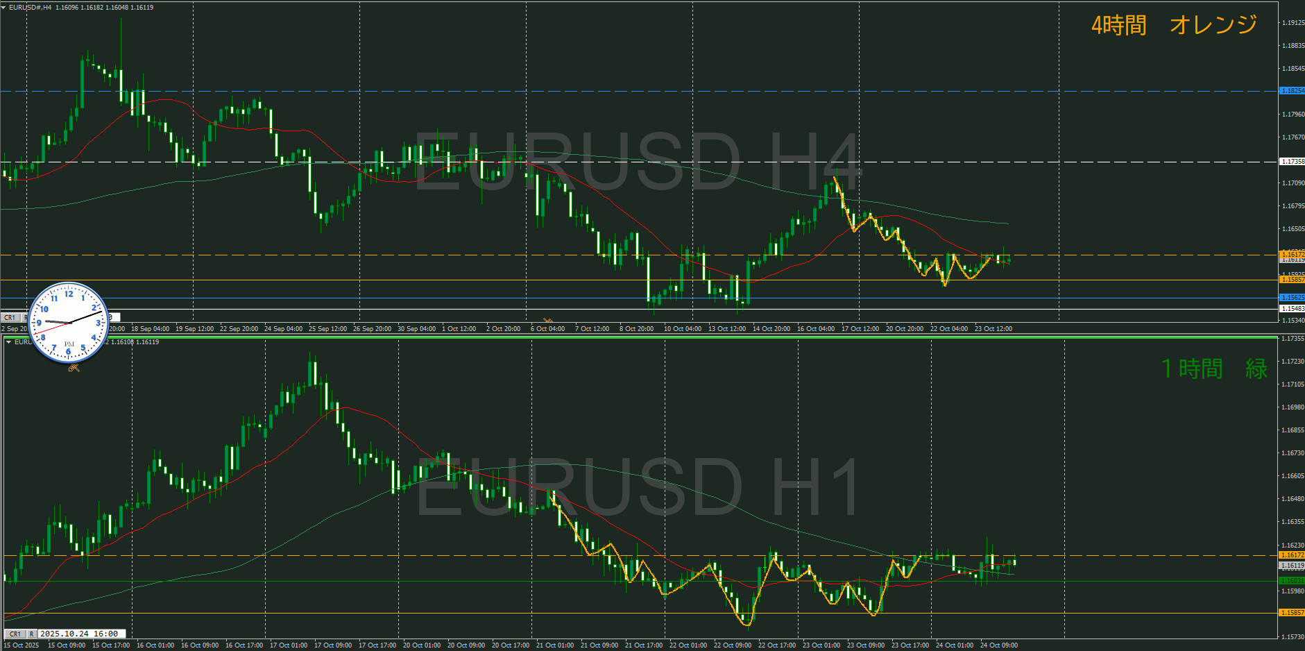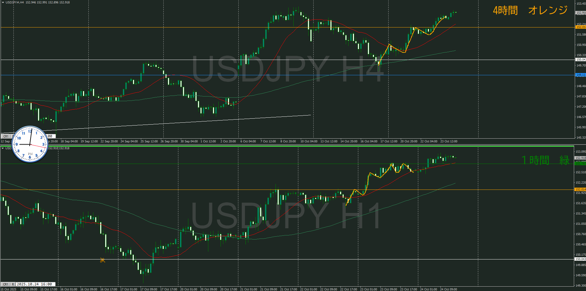 ・4時間 方向 上 (水平線 オレンジ)
