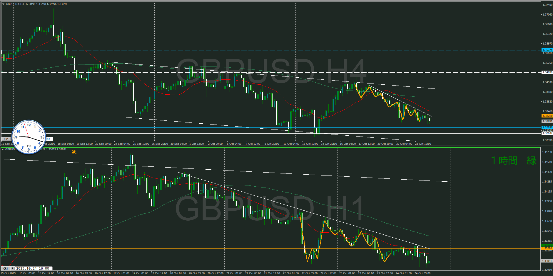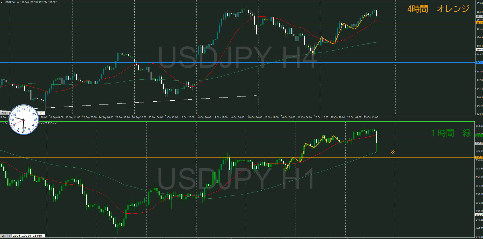 ・4時間 方向 下 (水平線 オレンジ)