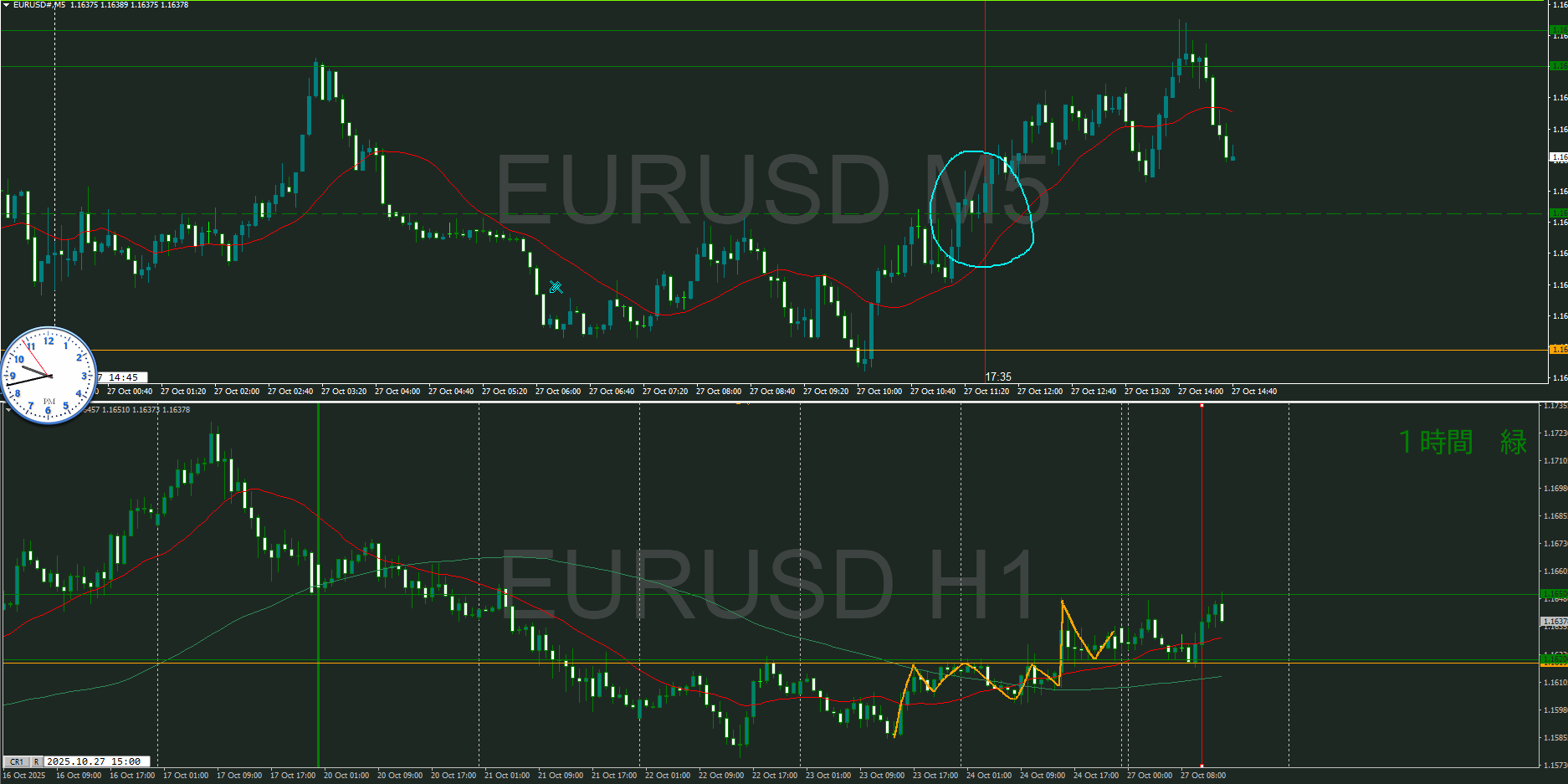 朝には気が付いたから良かったですが、その後の値動きで1時間が割っているのか、どうなのか確認が難しかったです