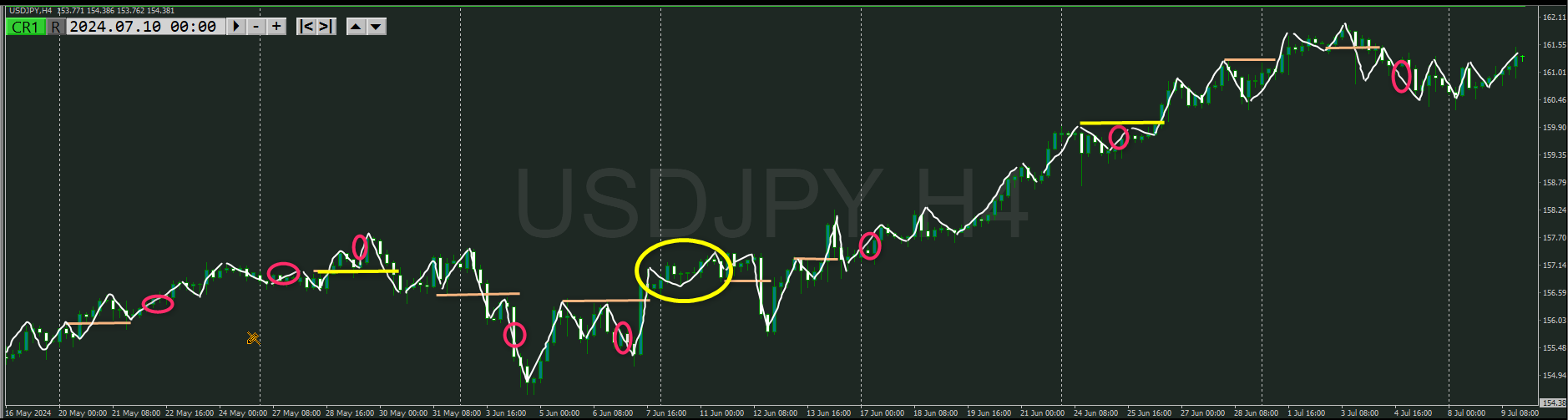 まだこのリズムで動く可能性があるが、4時間の戻しを付けてきたら、安値付近までは狙る