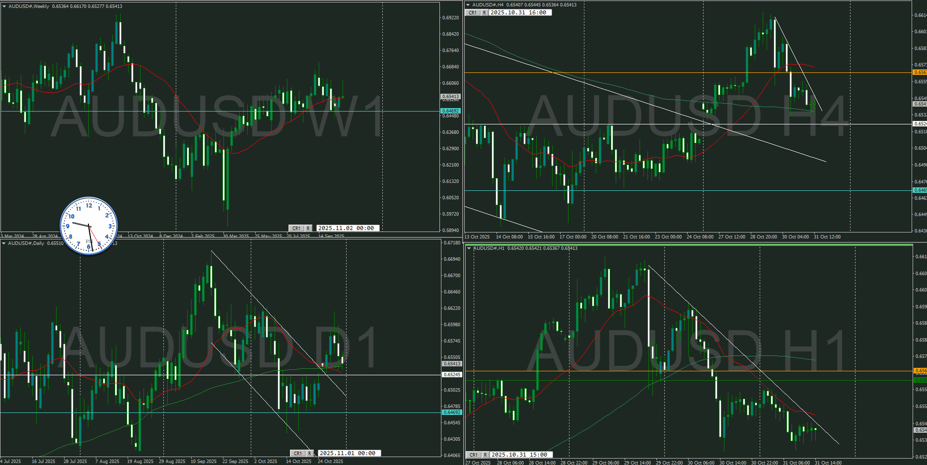 日足下落チャネルライン上で攻防が視られたが明確に割ってきて下落の波の途中
