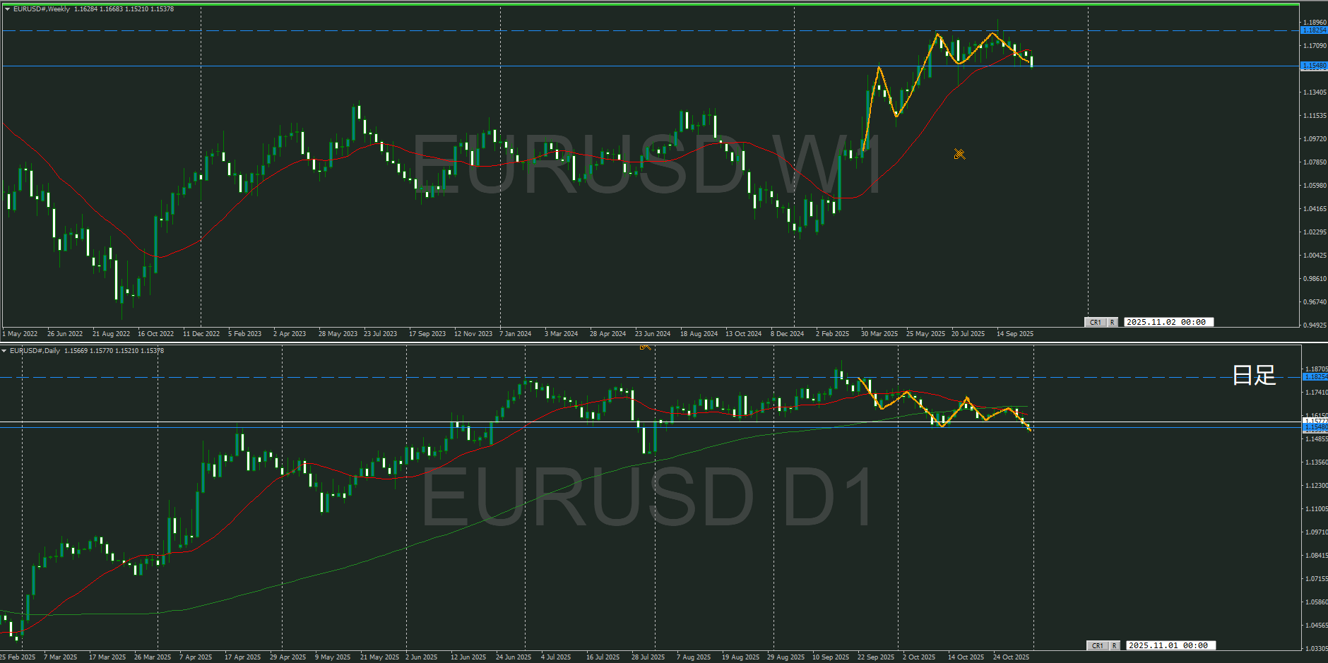 再度下落なのか、日足の戻しが入ってくるのかを視ていく