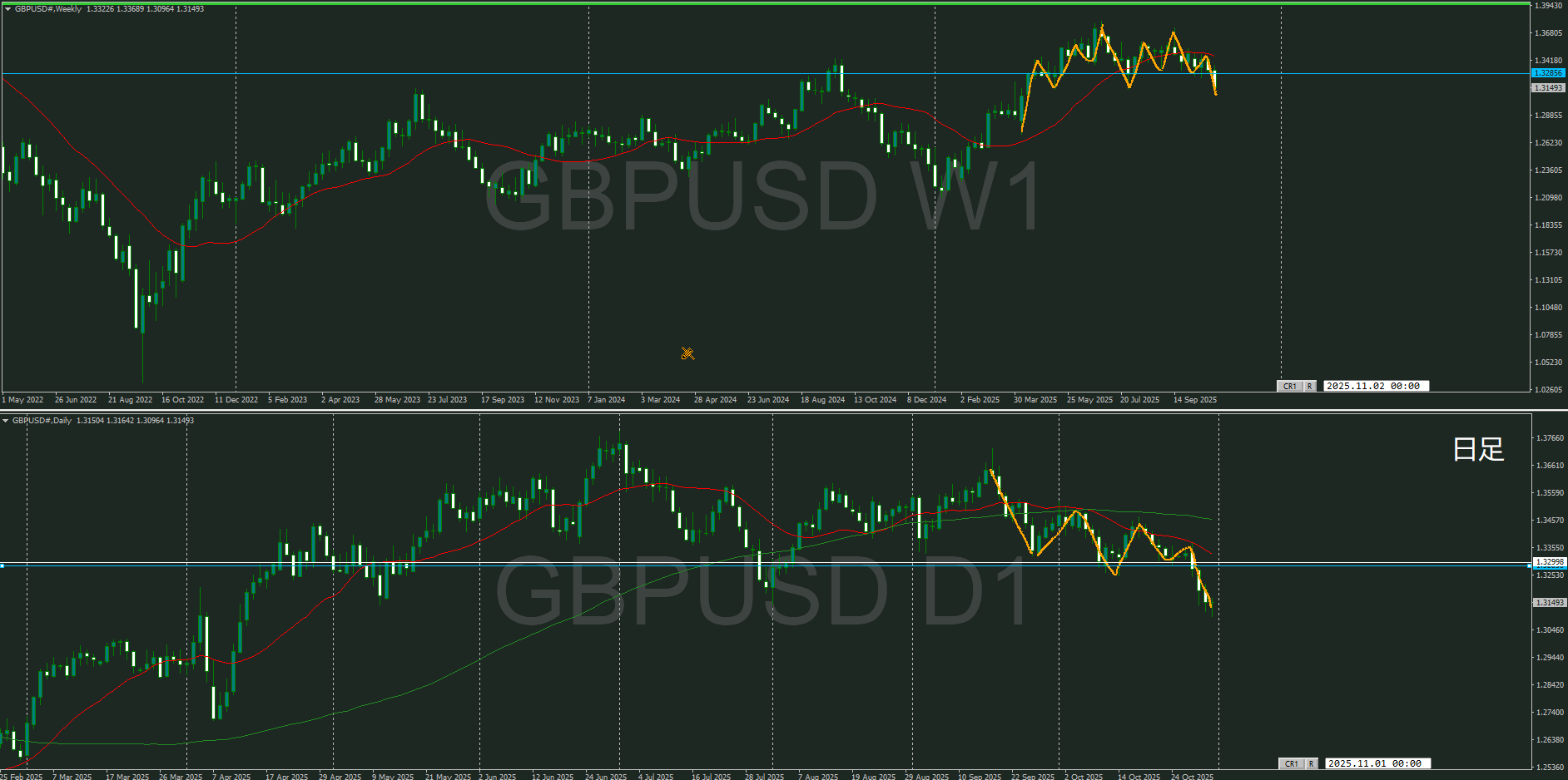 ポンドオージ 日足の戻どしてくるのかが焦点