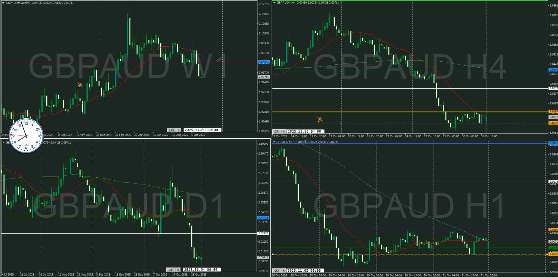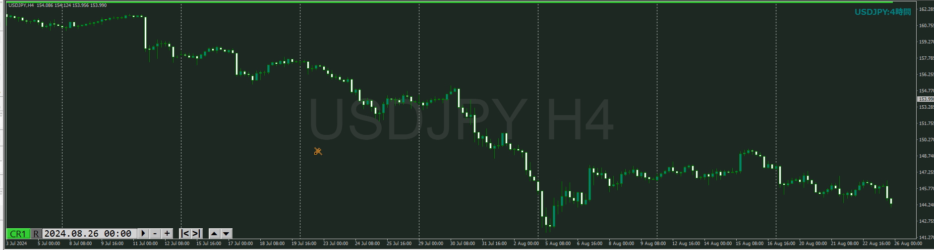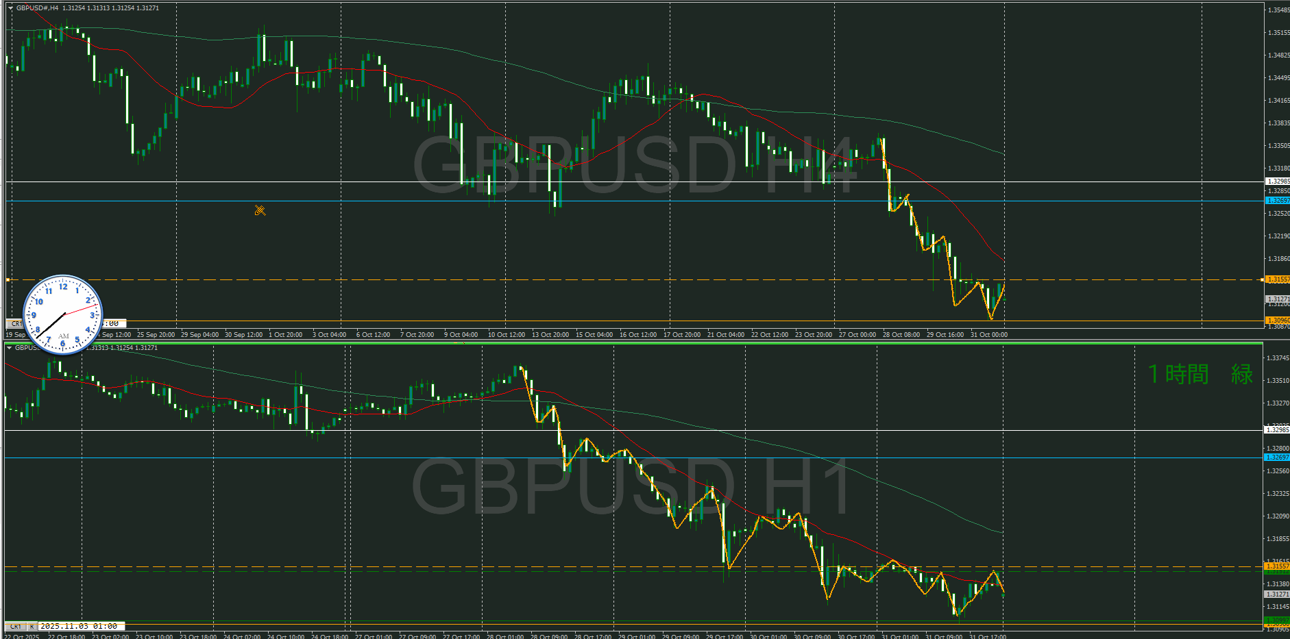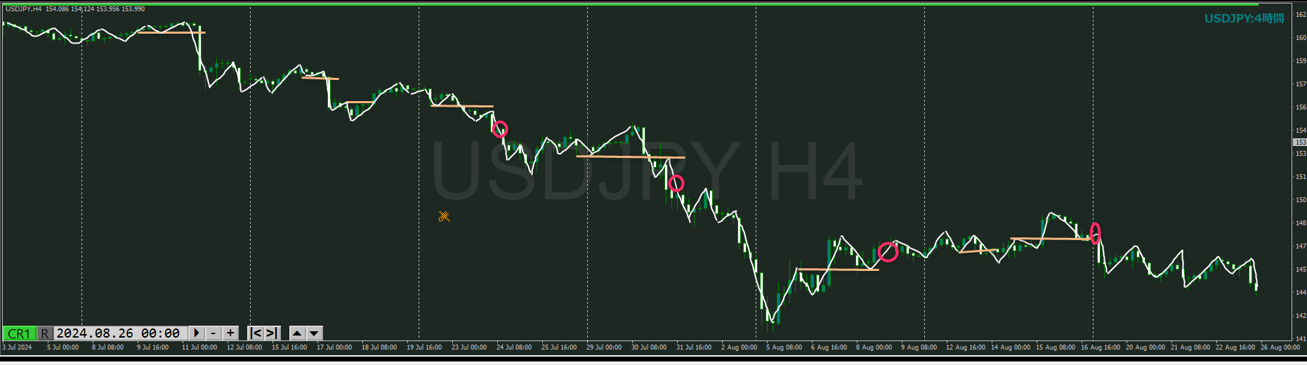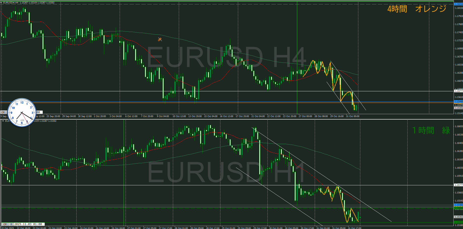 ・4時間 方向 下 (水平線 オレンジ)
