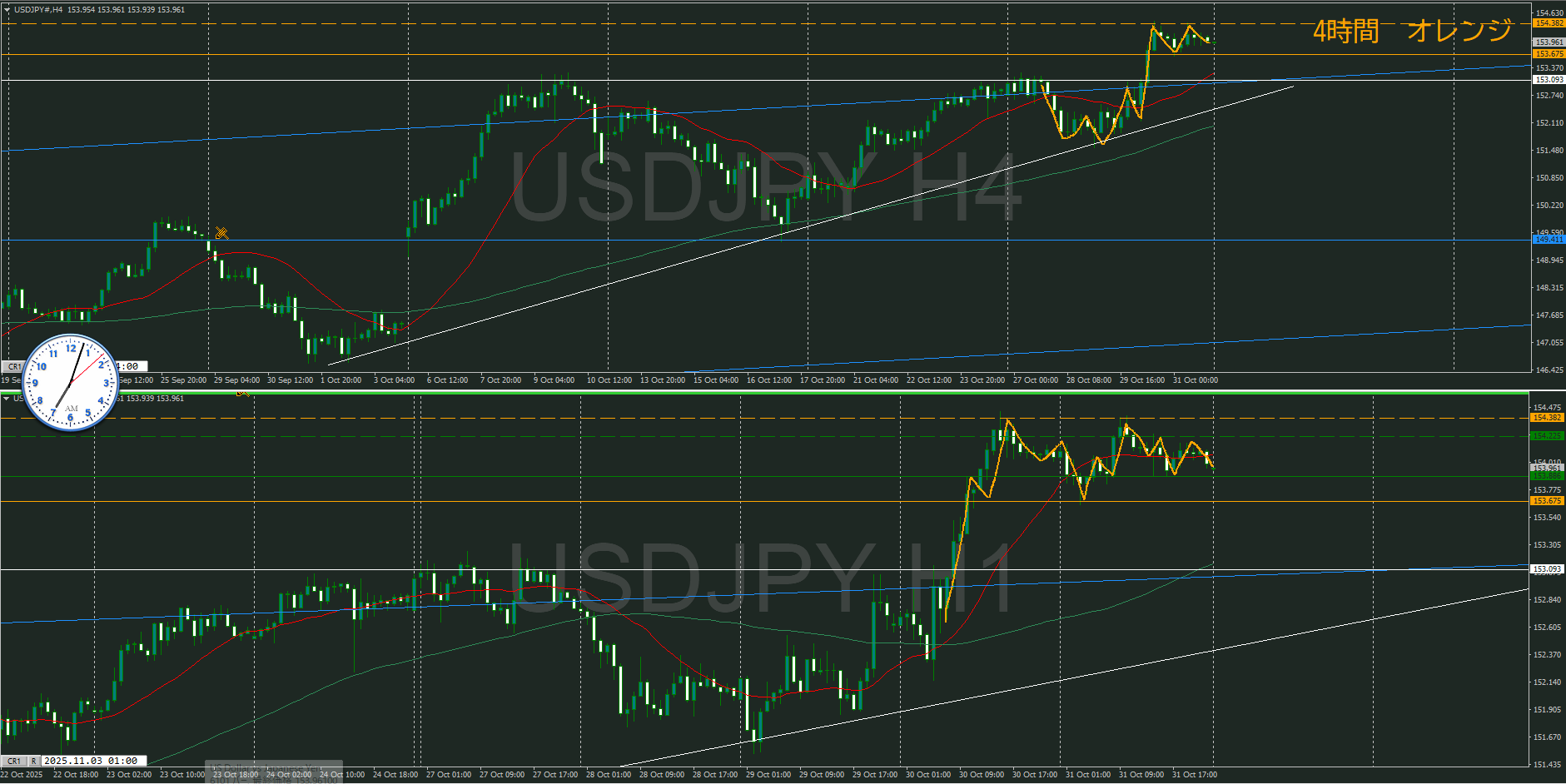 ・4時間 方向 上 (水平線 オレンジ)