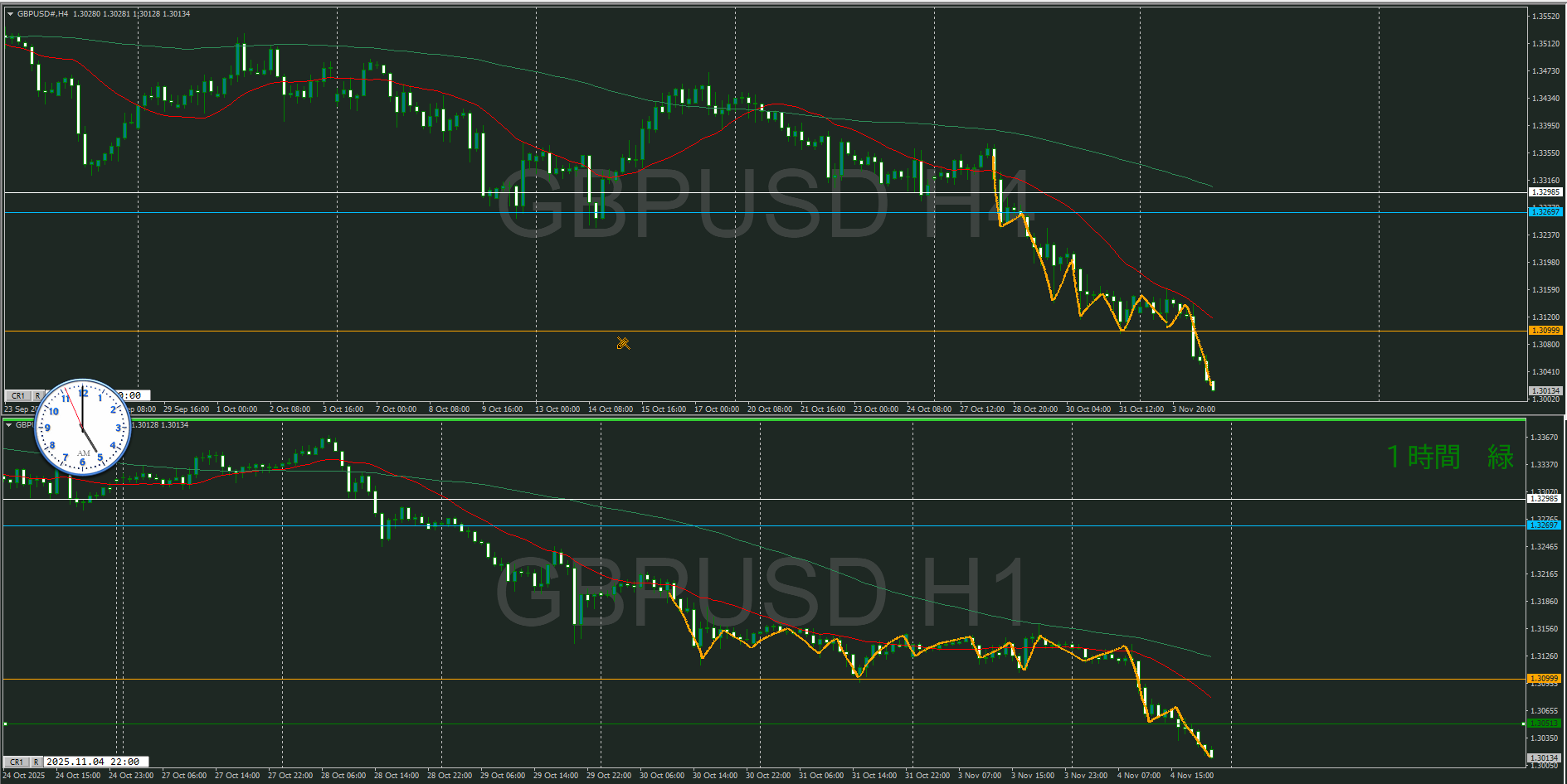ポンドル 4時間で戻り売り 検討できるの ▲ (-_-メ)