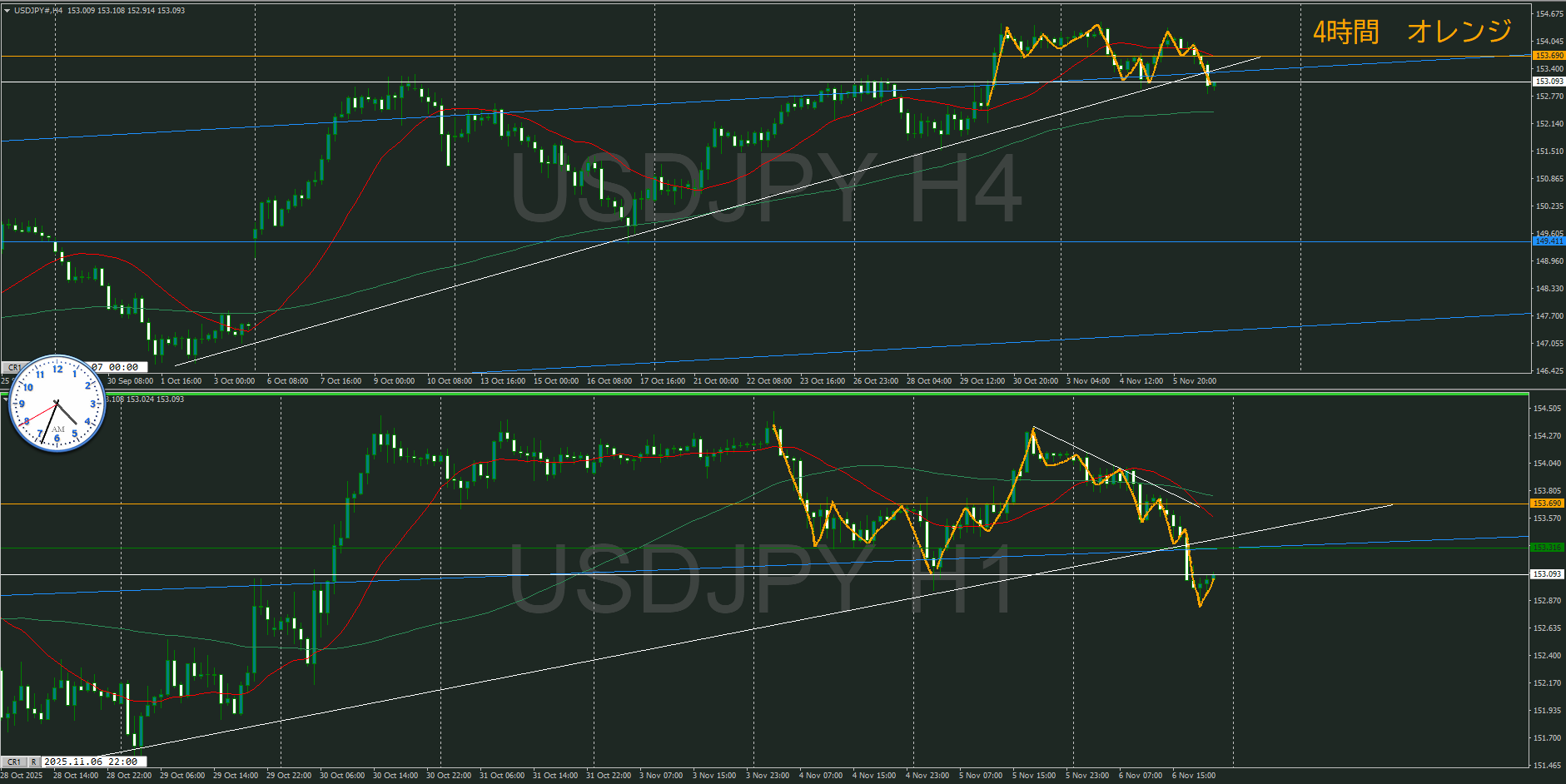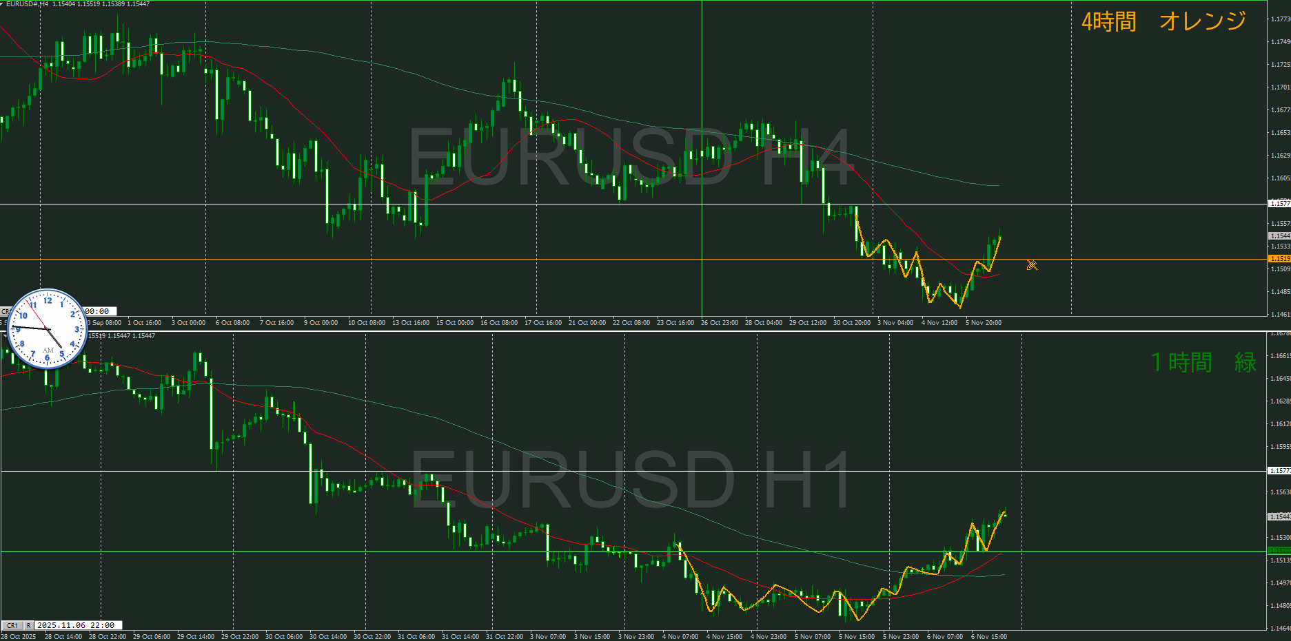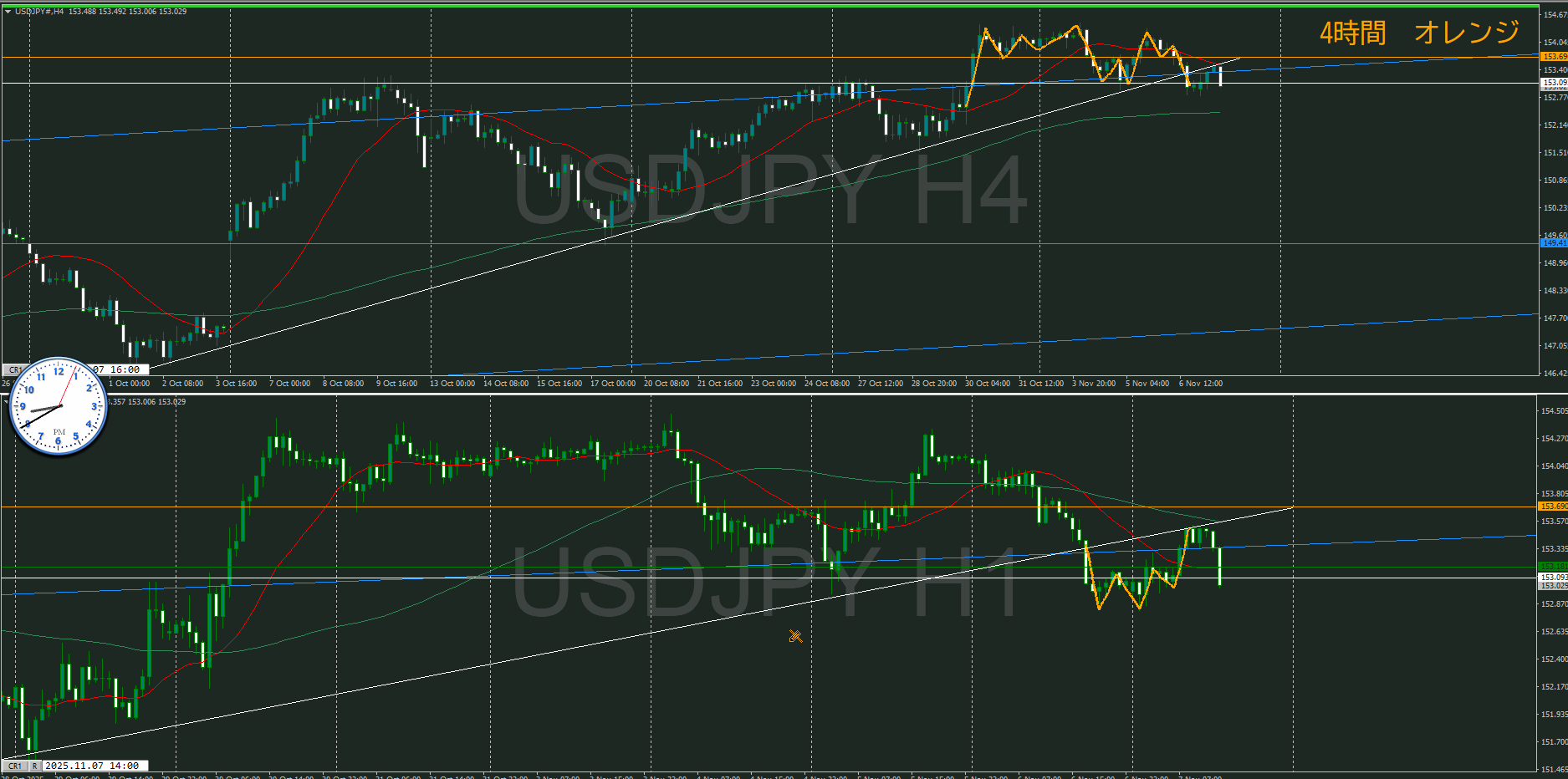 ・4時間 方向 上 (水平線 オレンジ)