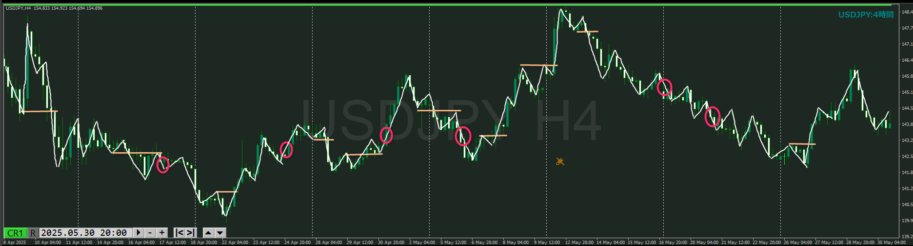 ココから下がれば、トレンド転換シグナルの発生ポイント候補