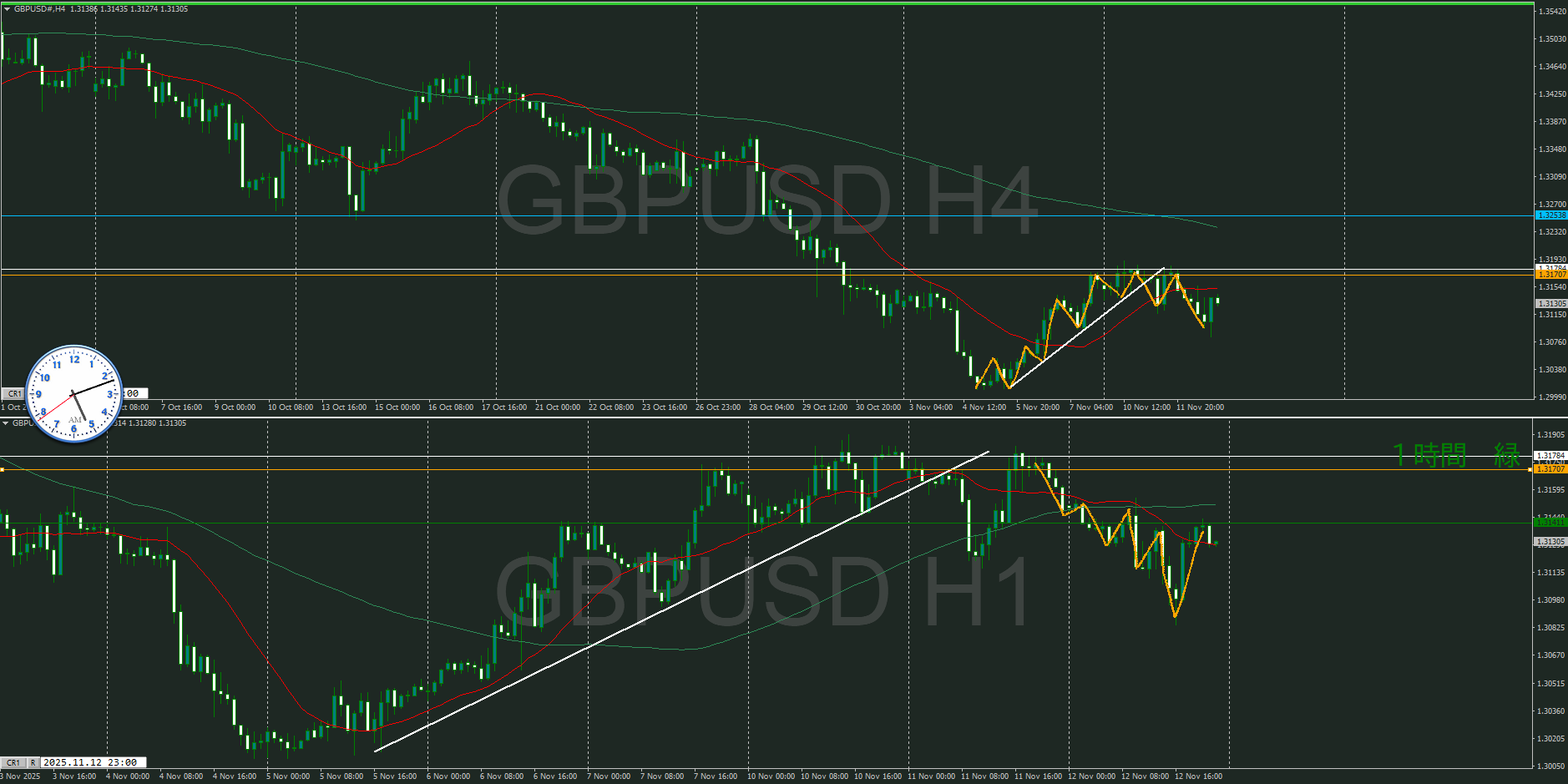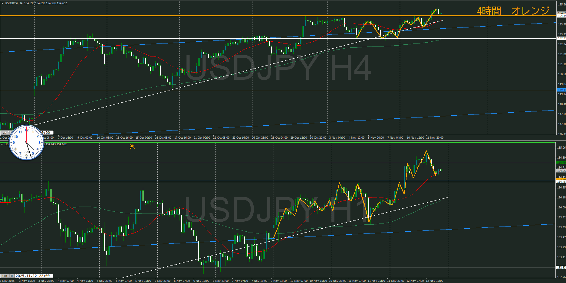 ・4時間 方向 上 (水平線 オレンジ)