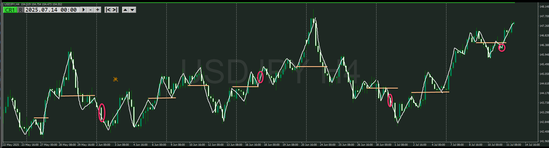 4時間足レベルでは日足のレジスタンスラインを明確に超えているが、日足MAに売り抑えられているのが視える