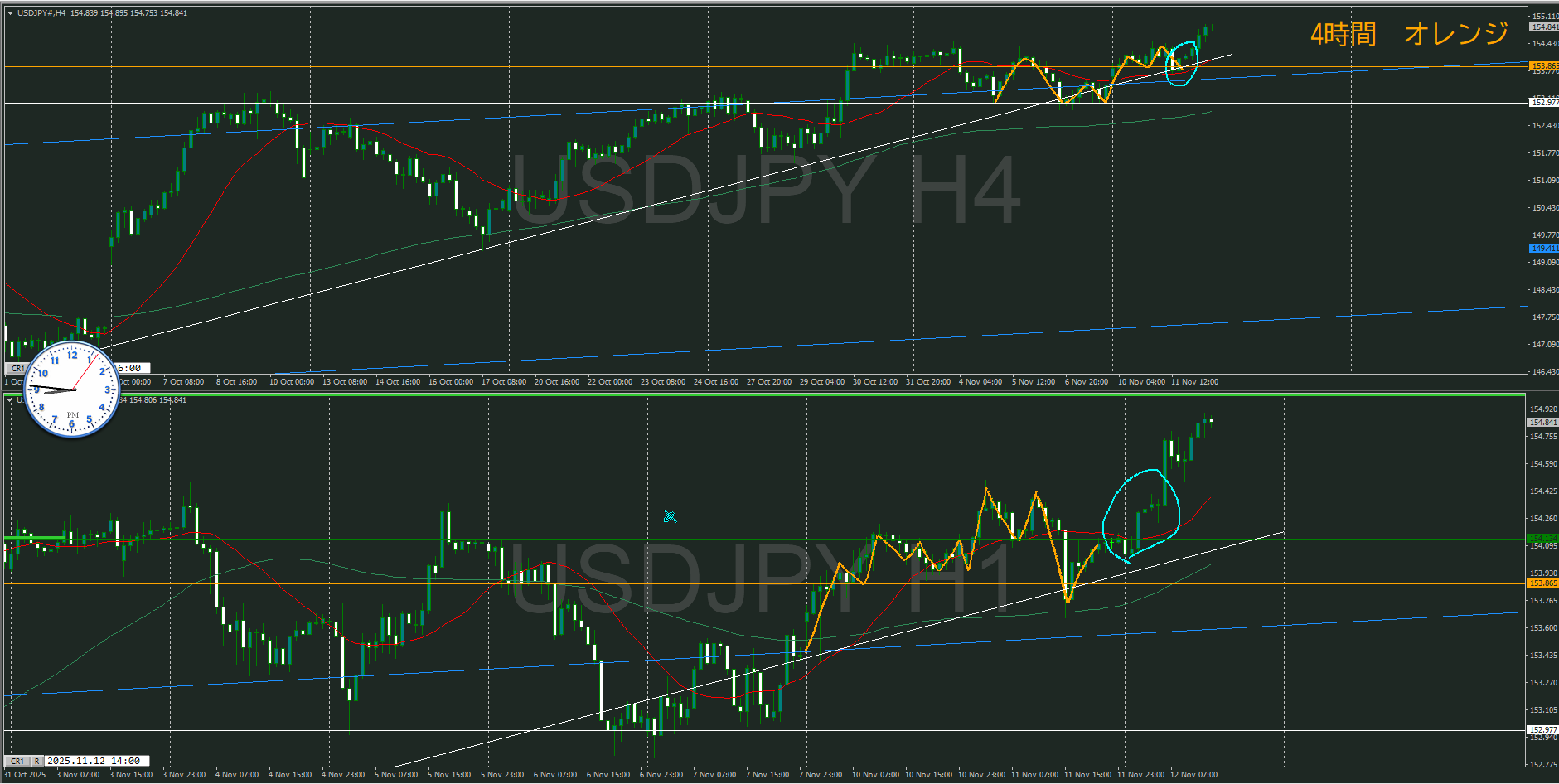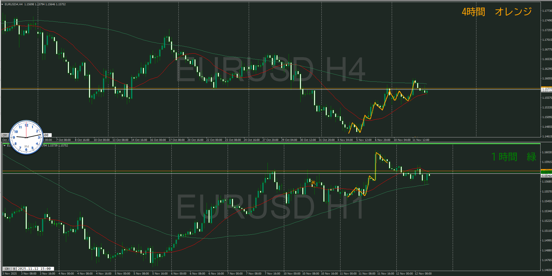 ・4時間 方向 上 (水平線 オレンジ)