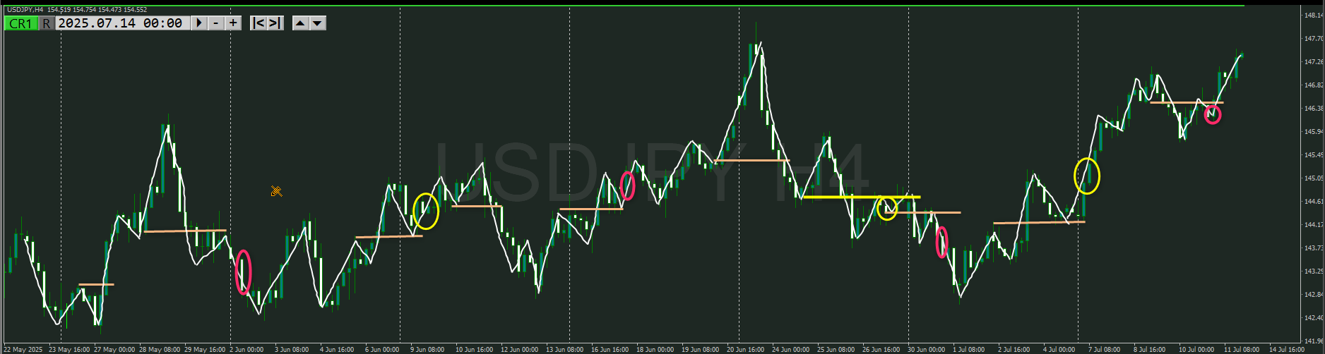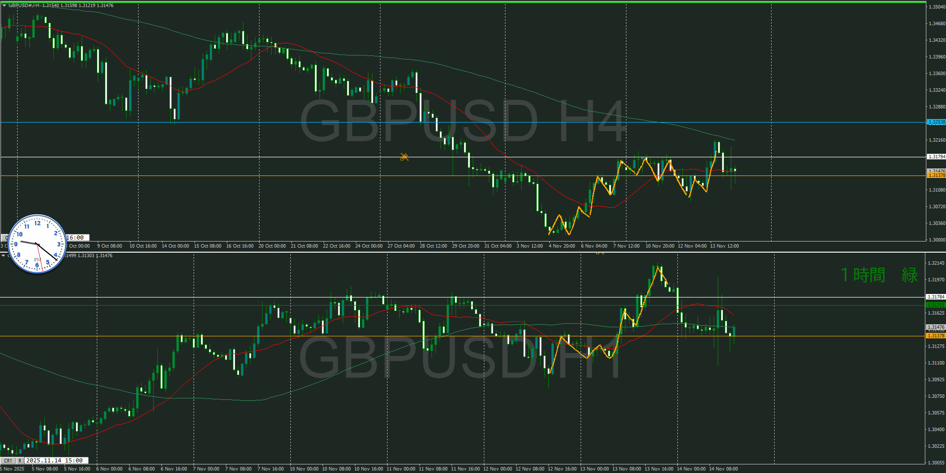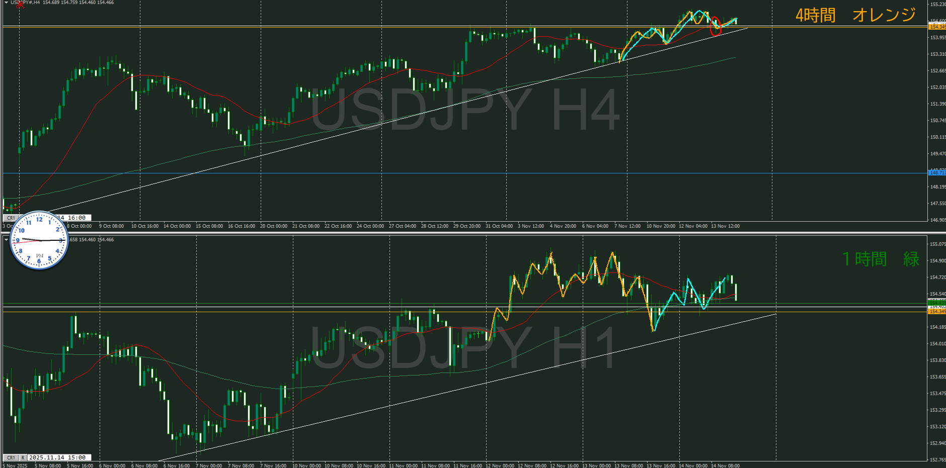 4時間足レベルでは日足のレジスタンスラインを明確に超えているが、日足MAに売り抑えられているのが視える