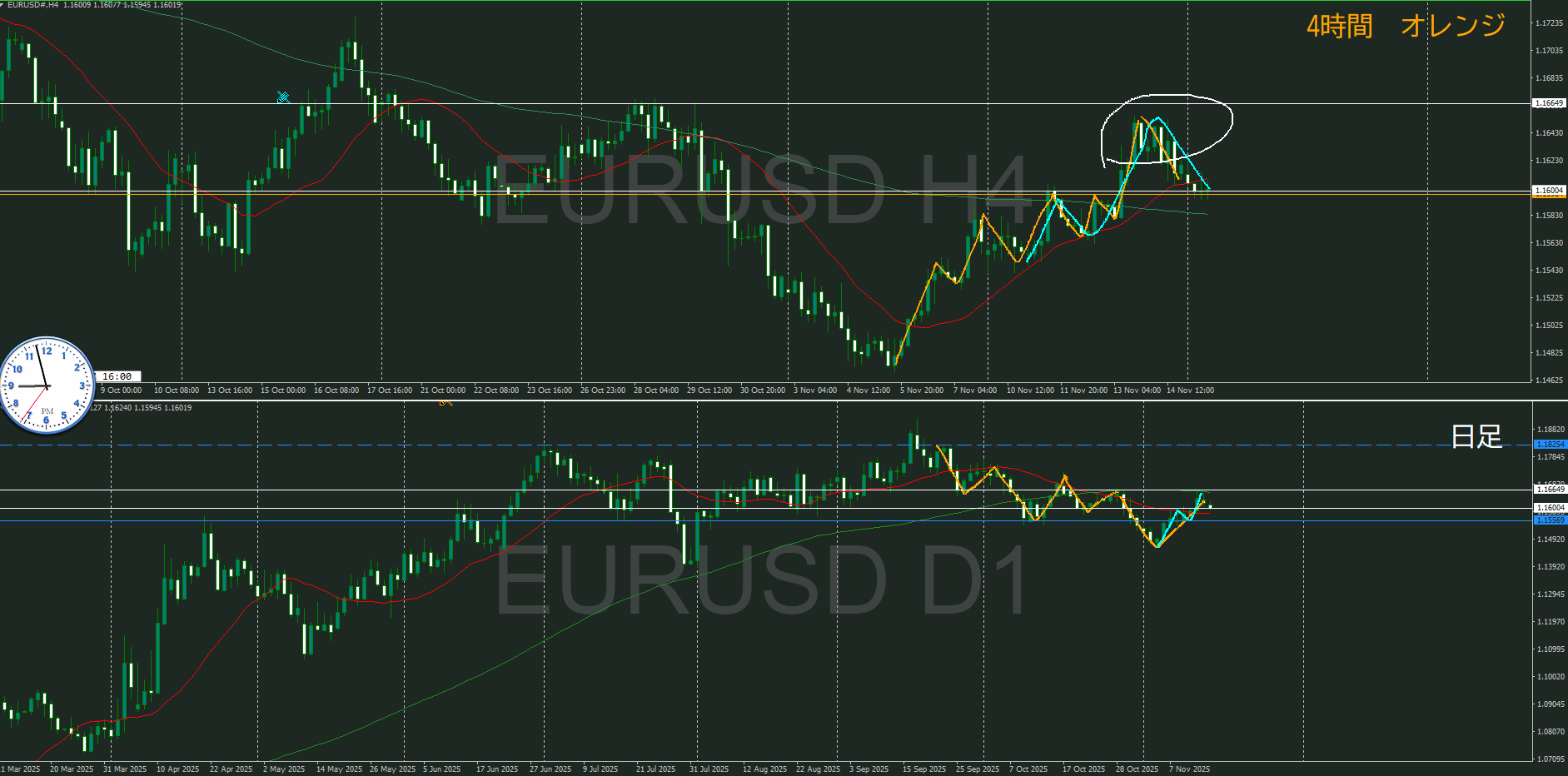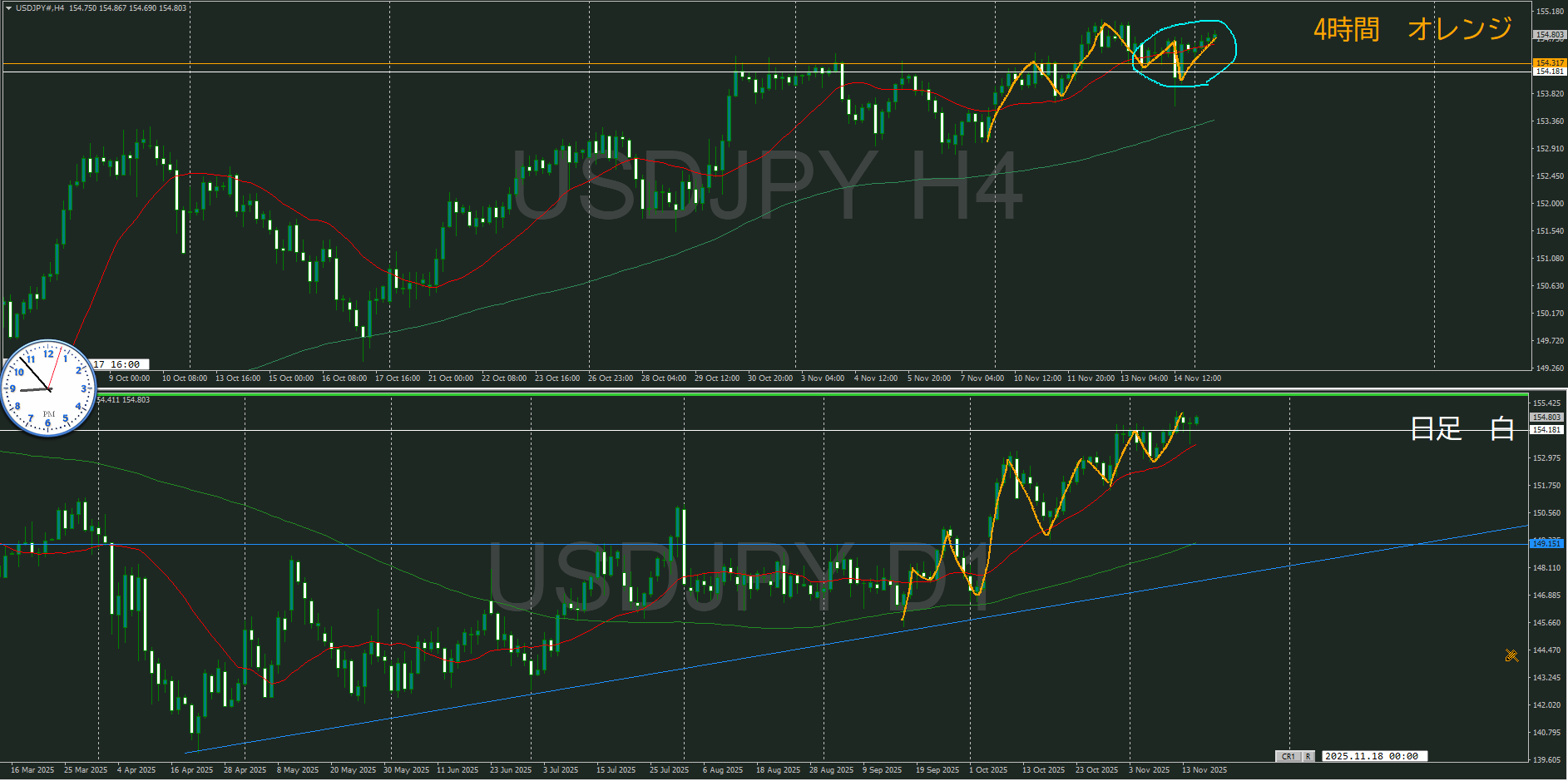 日足 4時間足チャート